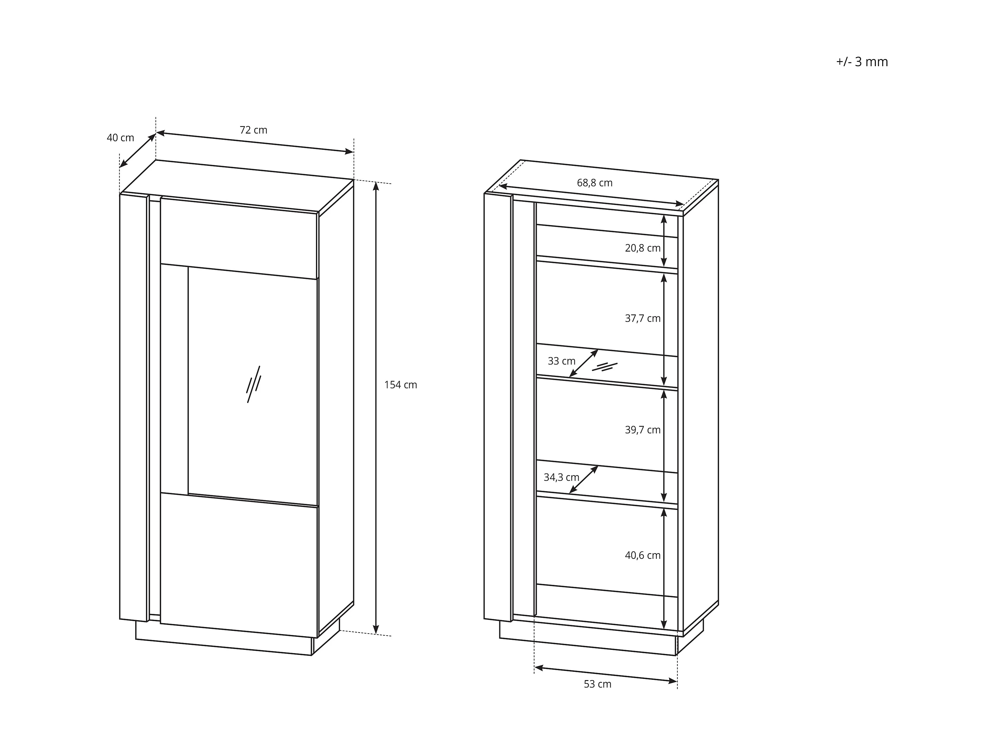 Vetrina 72x154cm con LED bianco lucido VLK2