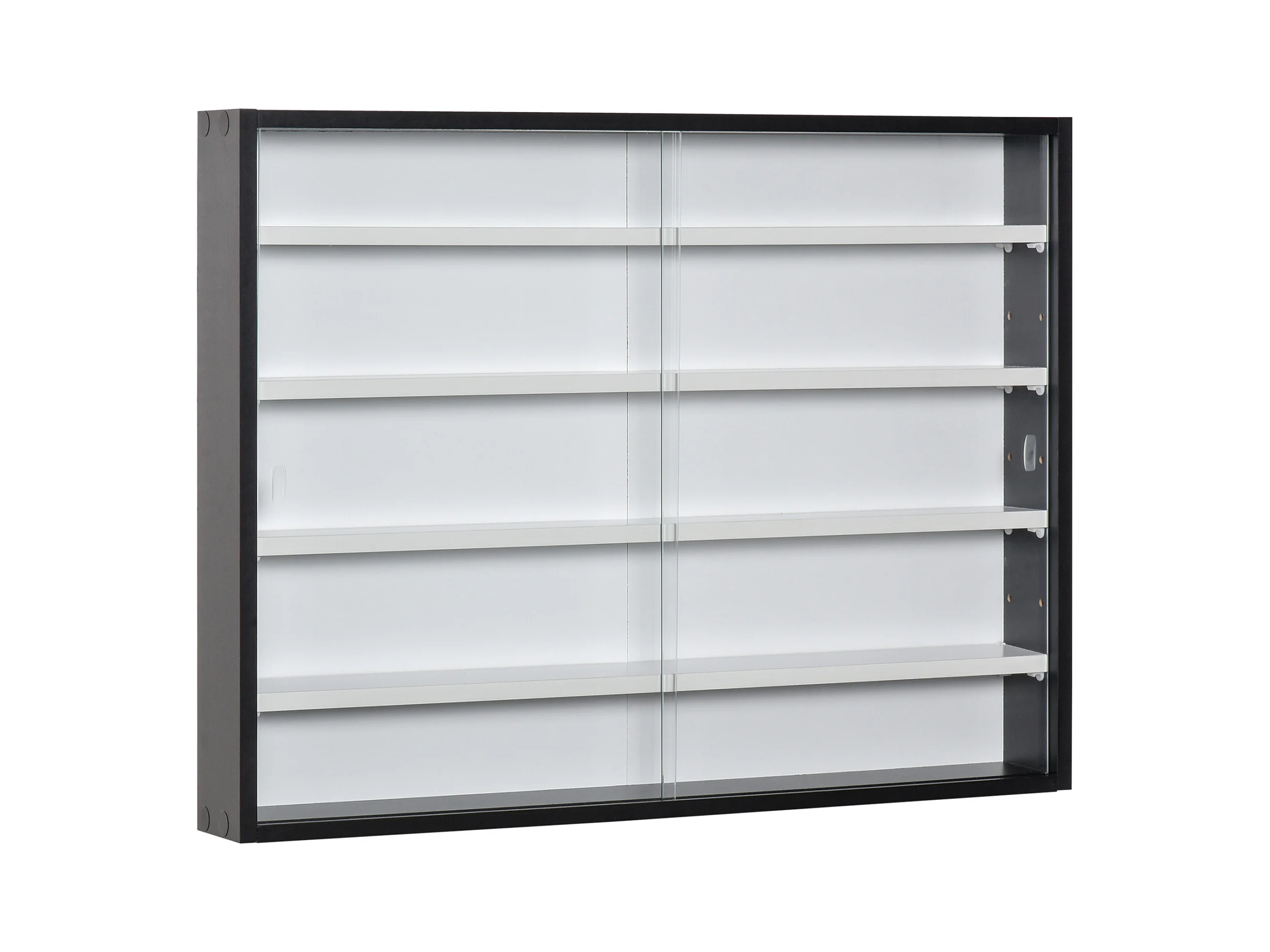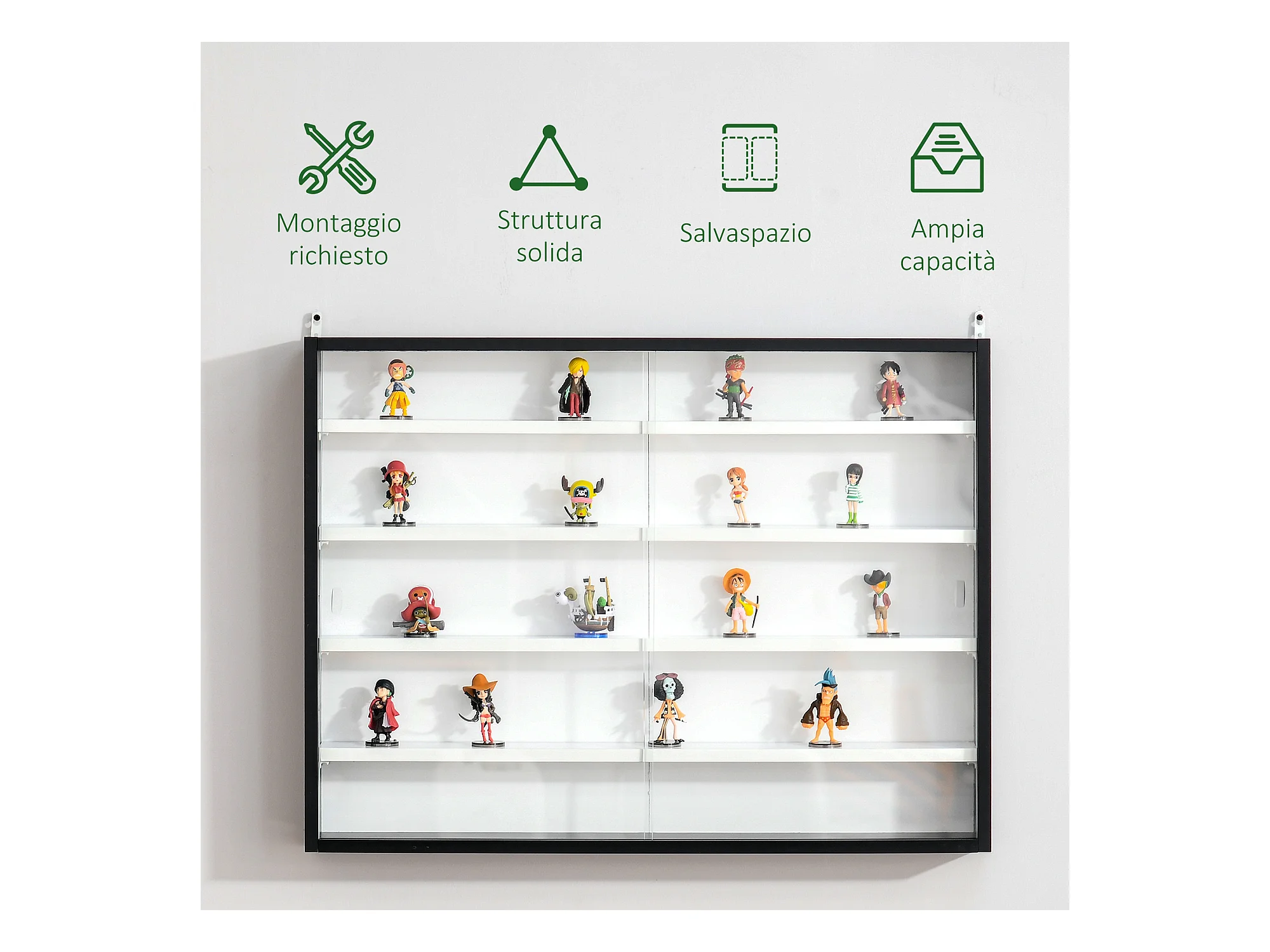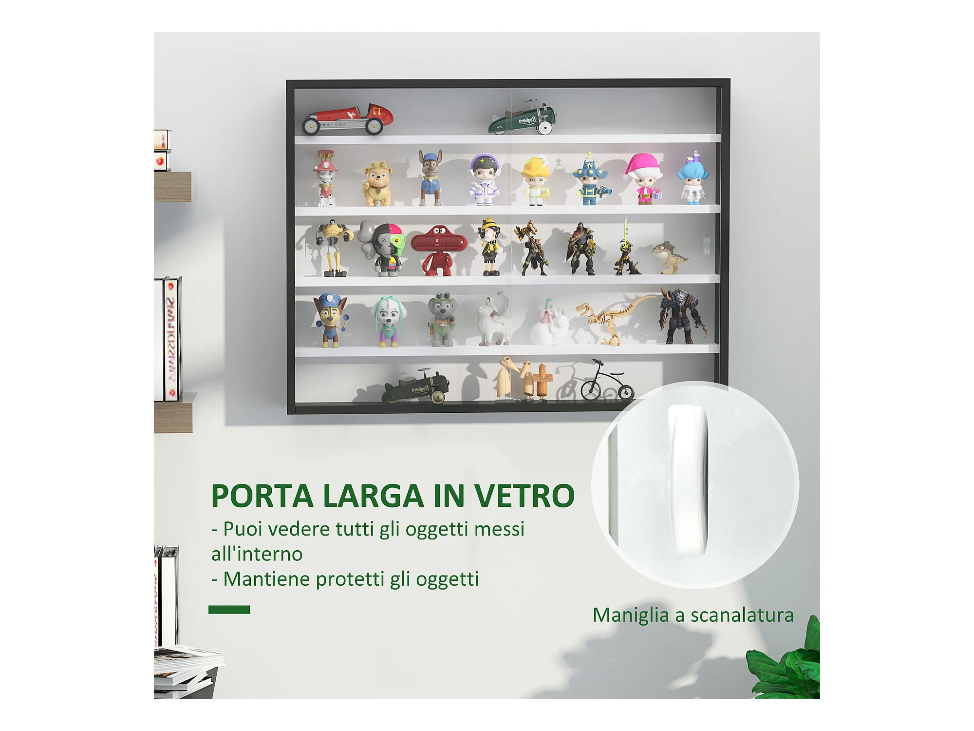 Vetrina a 5 livelli con ripiani regolabili in truciolato e vetro nero