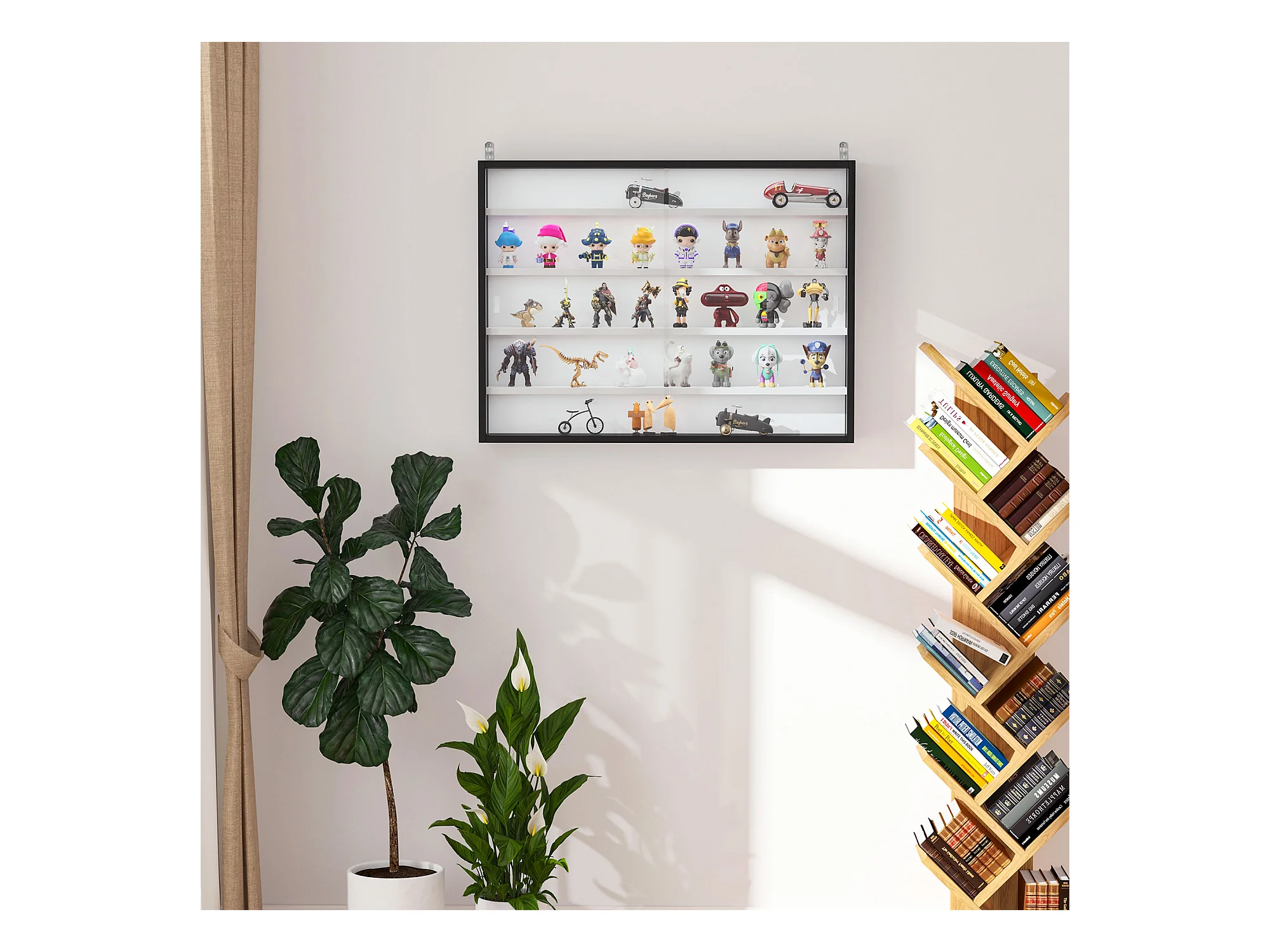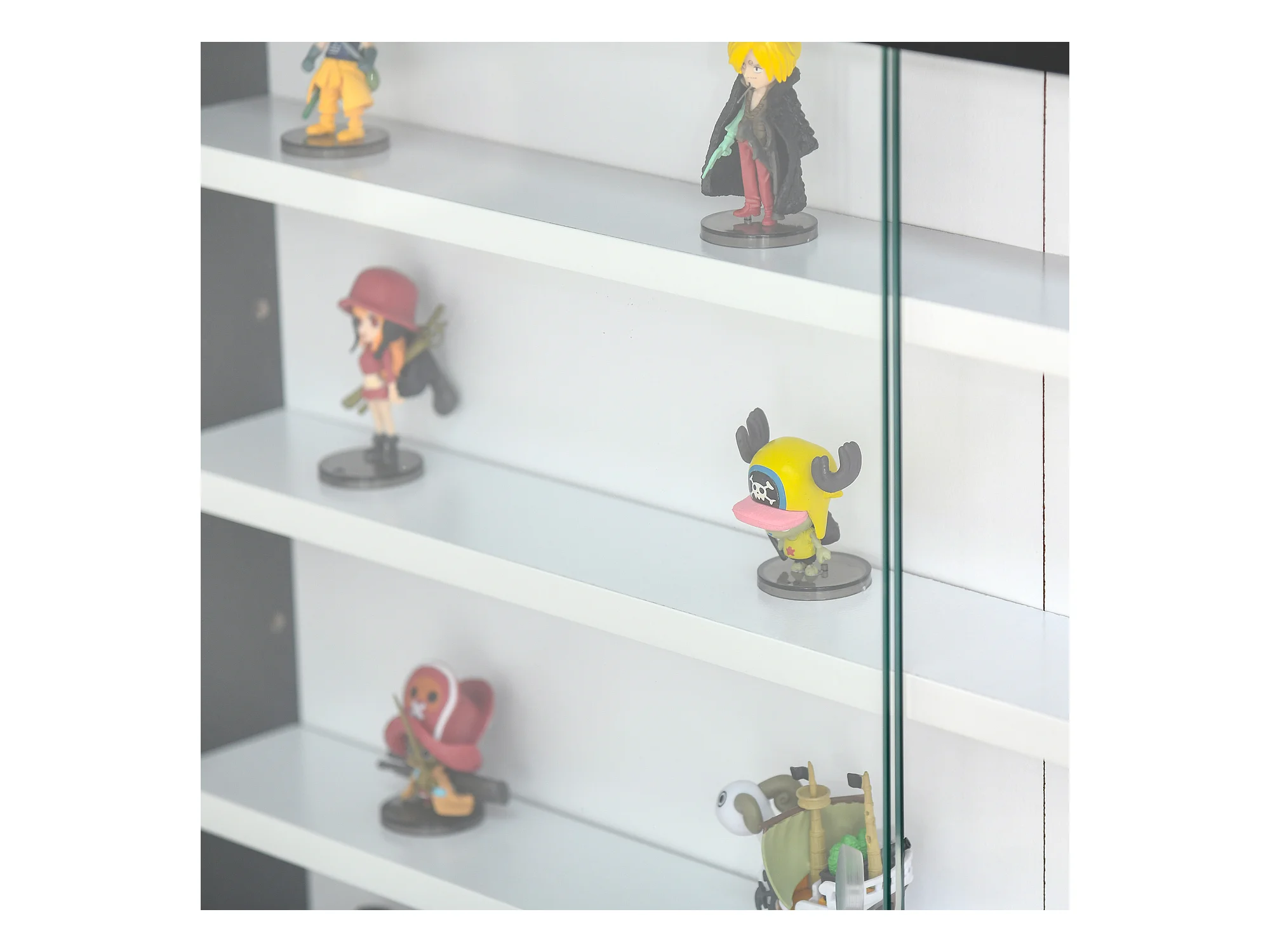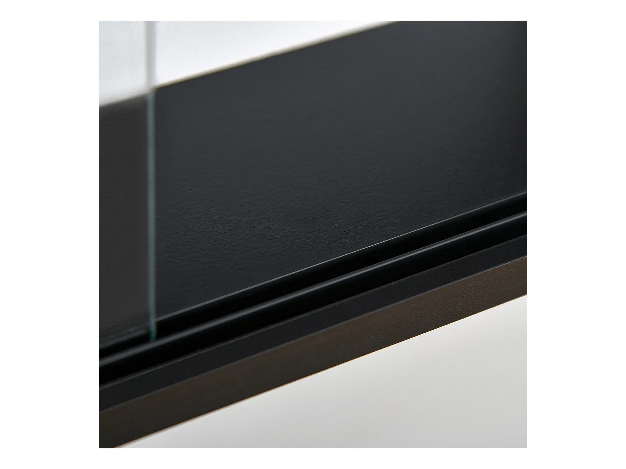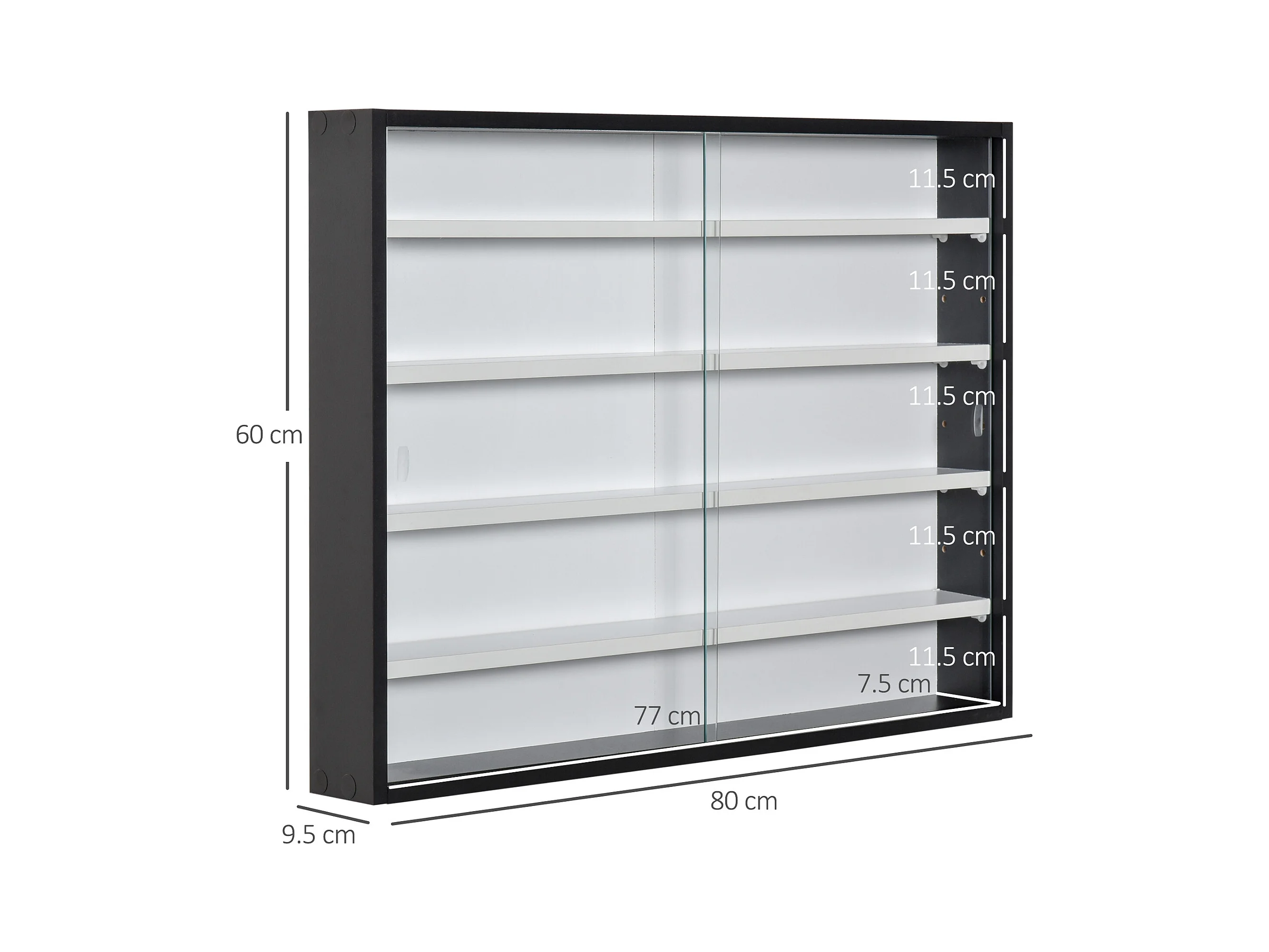 Vetrina a 5 livelli con ripiani regolabili in truciolato e vetro nero