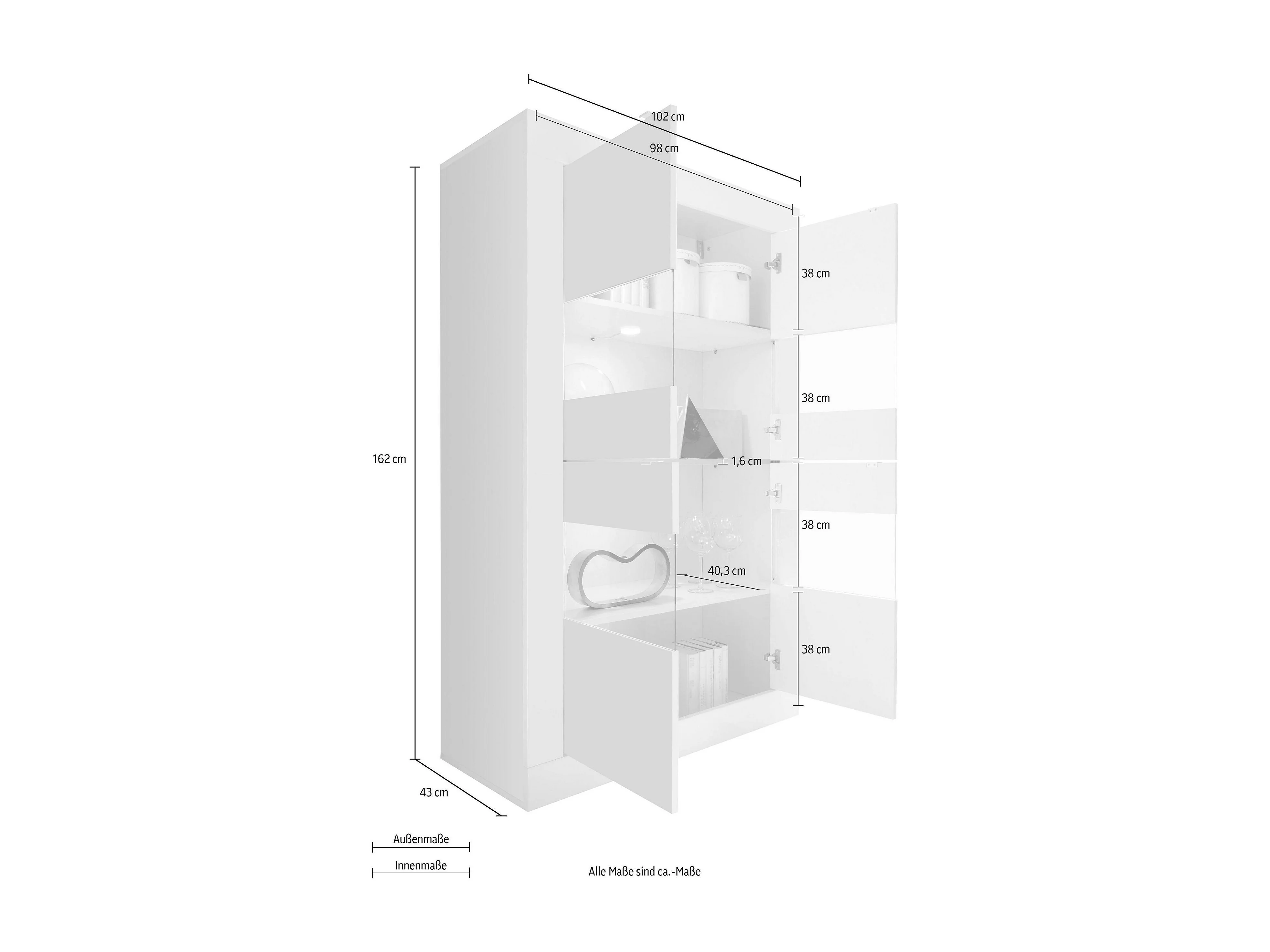 Vetrina a doppia colonna con quattro ante design moderno 102x162 VL1 bianco e pero