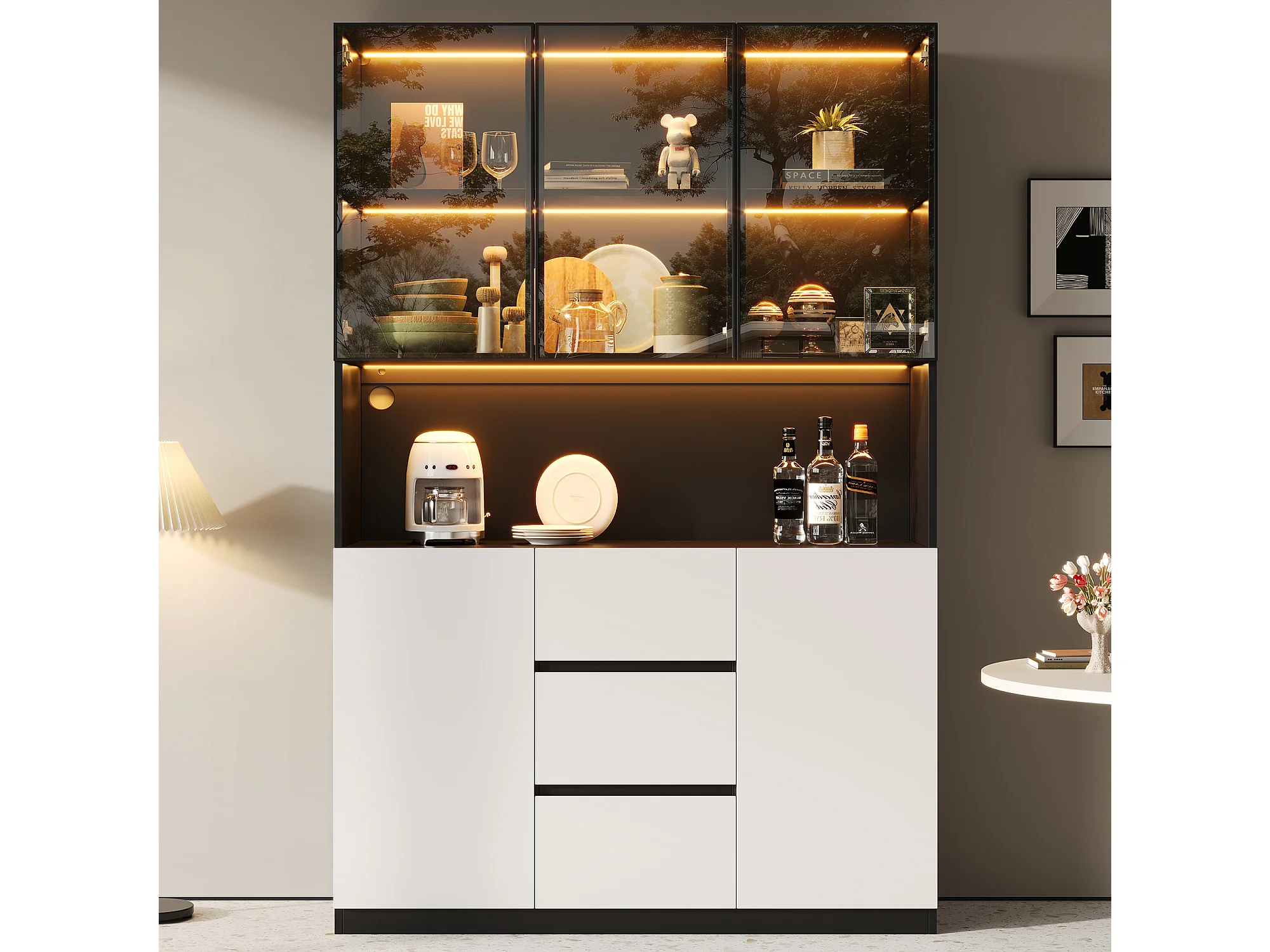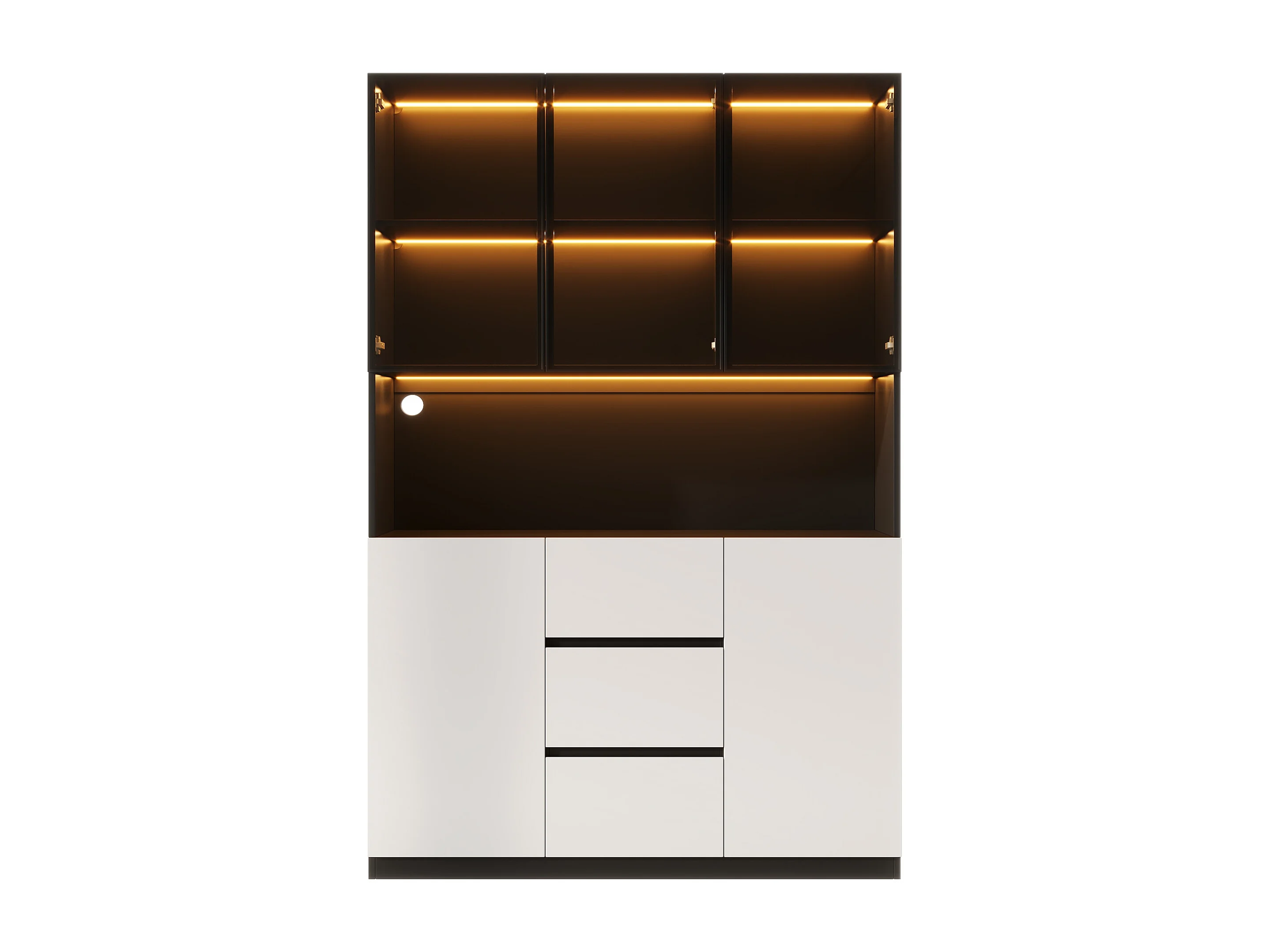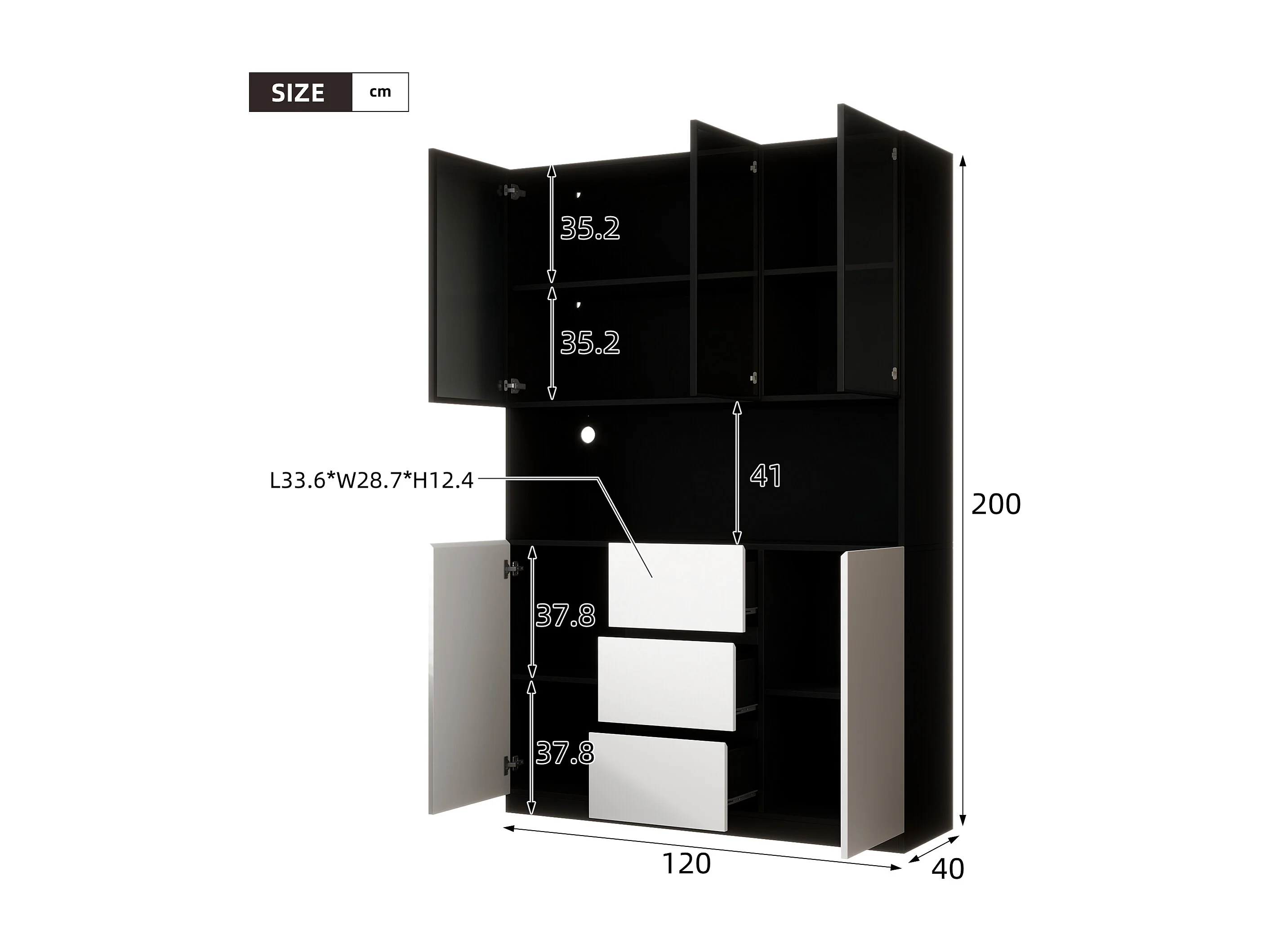 Vetrina a LED 120×40×200 cm con 3 cassetti e 5 ante - Nera