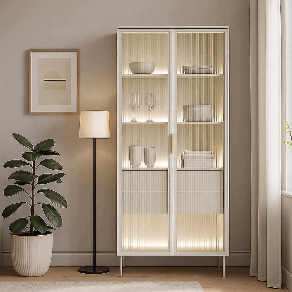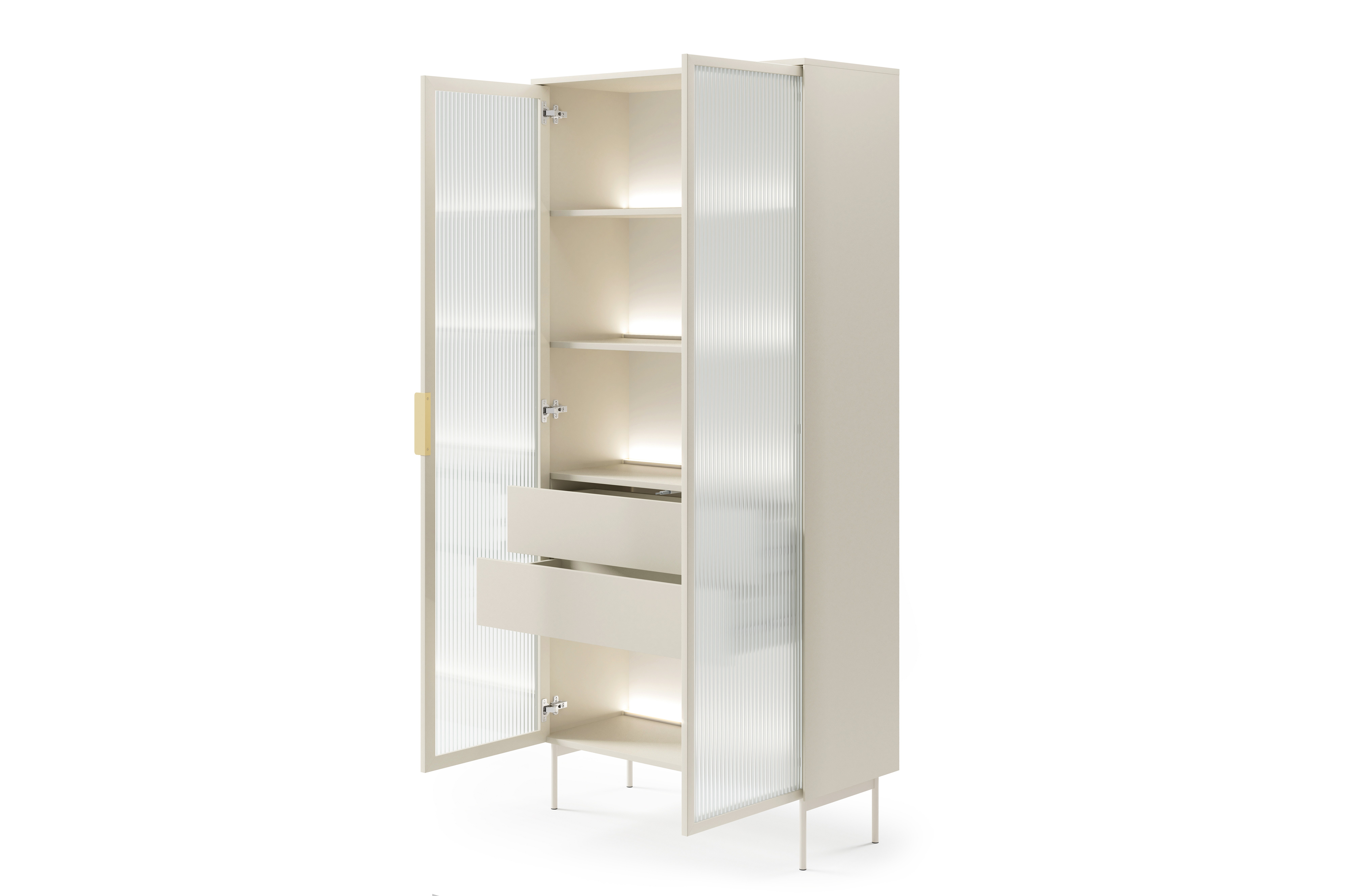 Vetrina alta moderna con cassetti push-pull e luce LED beige cashmere VLK13