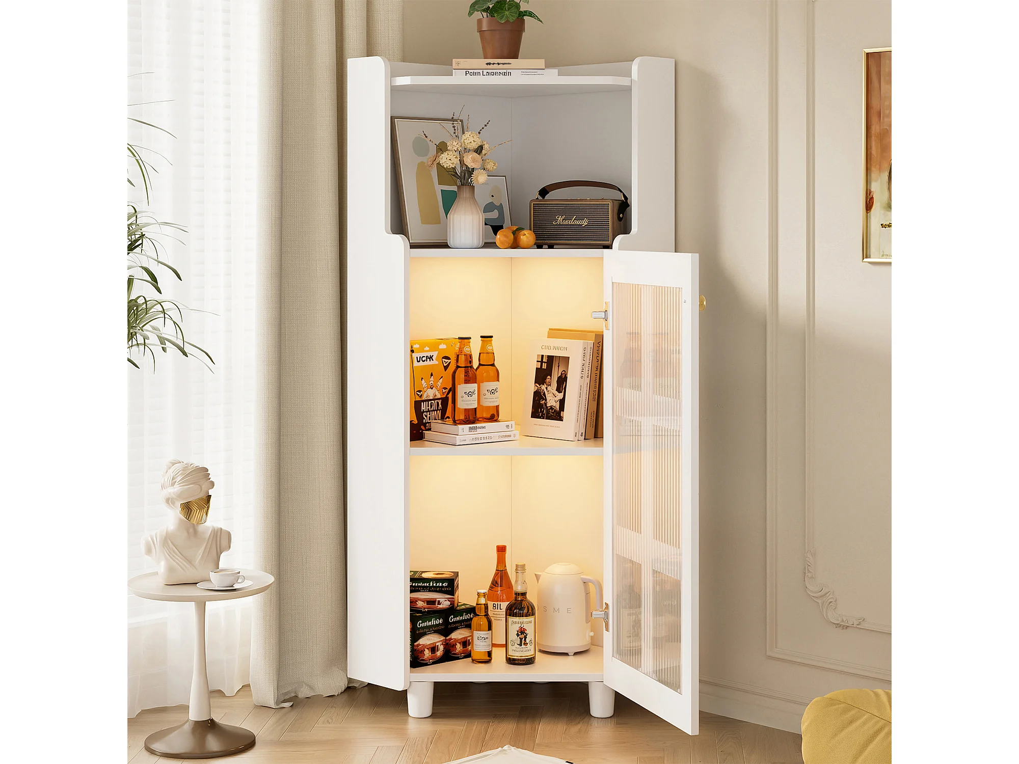 Vetrina angolare bianca - Con illuminazione a LED e 2 ante in vetro