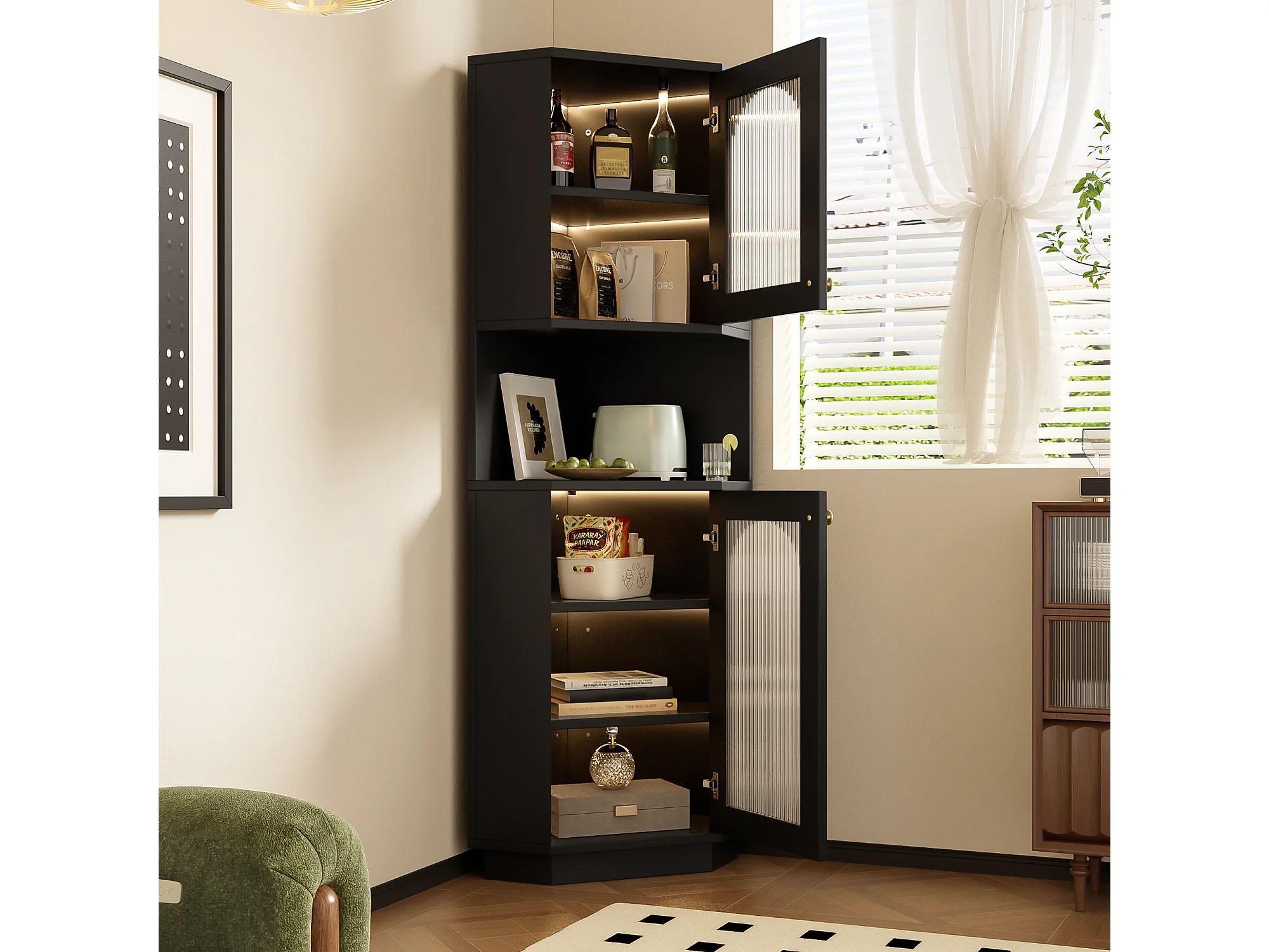 Vetrina angolare con LED e 2 ante - Nero 45 x 45 x 166,5 cm
