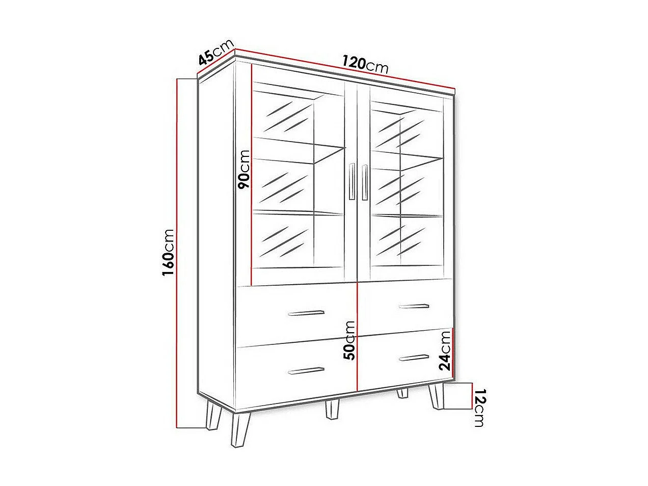 Scaffale Larfloi 110, Con cassetti|Con porte|Chiuso, Vetro temperato|Truciolare laminato