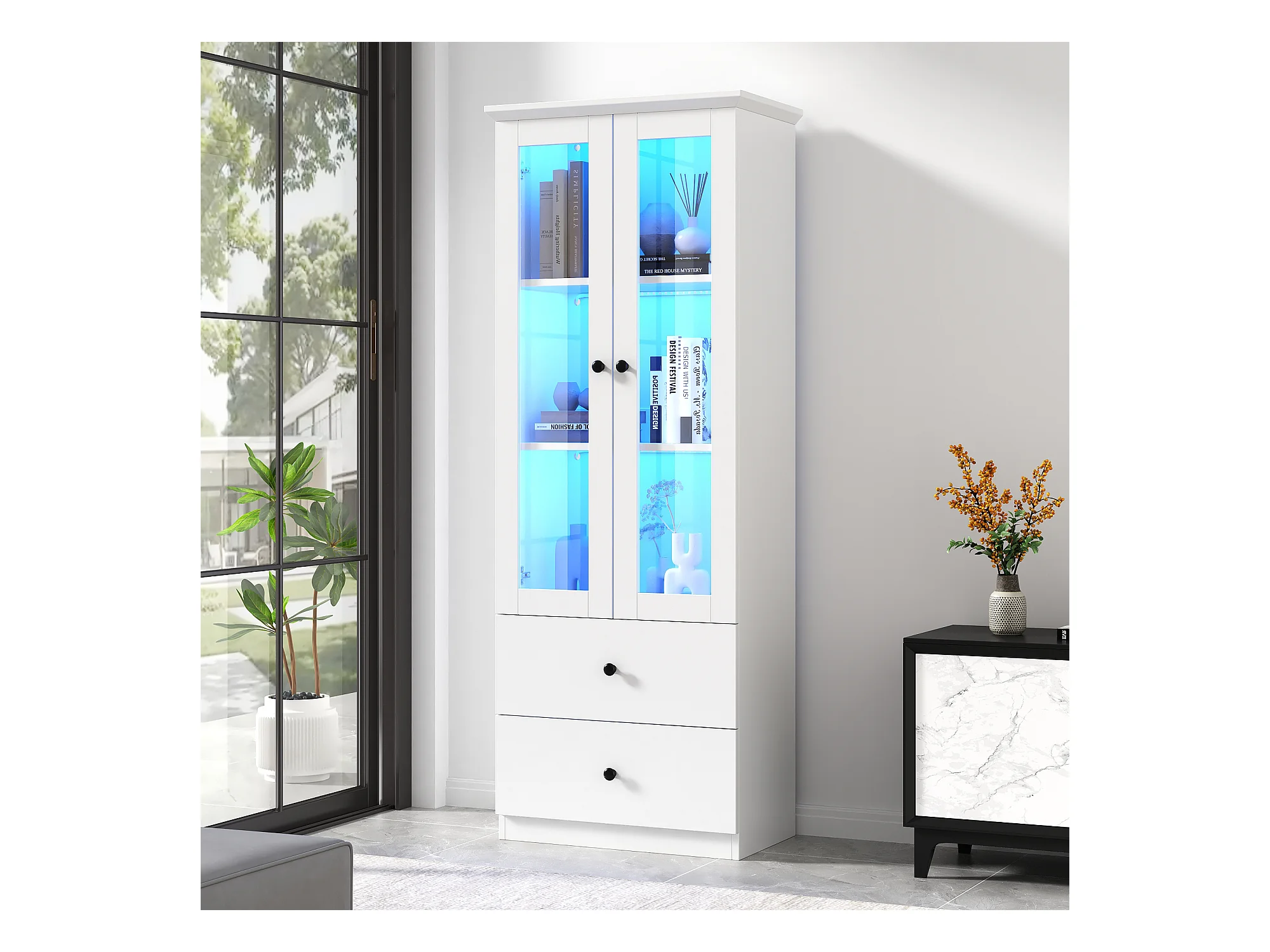 Materiali di alta qualità: combinazione di MDF e truciolato in un'elegante finitura bianco opaco. Il vetro di sicurezza temperato e le maniglie rotonde nere di alta qualità sottolineano il design moderno.