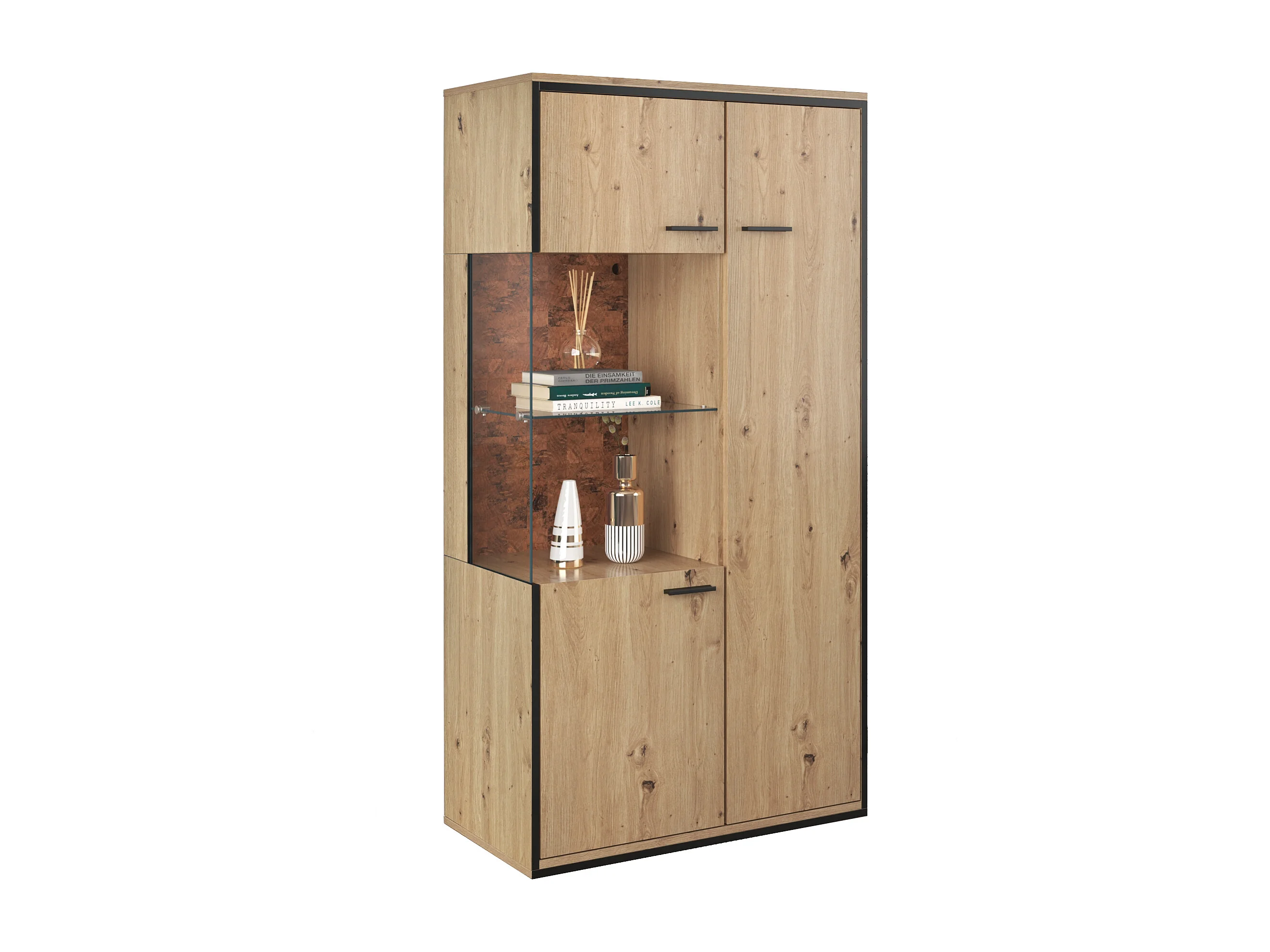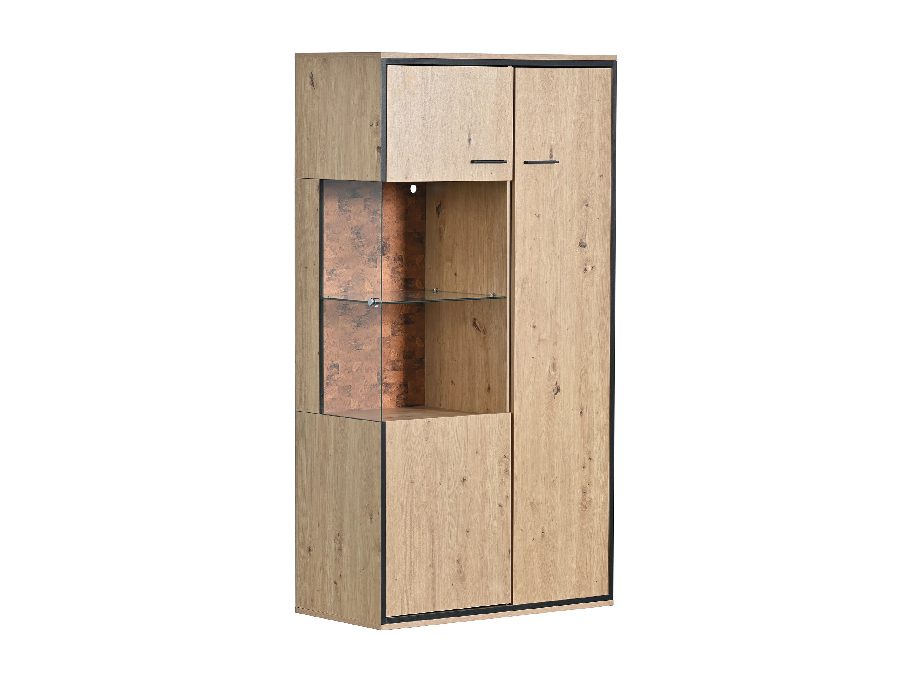 Vetrina con 3 ante e 2 ripiani - LED - truciolare e vetro - altezza 150 cm - colore rovere