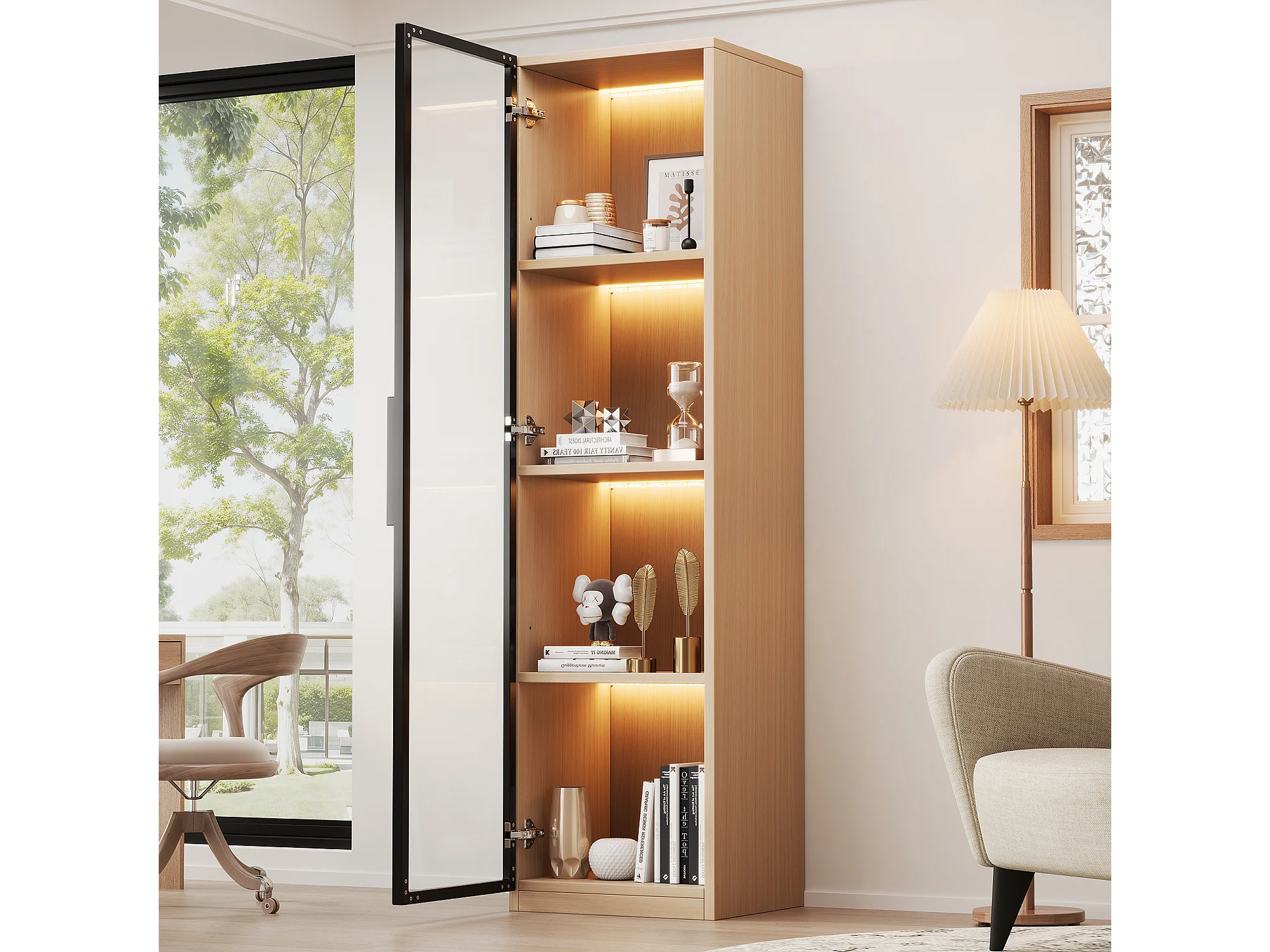 Vetrina con anta in vetro e illuminazione a LED, 40×40×165 cm - MDF effetto rovere