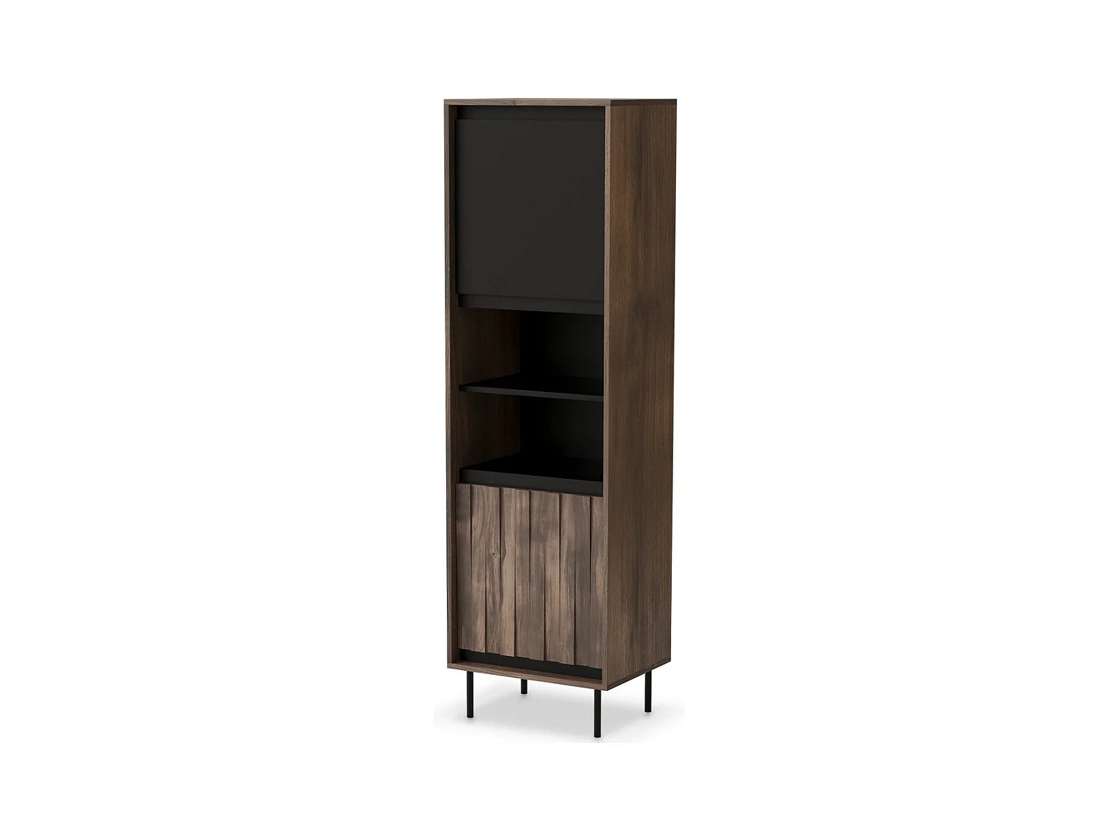 Vetrina nera e legno con doghe Lazare