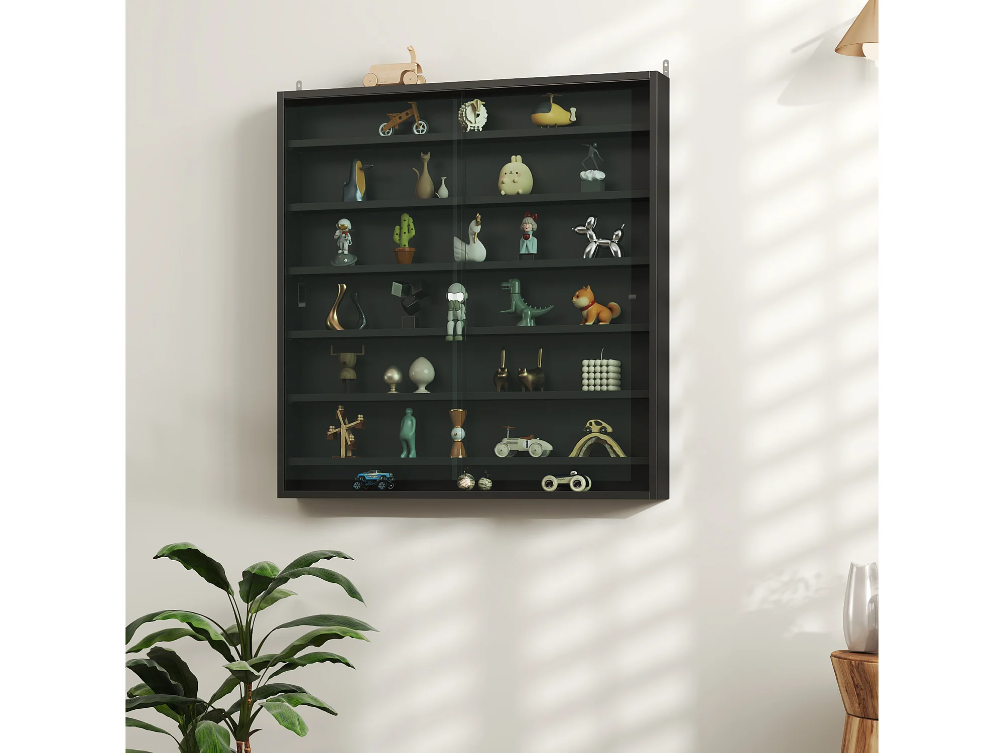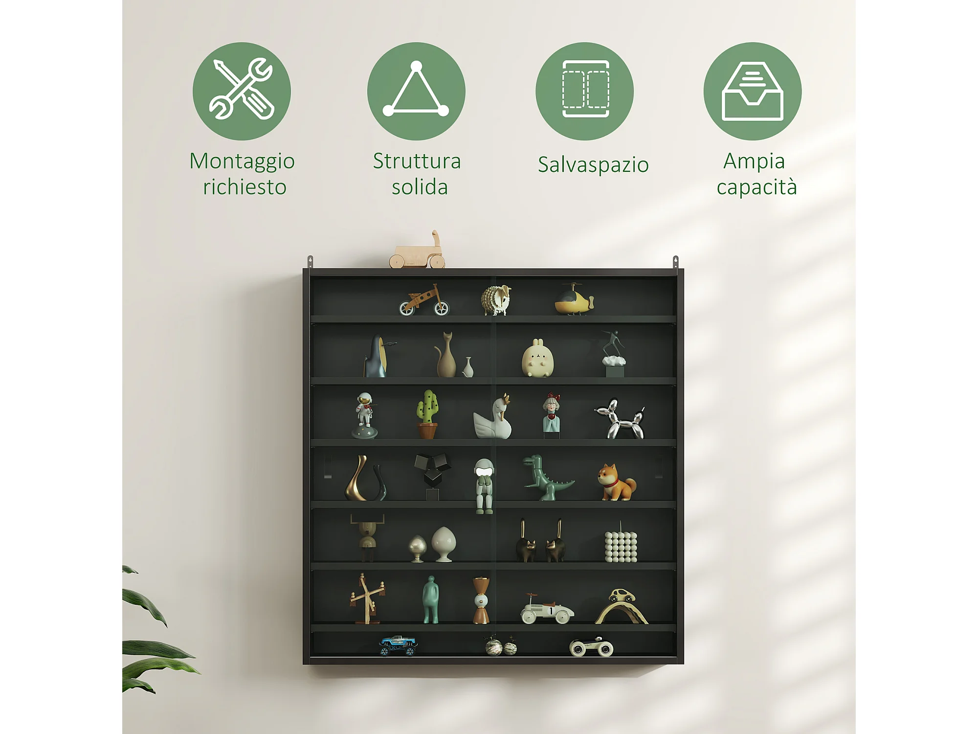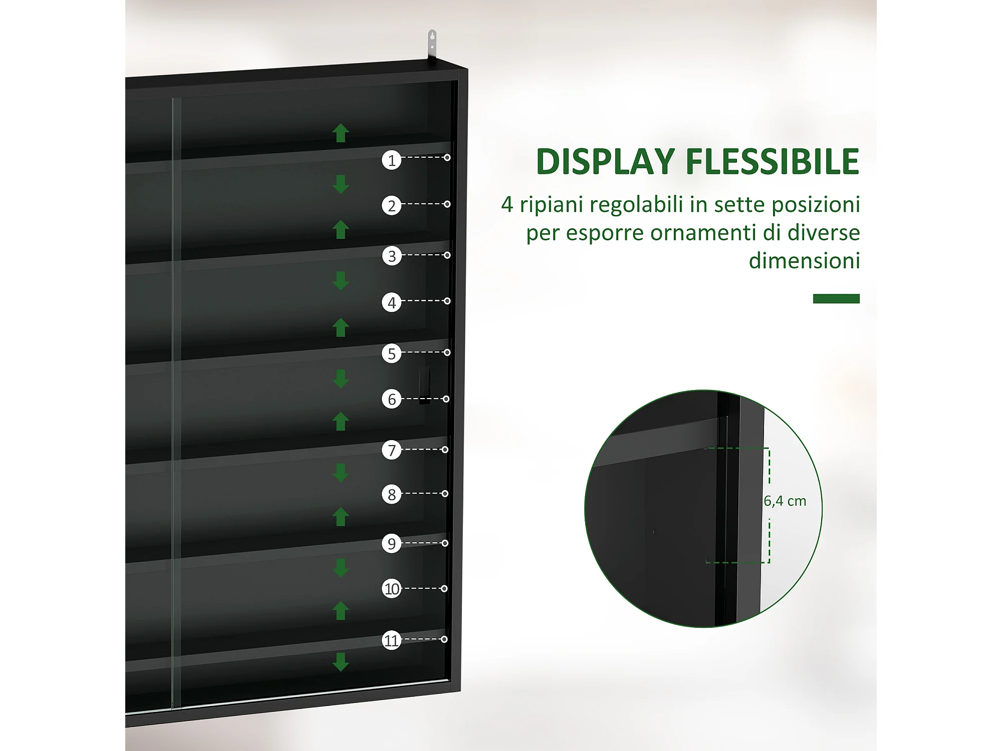 Vetrina espositiva da parete a 6 ripiani regolabili, vetrinetta per collezionismo