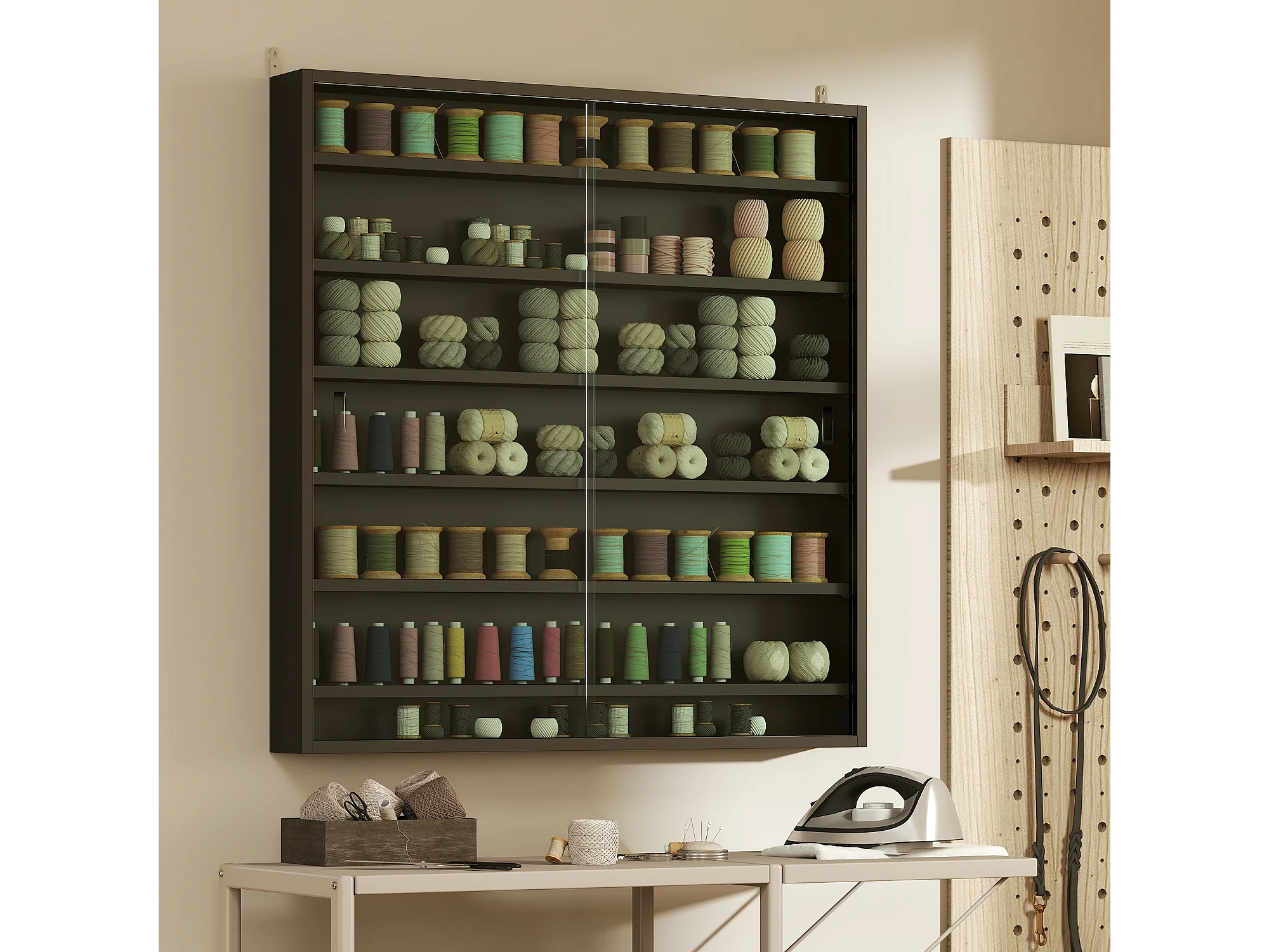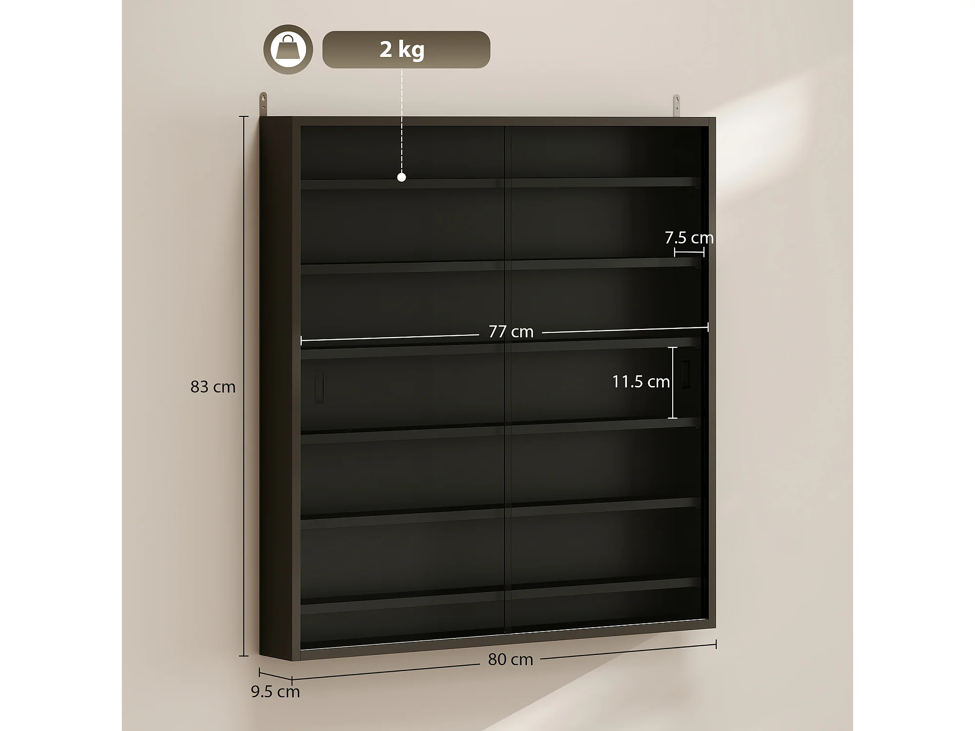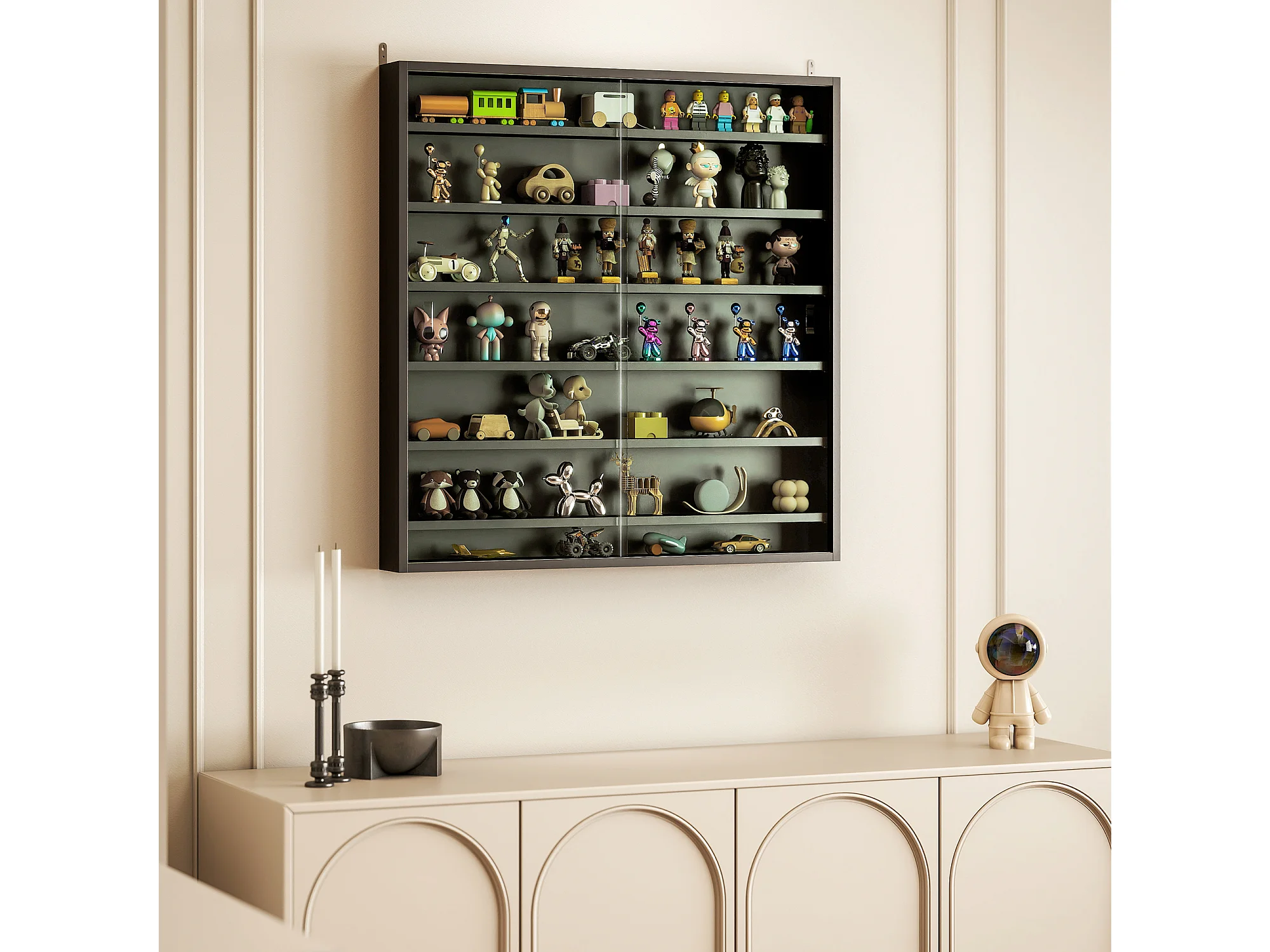 Vetrina espositiva da parete a 6 ripiani regolabili, vetrinetta per collezionismo