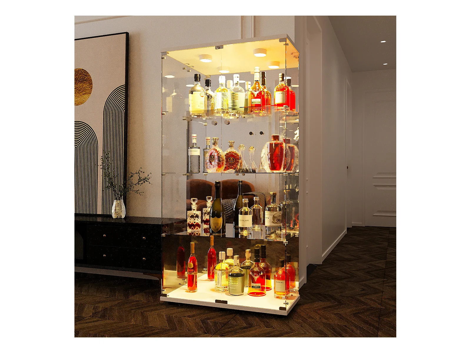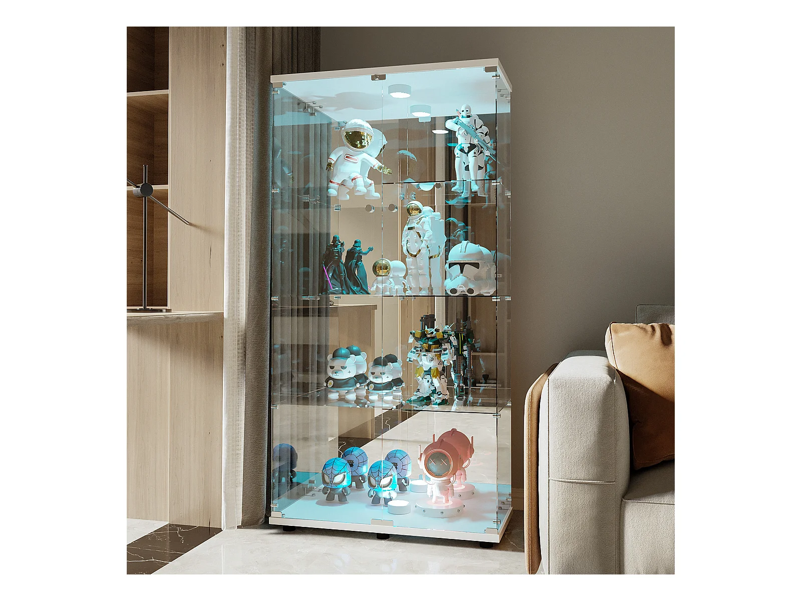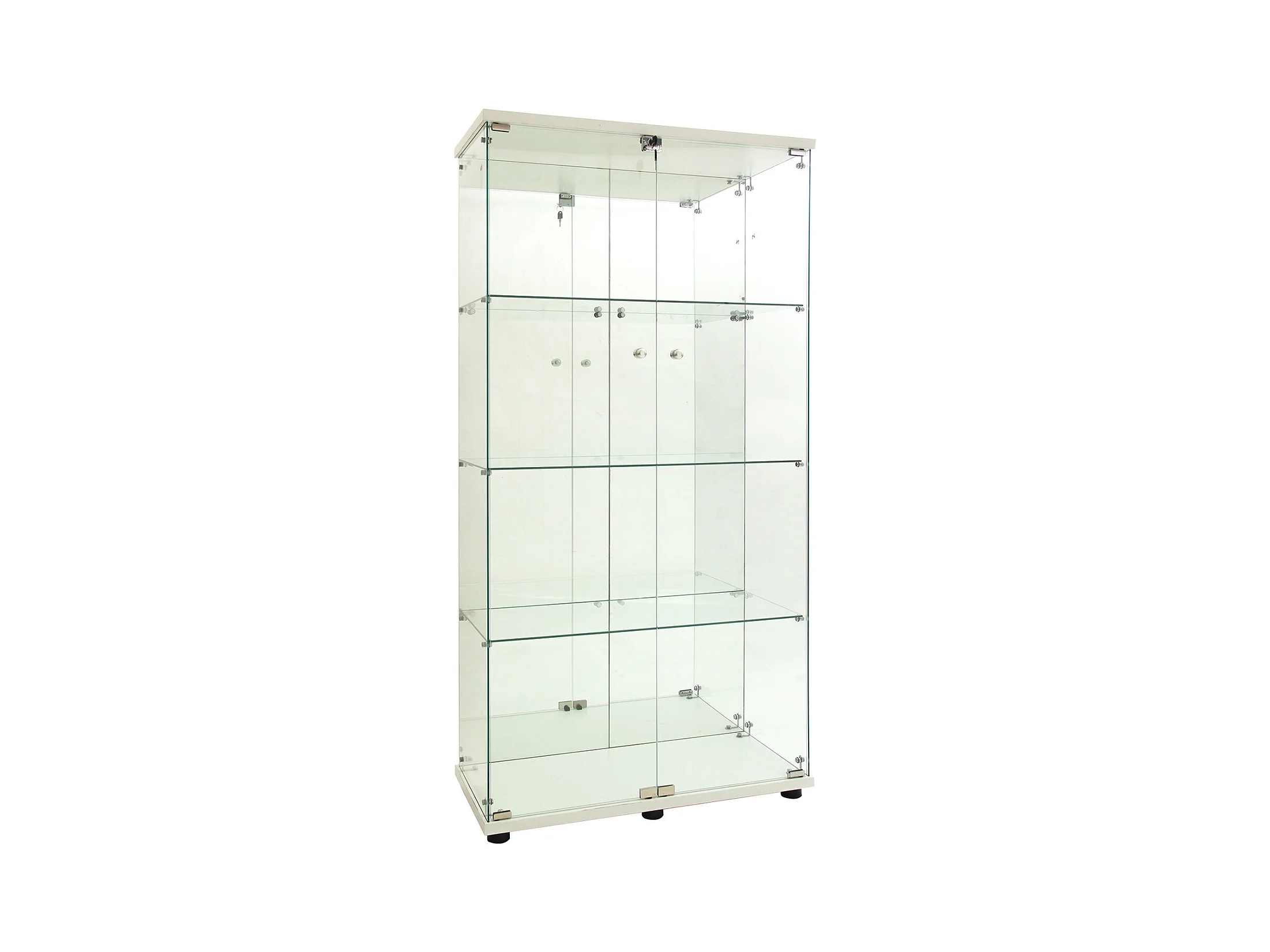 Vetrina espositiva in vetro a LED, 4 ripiani, 80,49x36,49x163,9 cm, ripiano in vetro con 2 ante, vetrina espositiva indipendente, bianco
