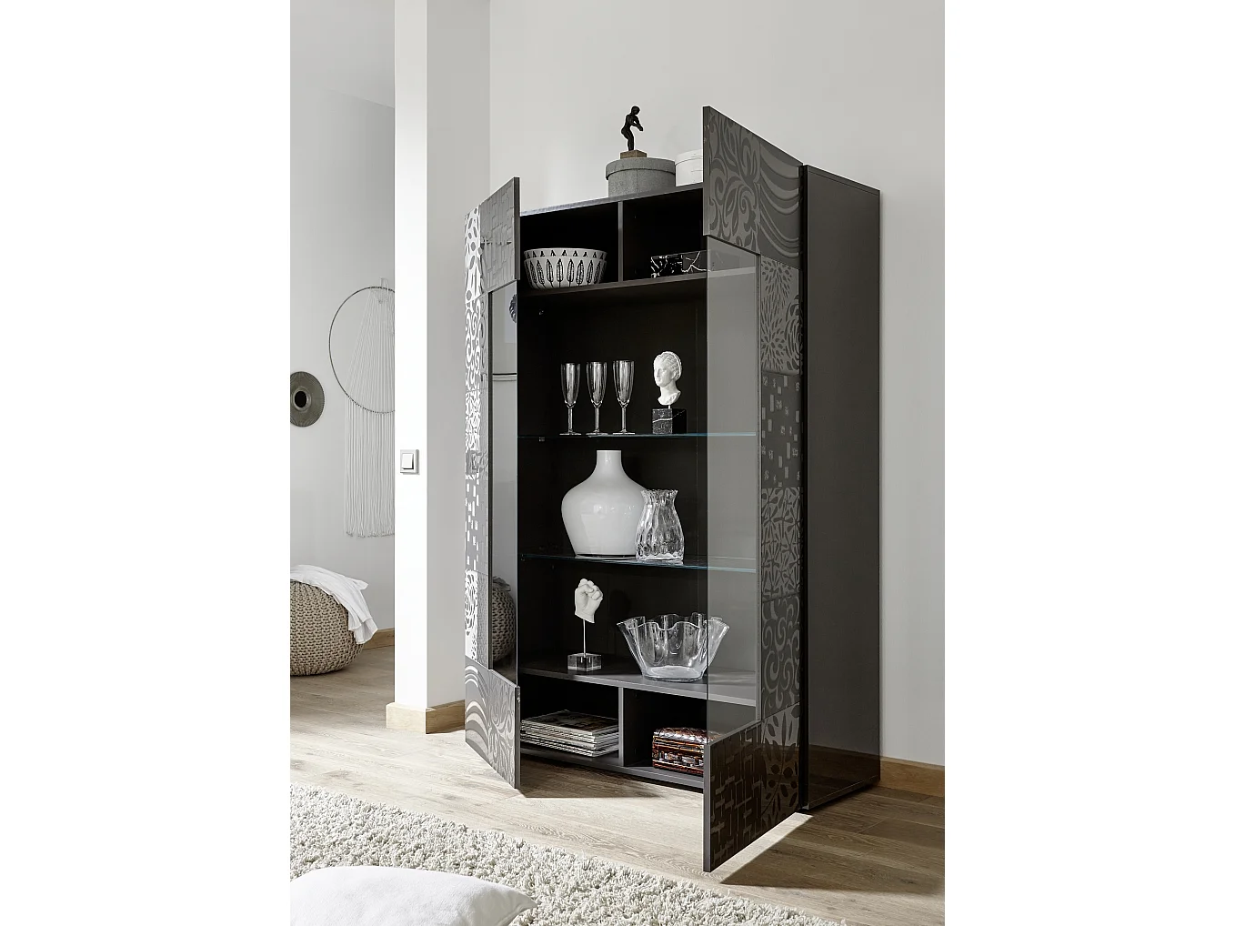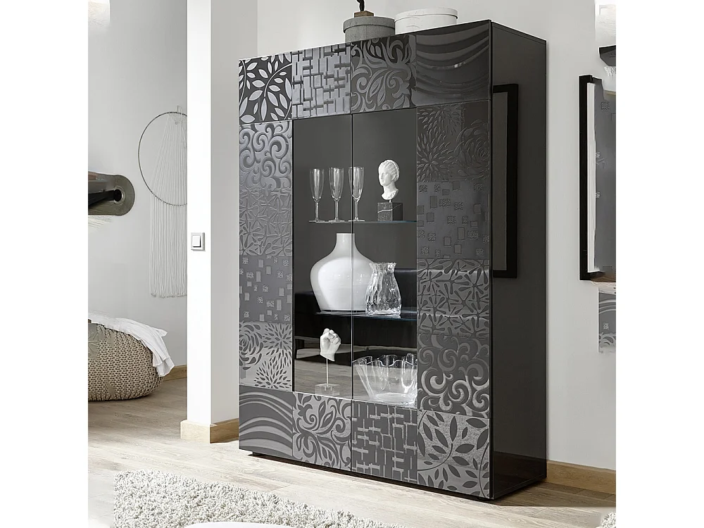 Vetrina grande con due ante design geometrico 121x166 VL3 grigio lucido