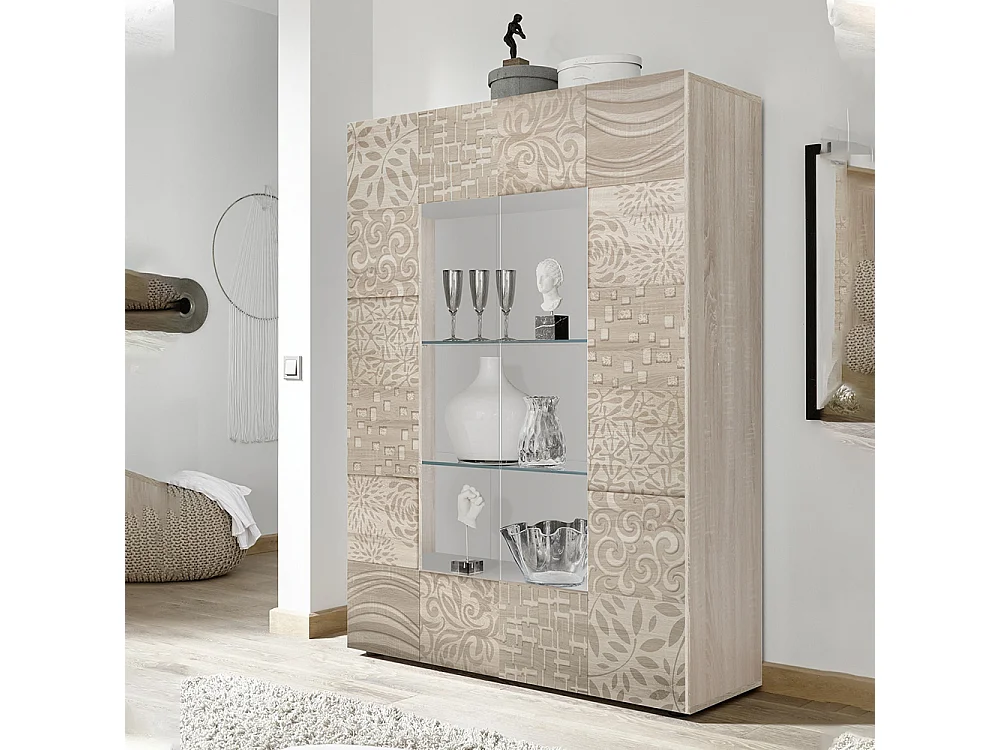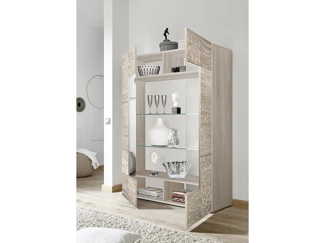 Vetrina grande con due ante design geometrico 121x166 VL3 rovere samoa