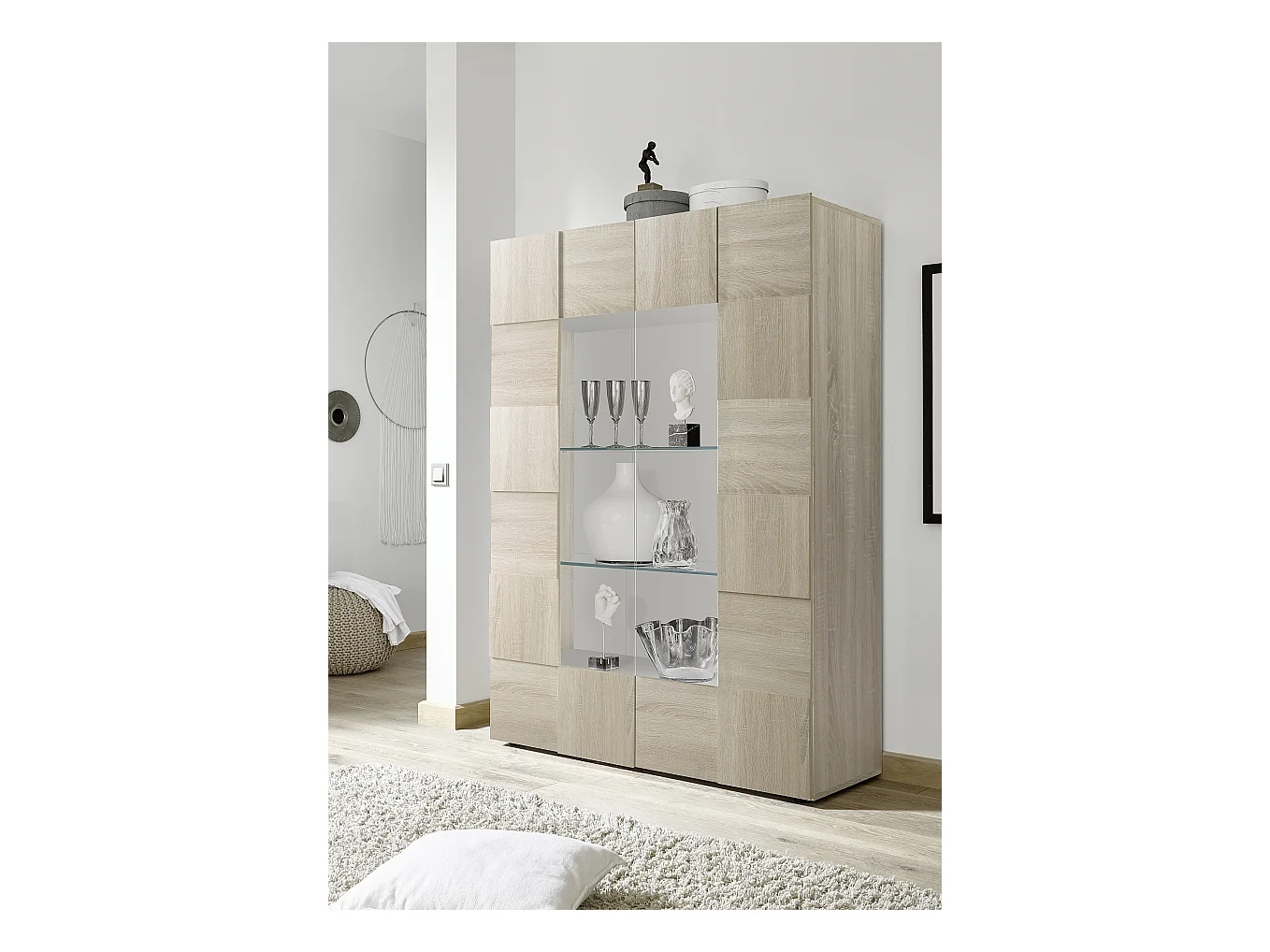 Vetrina grande con due ante design geometrico 121x166 VL3 rovere samoa