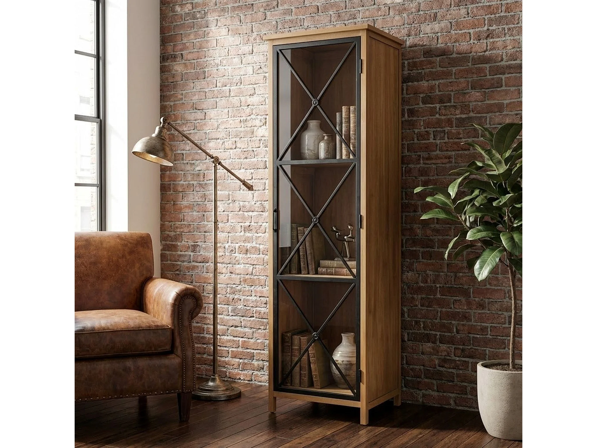 MilaniHome.it - vetrina in legno e metallo per salotto soggiorno cucina di design industrial cm 53x46x183,5 hdi coloreMarrone