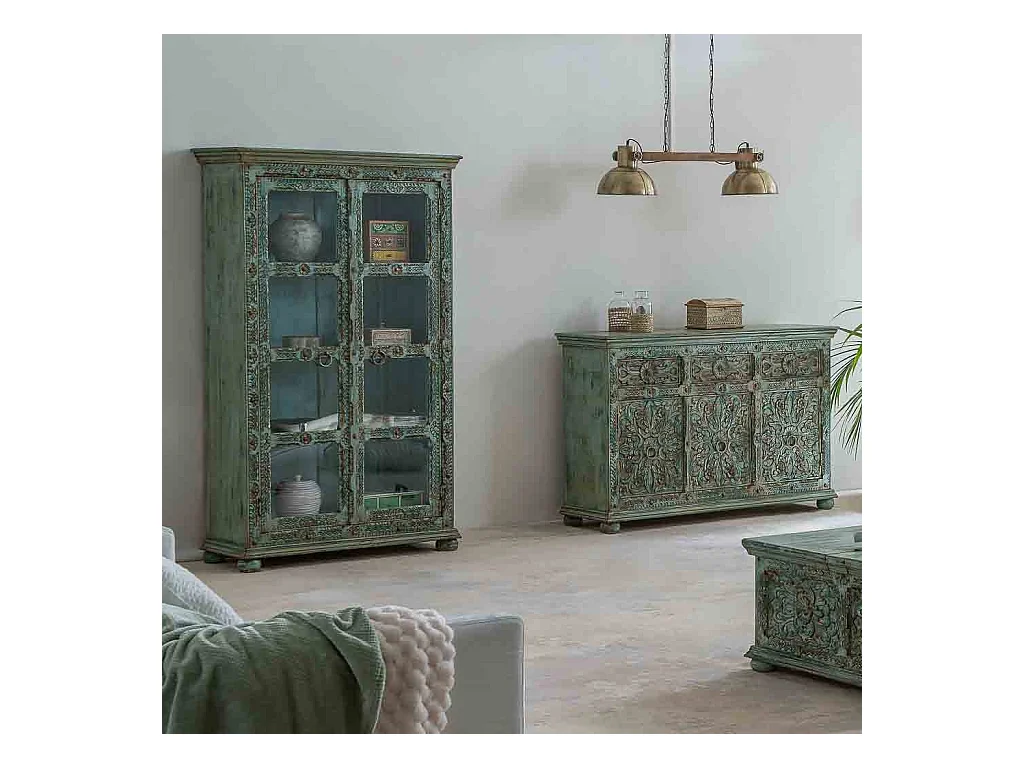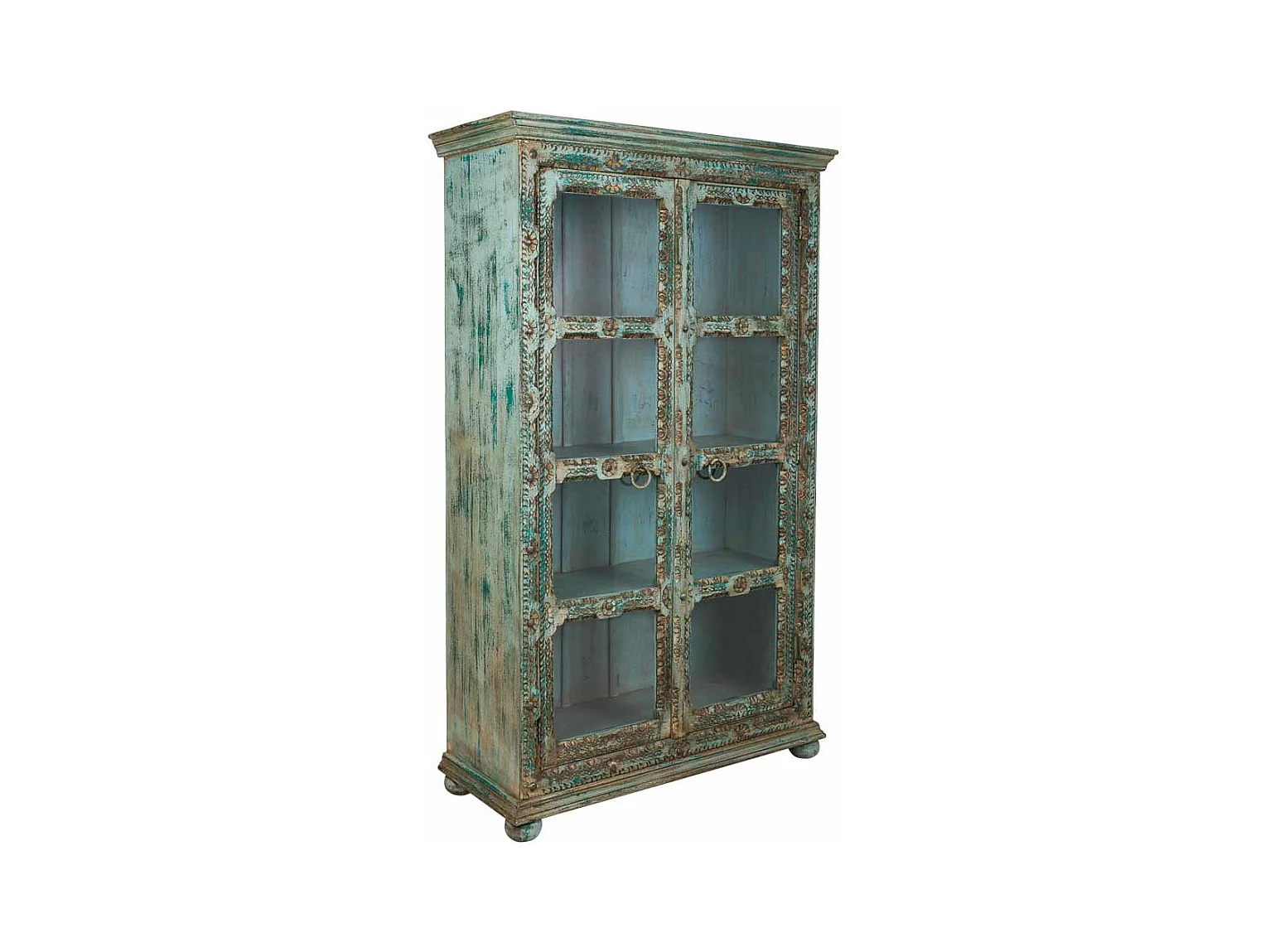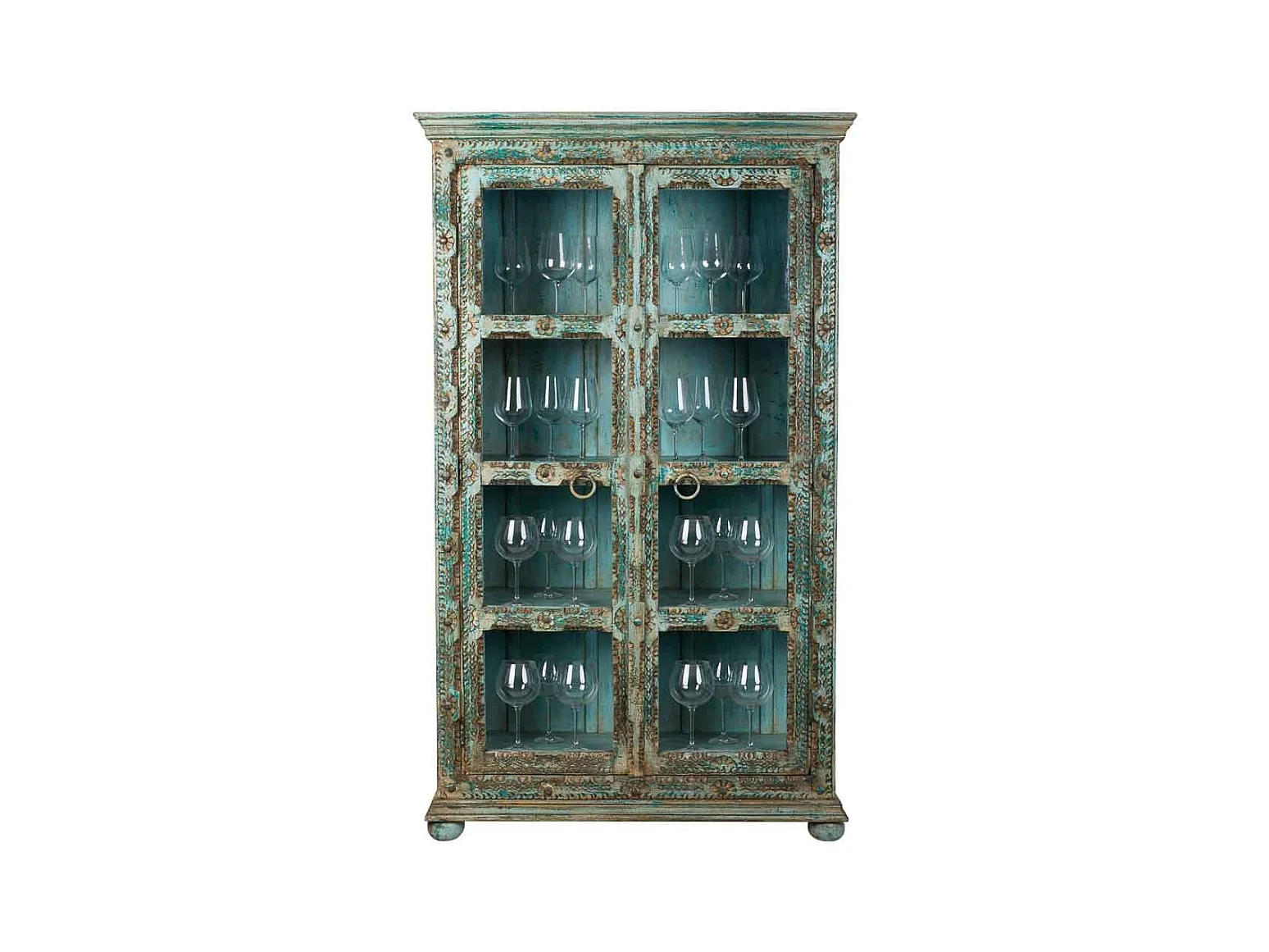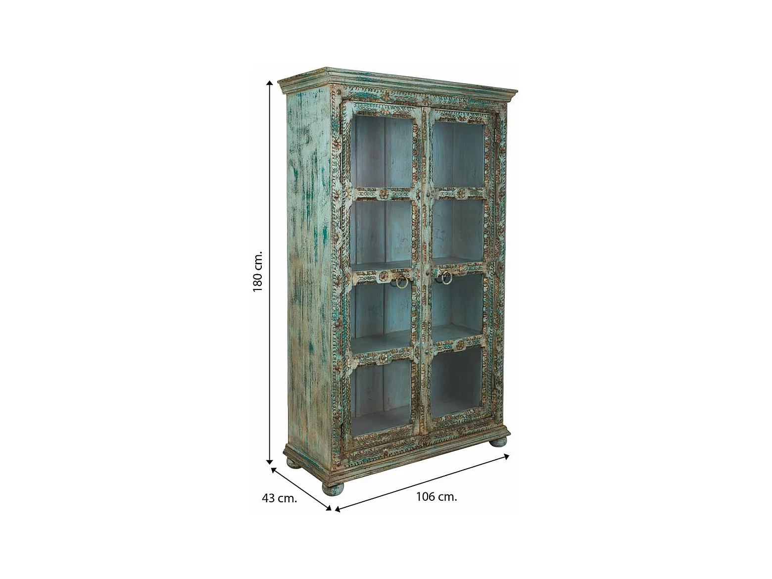 Vetrina in legno e vetro con 2 ante, blu 90x40x183h cm