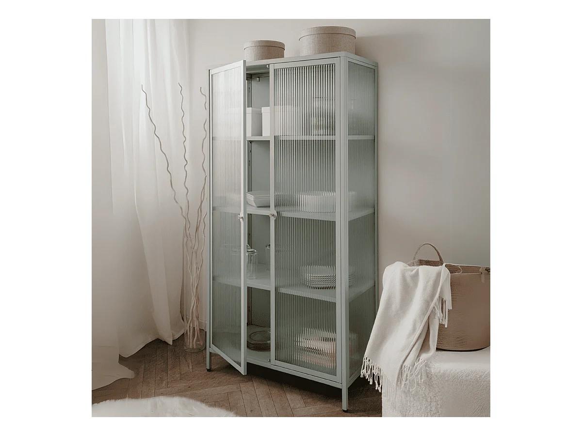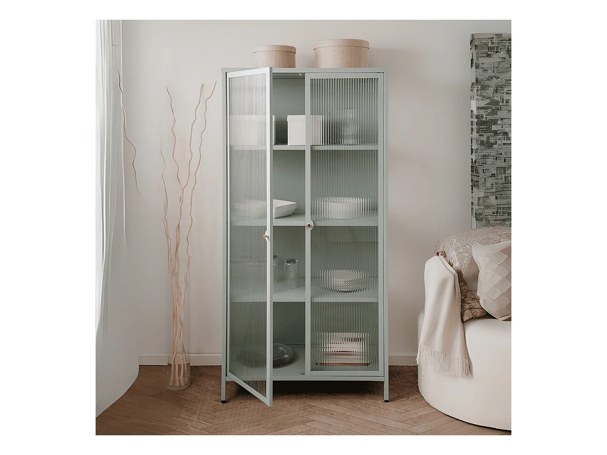 Vetrina in vetro scanalato temperato e acciaio laminato verde menta 2 ante Milton52A 80x40x160H