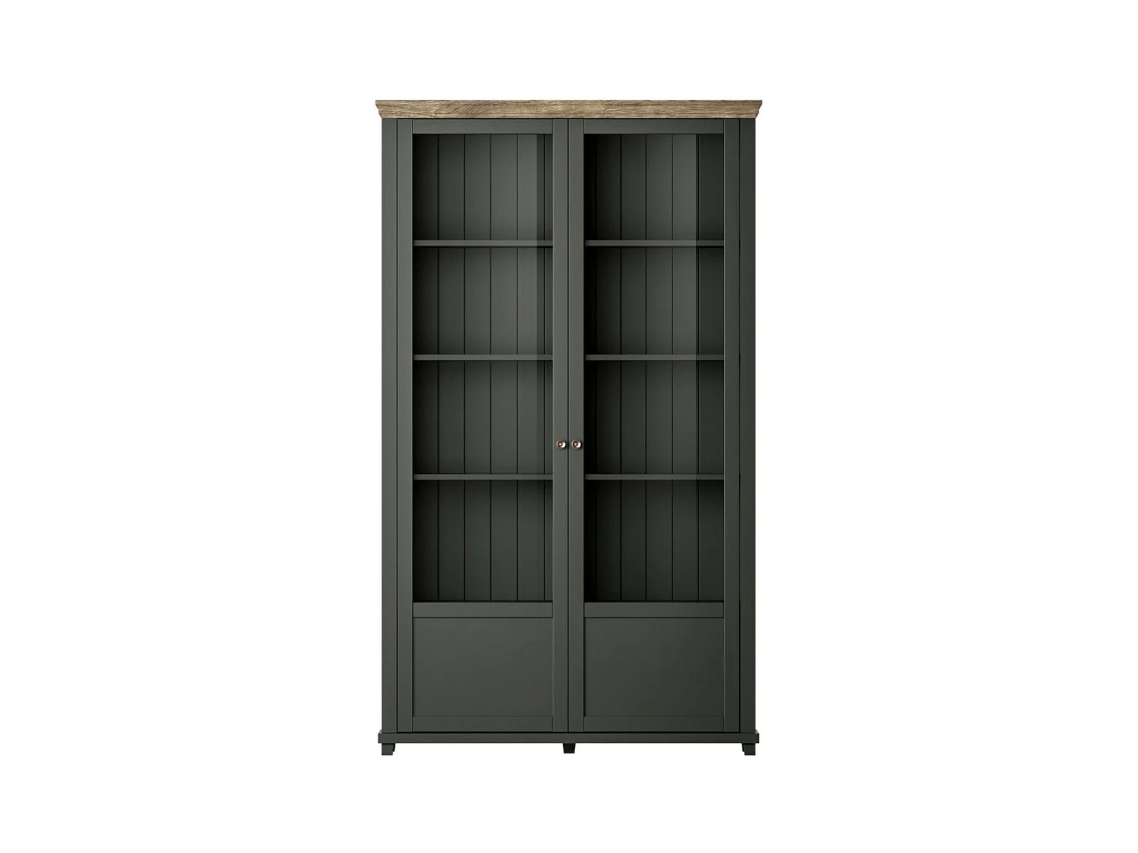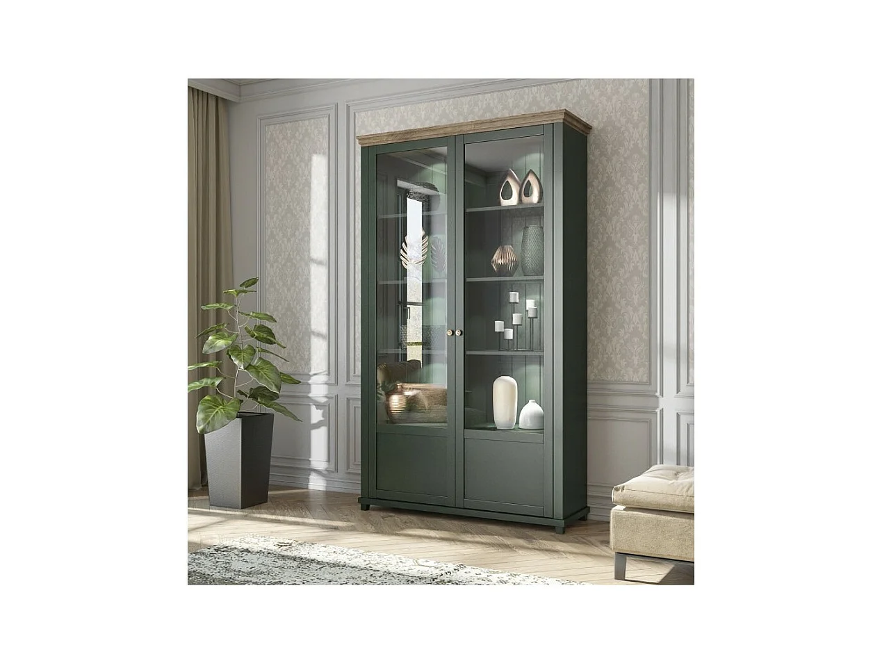 Vetrina ASSIA 2 porte vetrate verde scuro e legno - 125 cm - 10 nicchie - Eleganza senza tempo