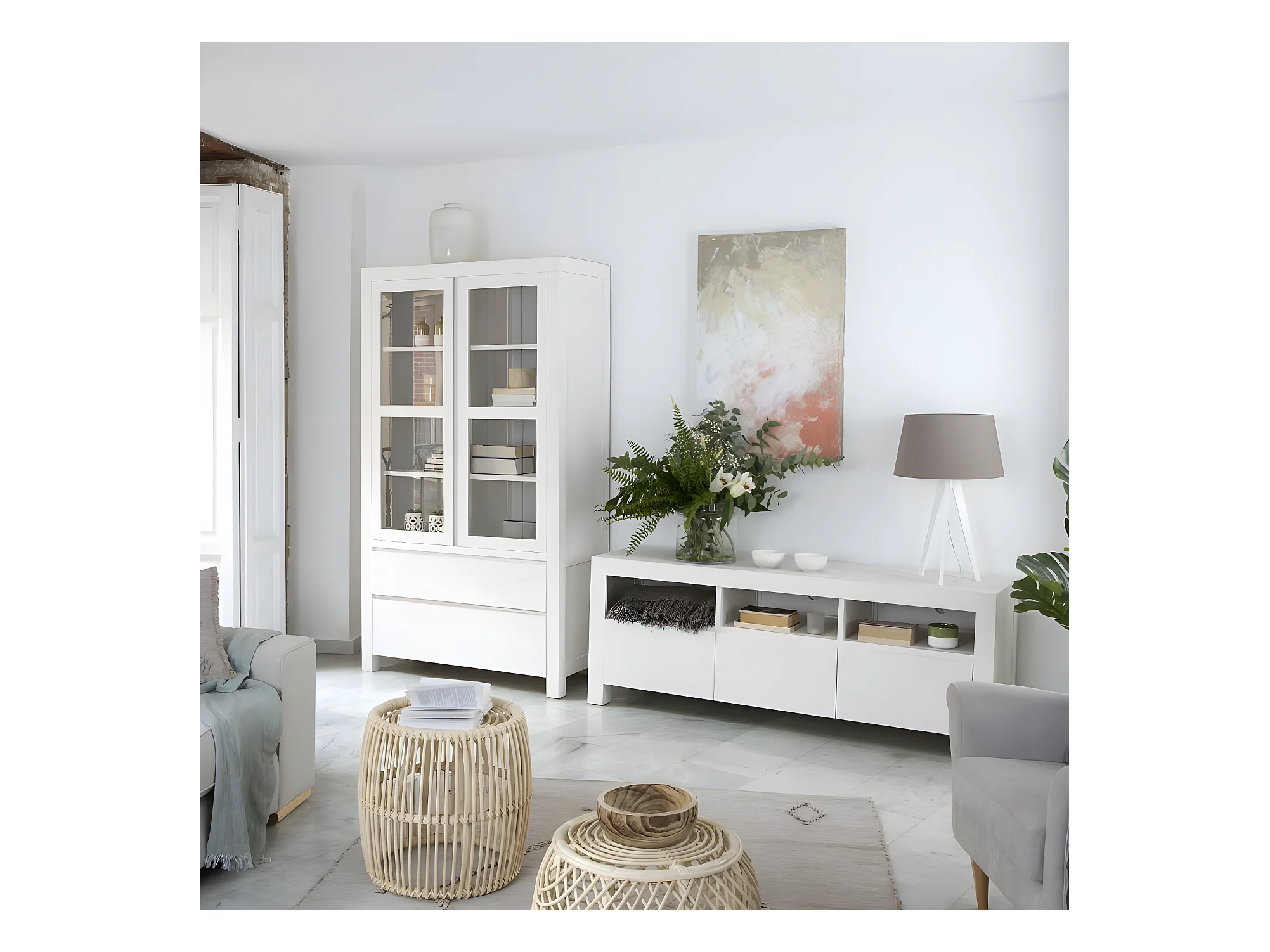 Vetrina legno massello e pannello in mdf bianco 45x185