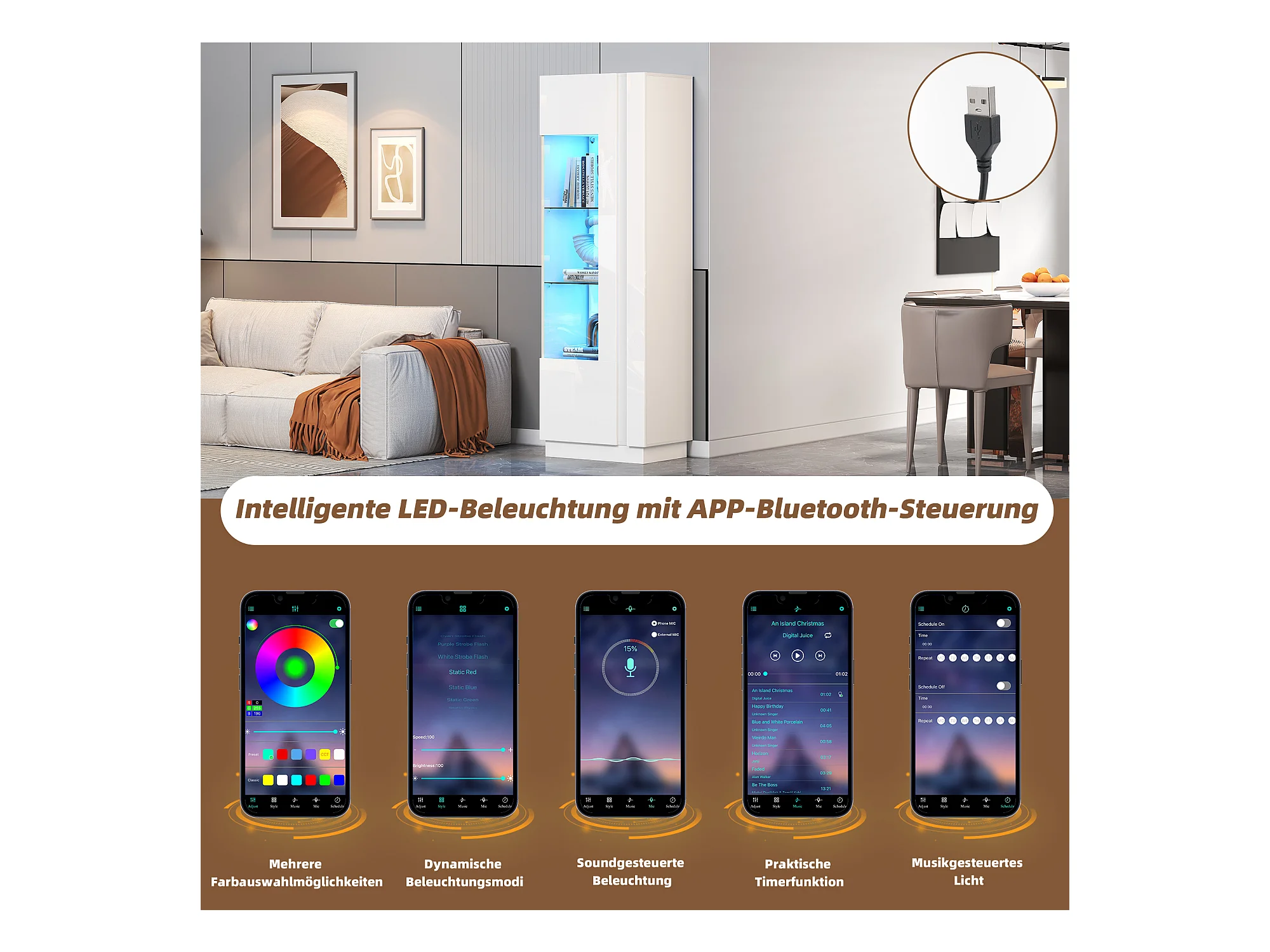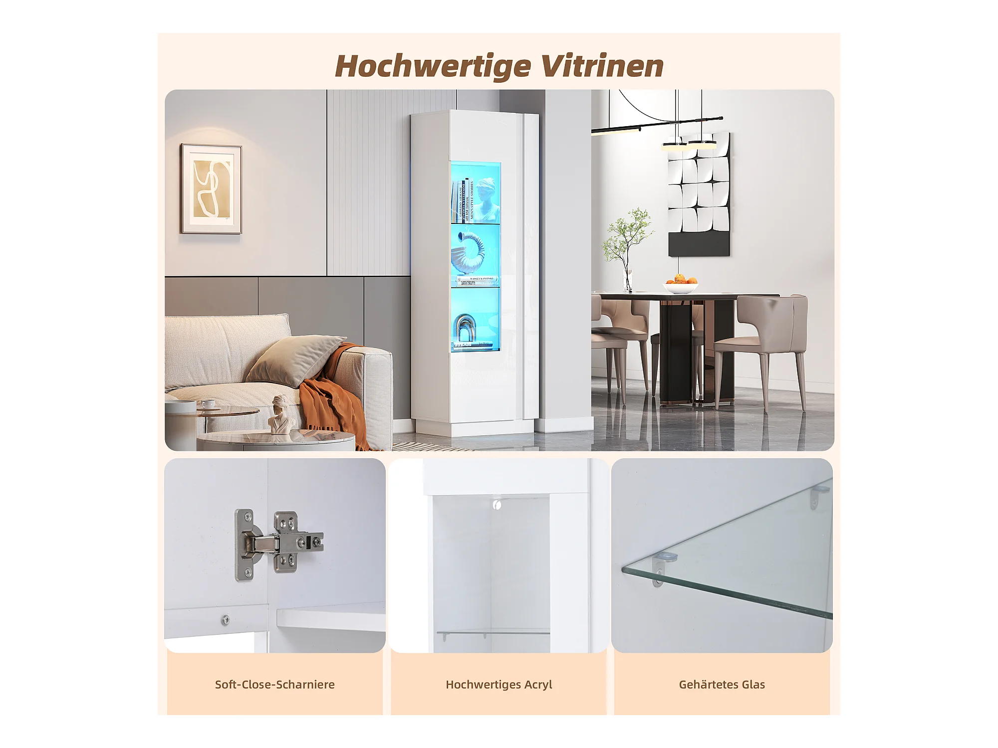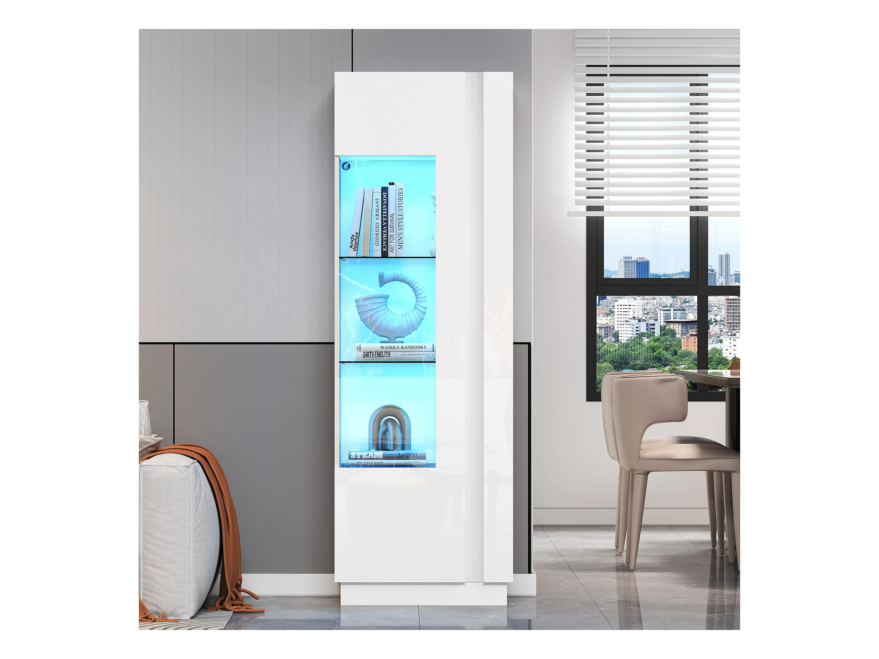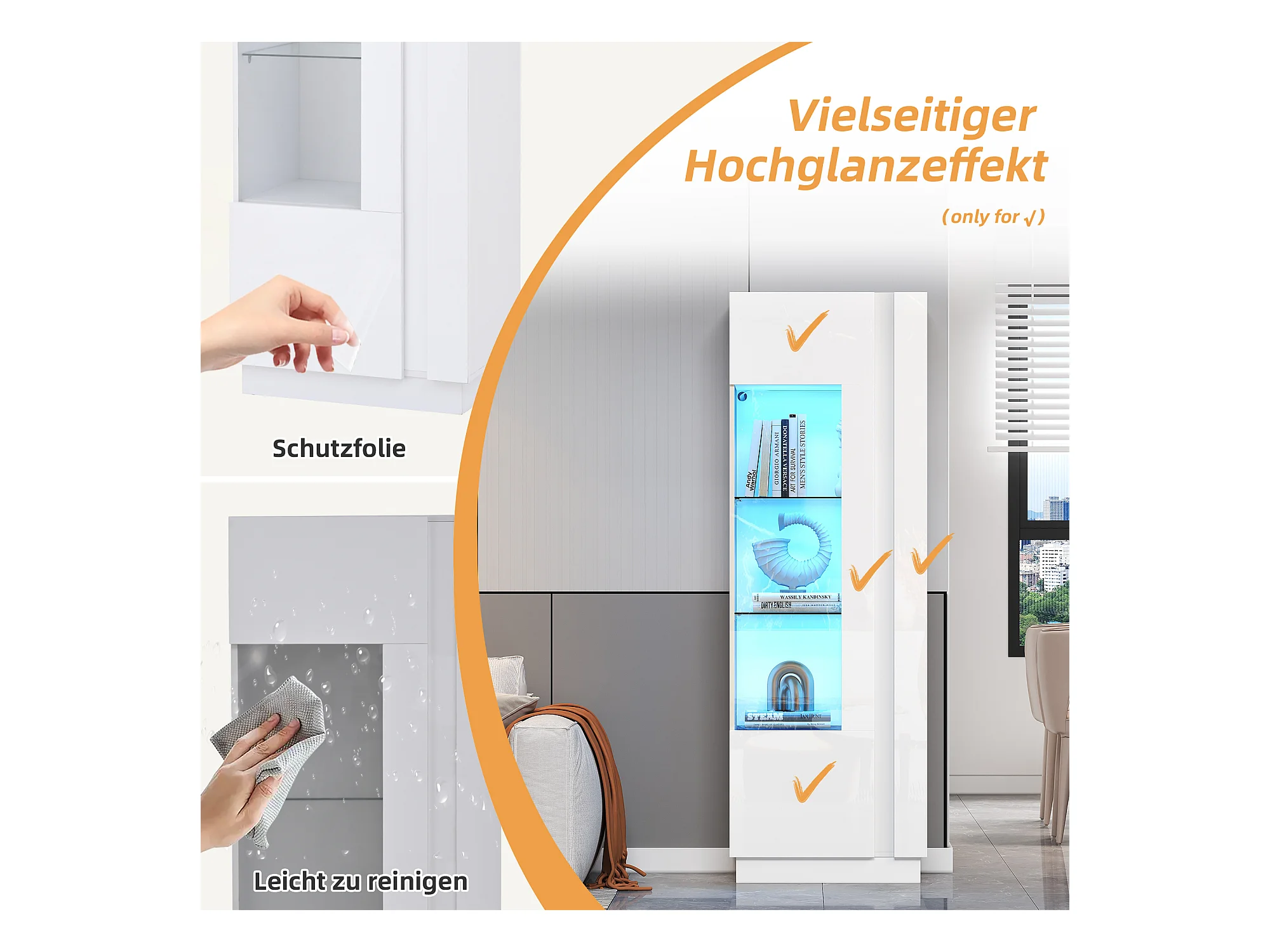 Vetrina lucida - 60 x 40 x 180 cm - con LED + 3 ripiani in vetro - truciolare - bianco