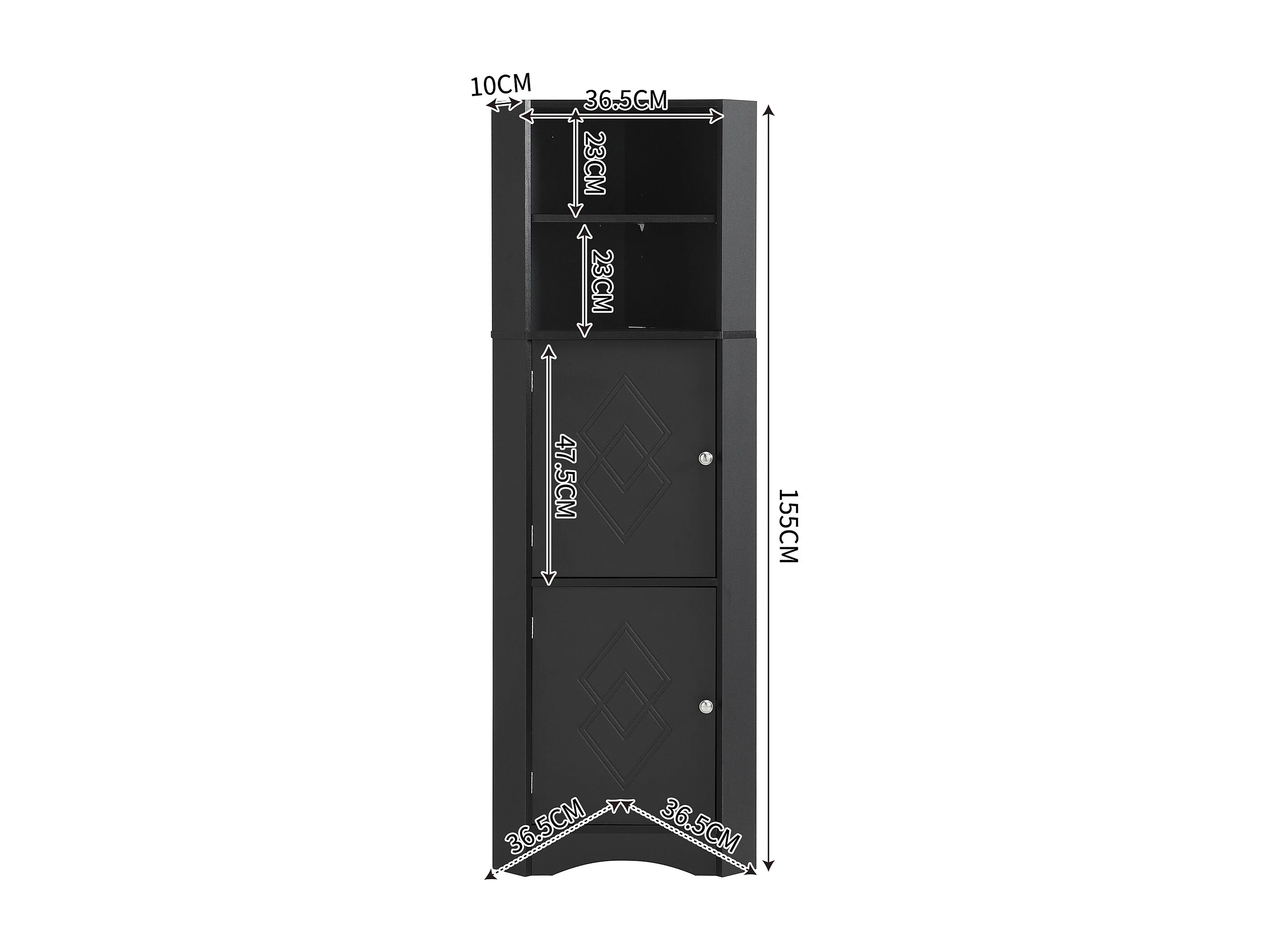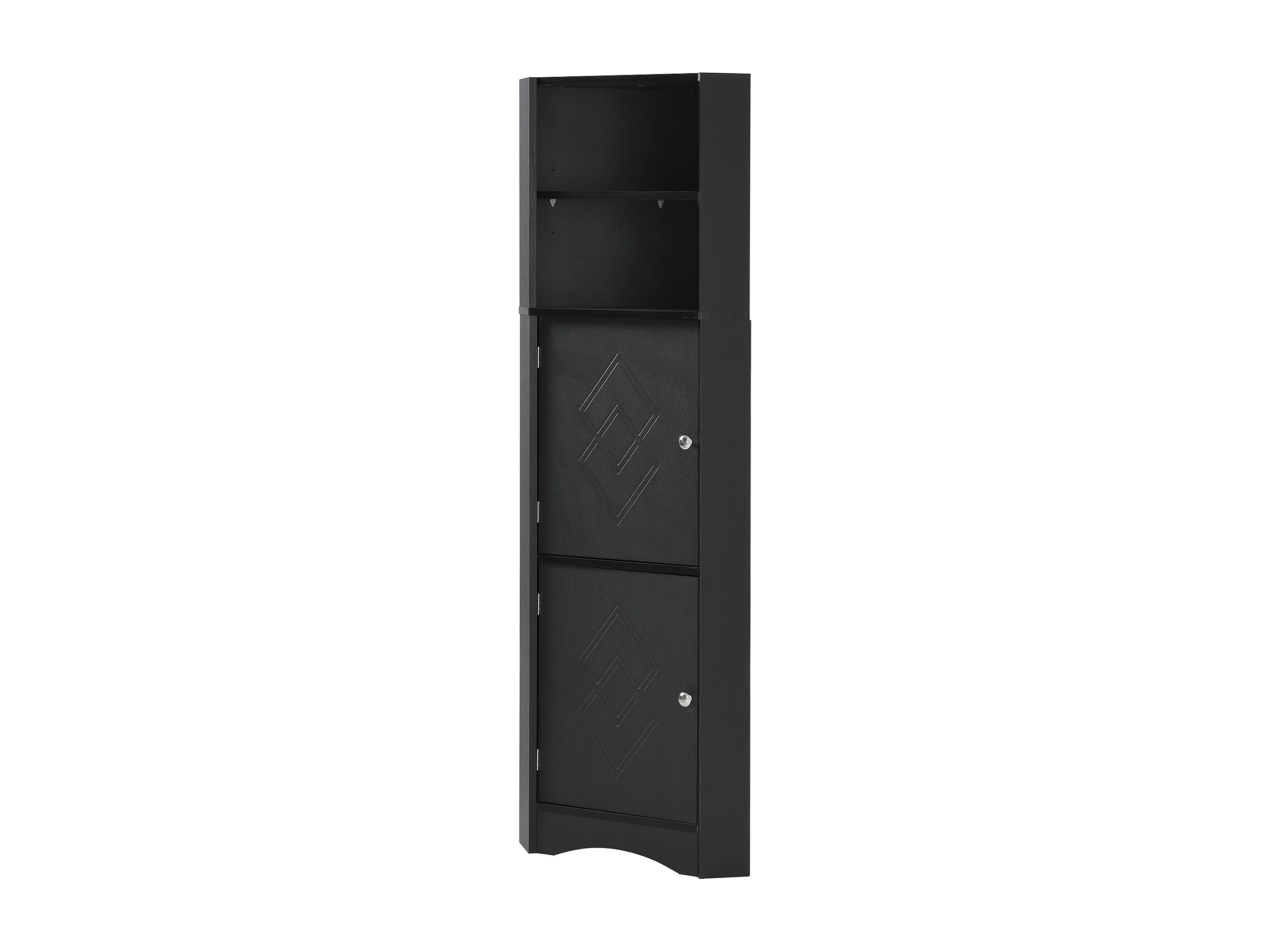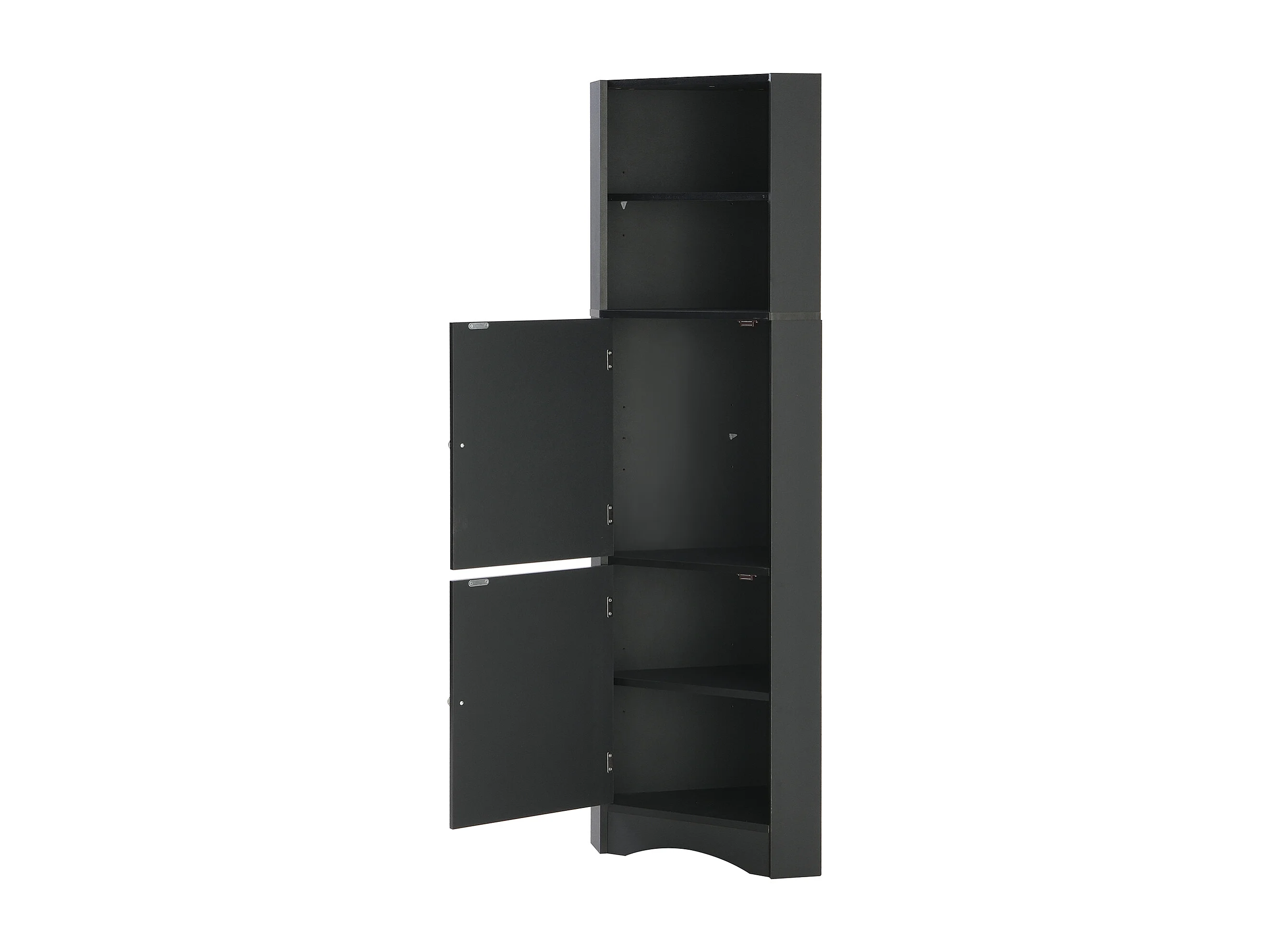 Vetrina, mobile ad angolo con due scomparti, vano a giorno, 36,5 x 36,5 x 155 cm, nero