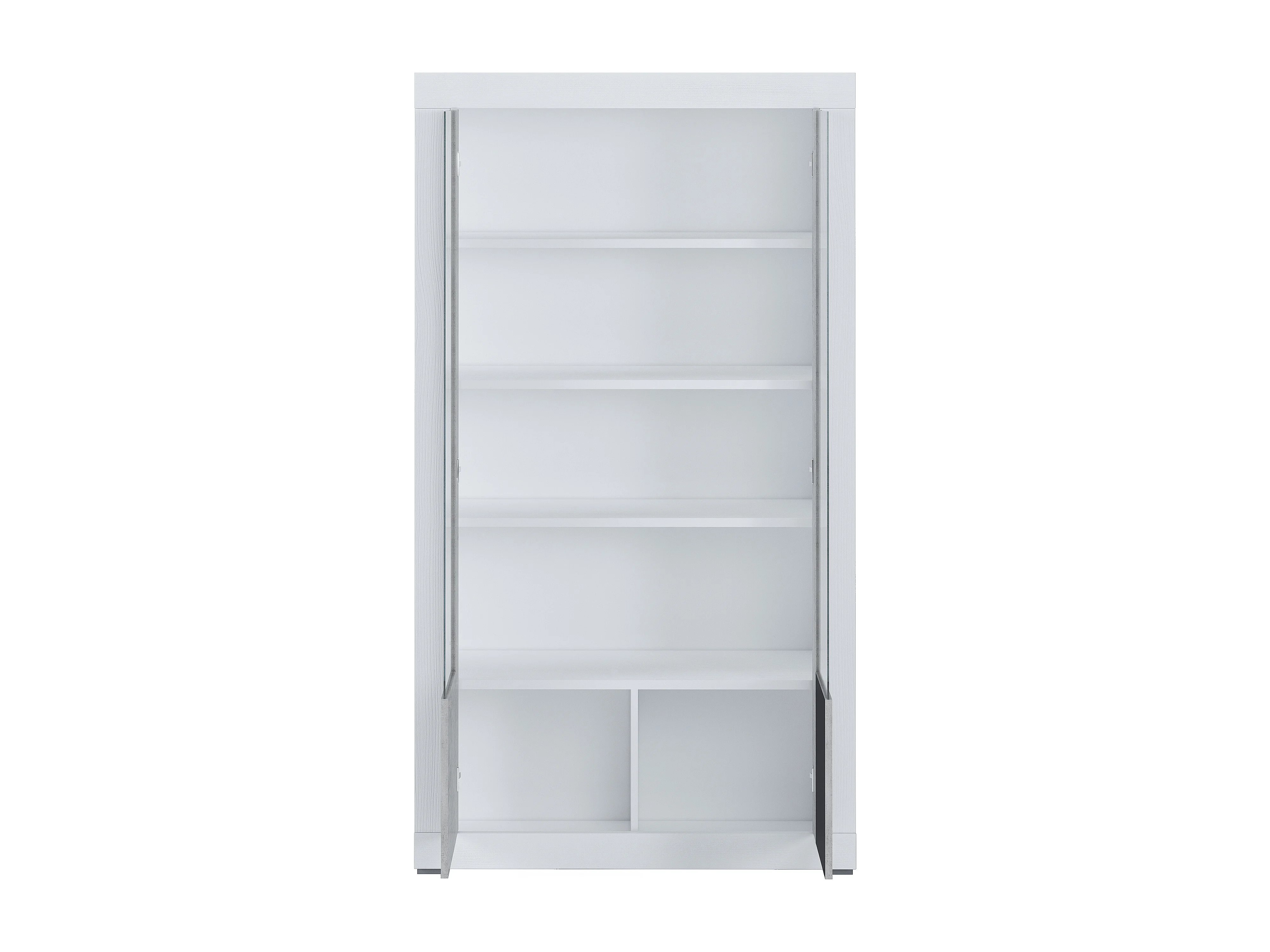 Vetrina Moderna 2 Ante In Vetro Con Pannelli Effetto Legno Libreria Soggiorno Sala da Pranzo Vetrinetta Stile Contemporaneo 104.8 x 41.8 x 191 Cm Grigio Cemento
