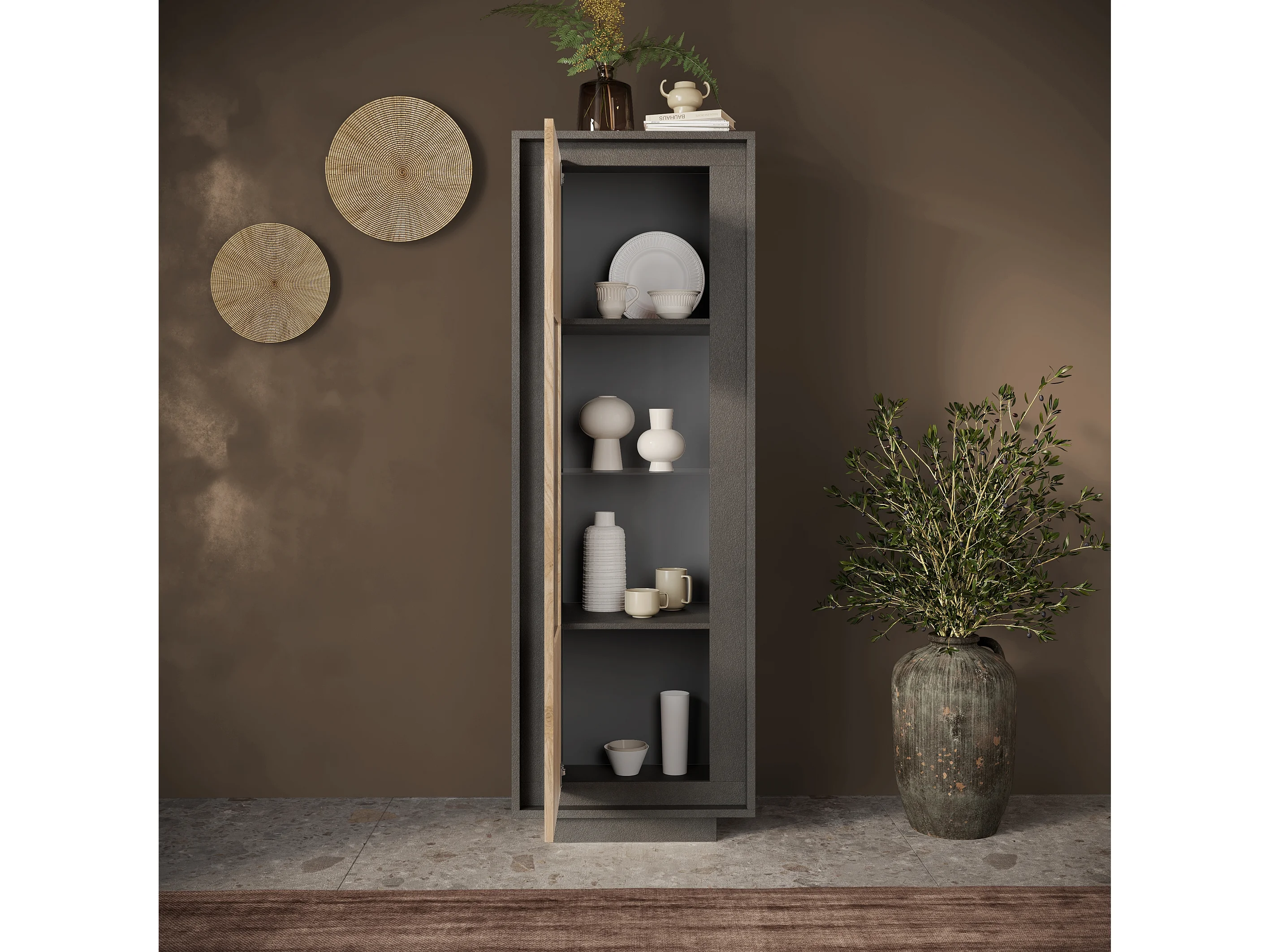 Vetrinetta alta moderna con illuminazione LED nero e rovere 80x192 VP27