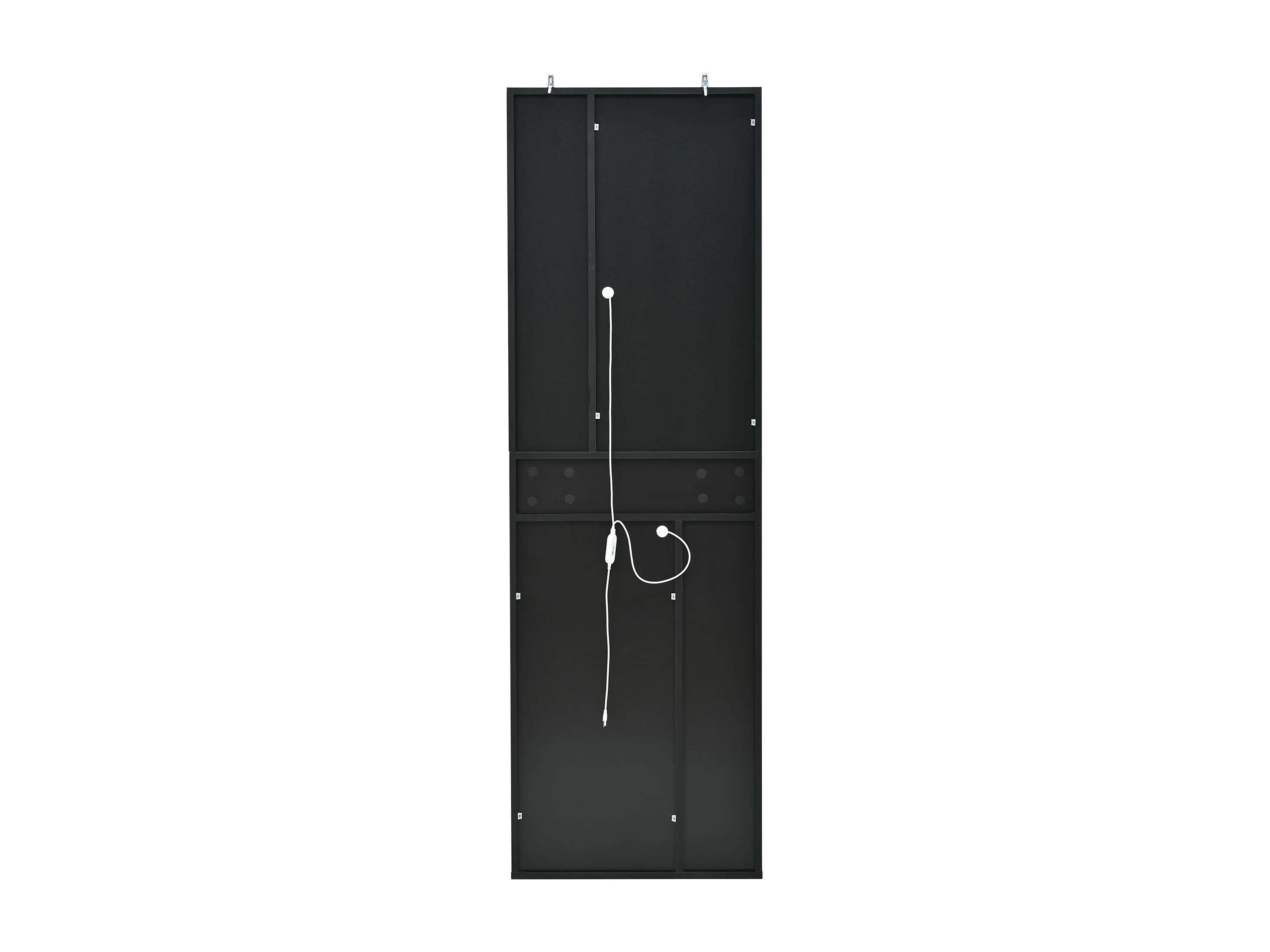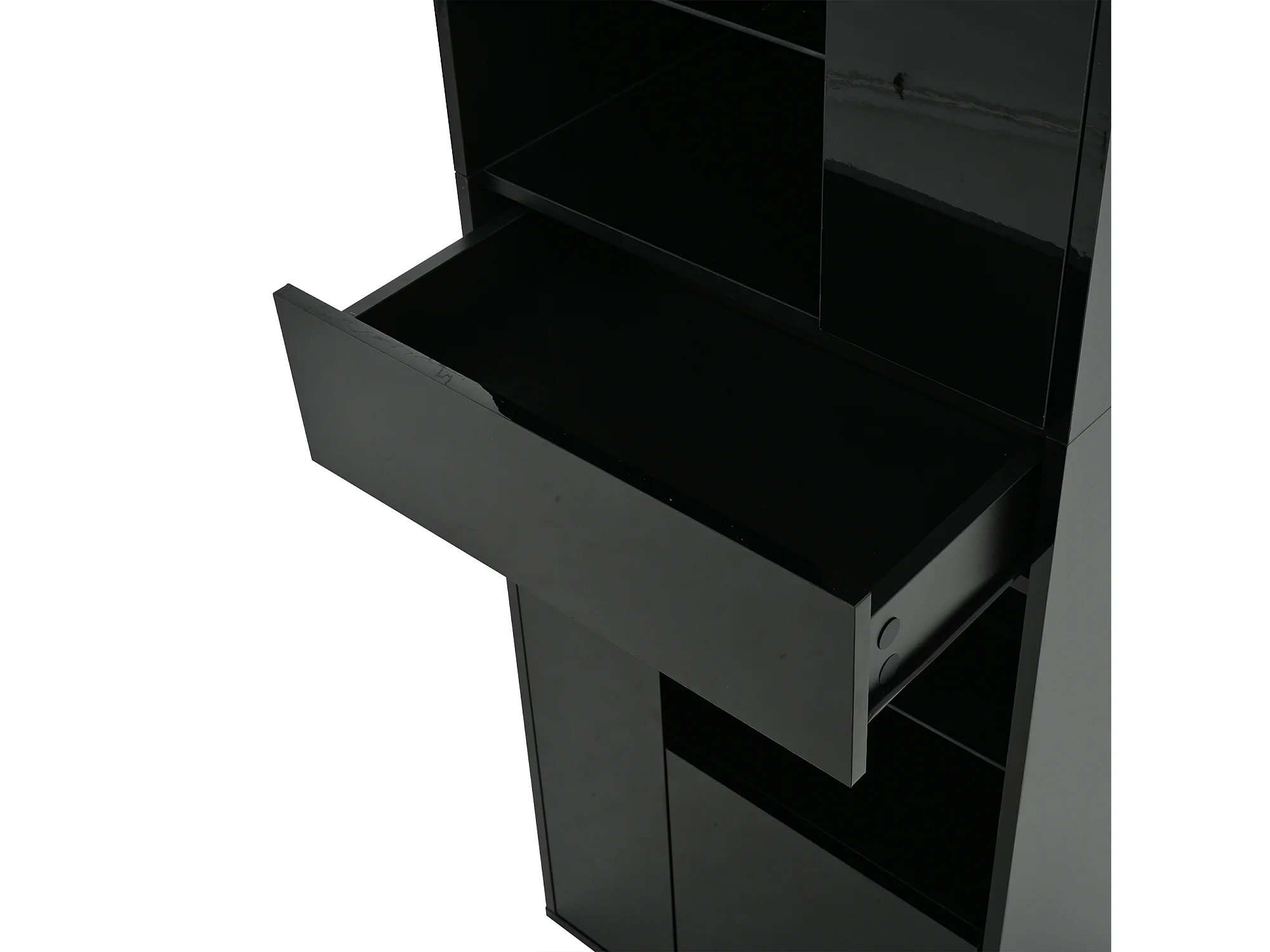 Vetrina nera con 1 cassetto, 4 ante e illuminazione a LED, ripiani in vetro, 55x38x170 cm