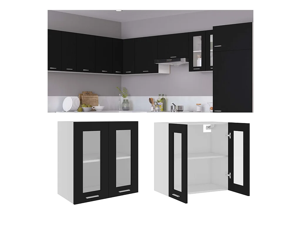 Vetrina sospesa Nera 80x31x60 cm MDF