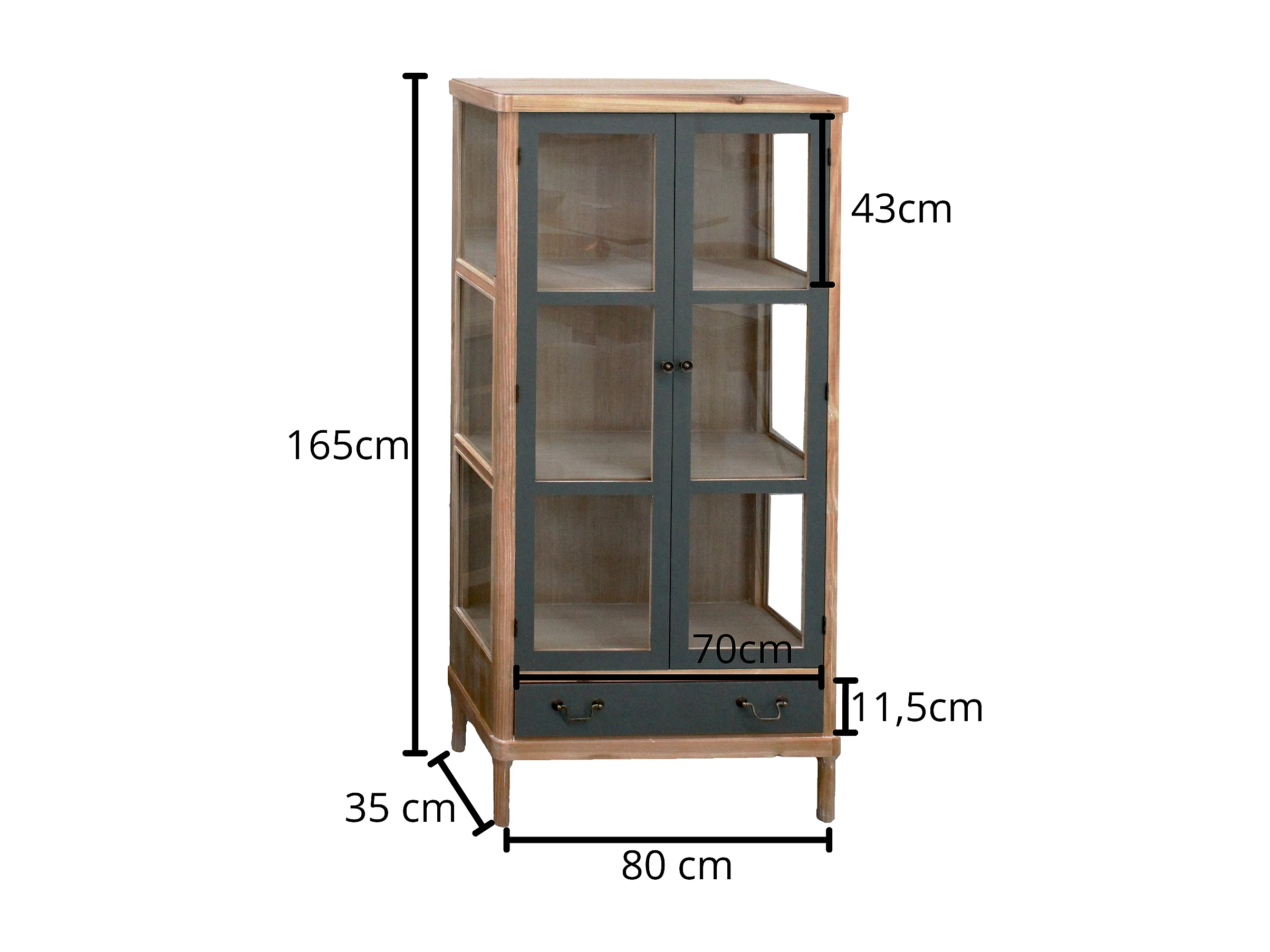 Vetrinetta “Elisabetta” in legno di Pino e MDF colore miele e grigio