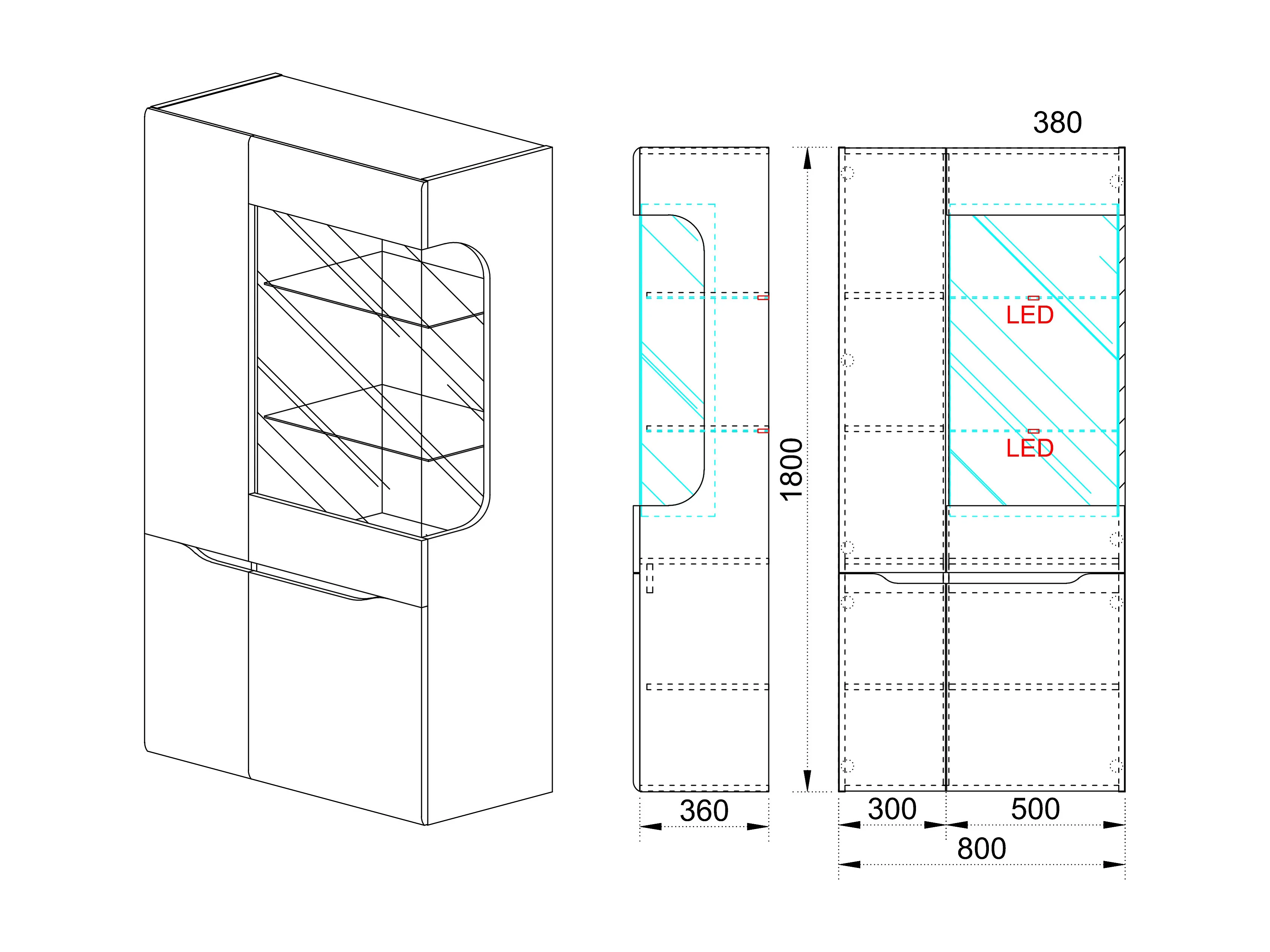 Vetrina 72x154cm con LED bianco lucido VLK2