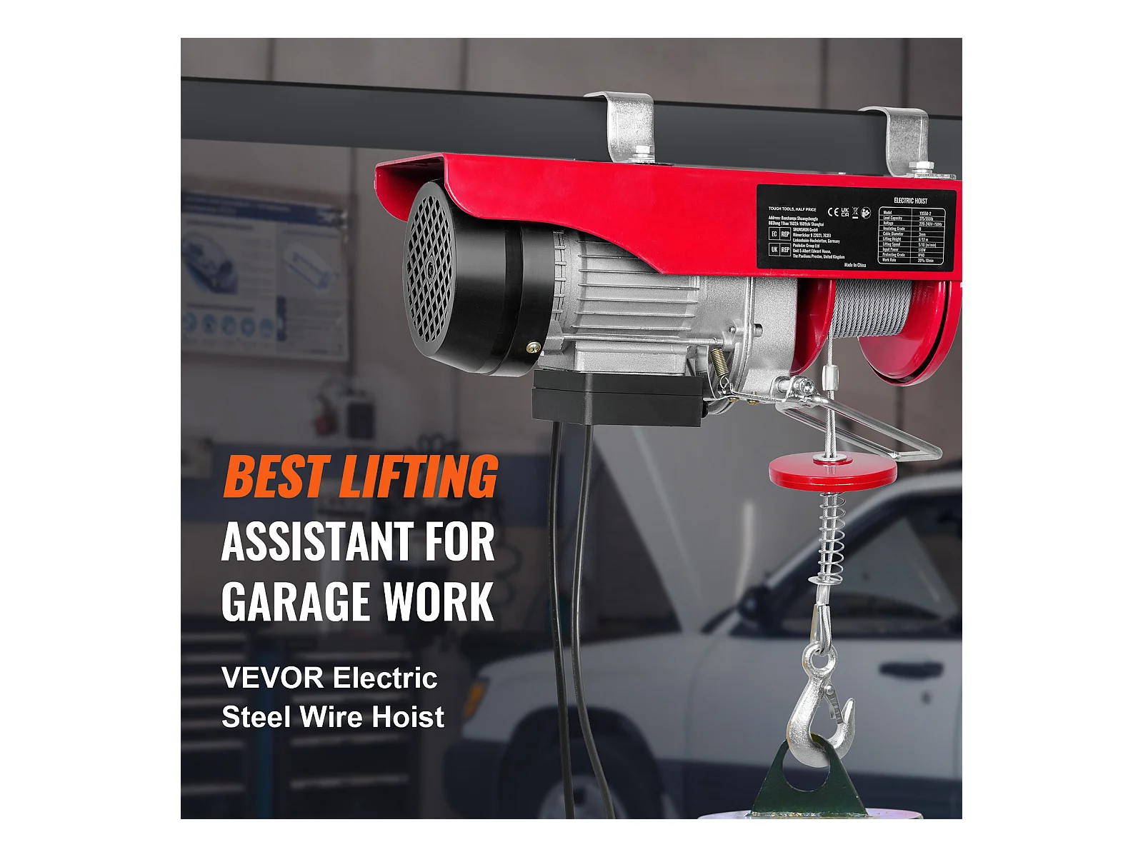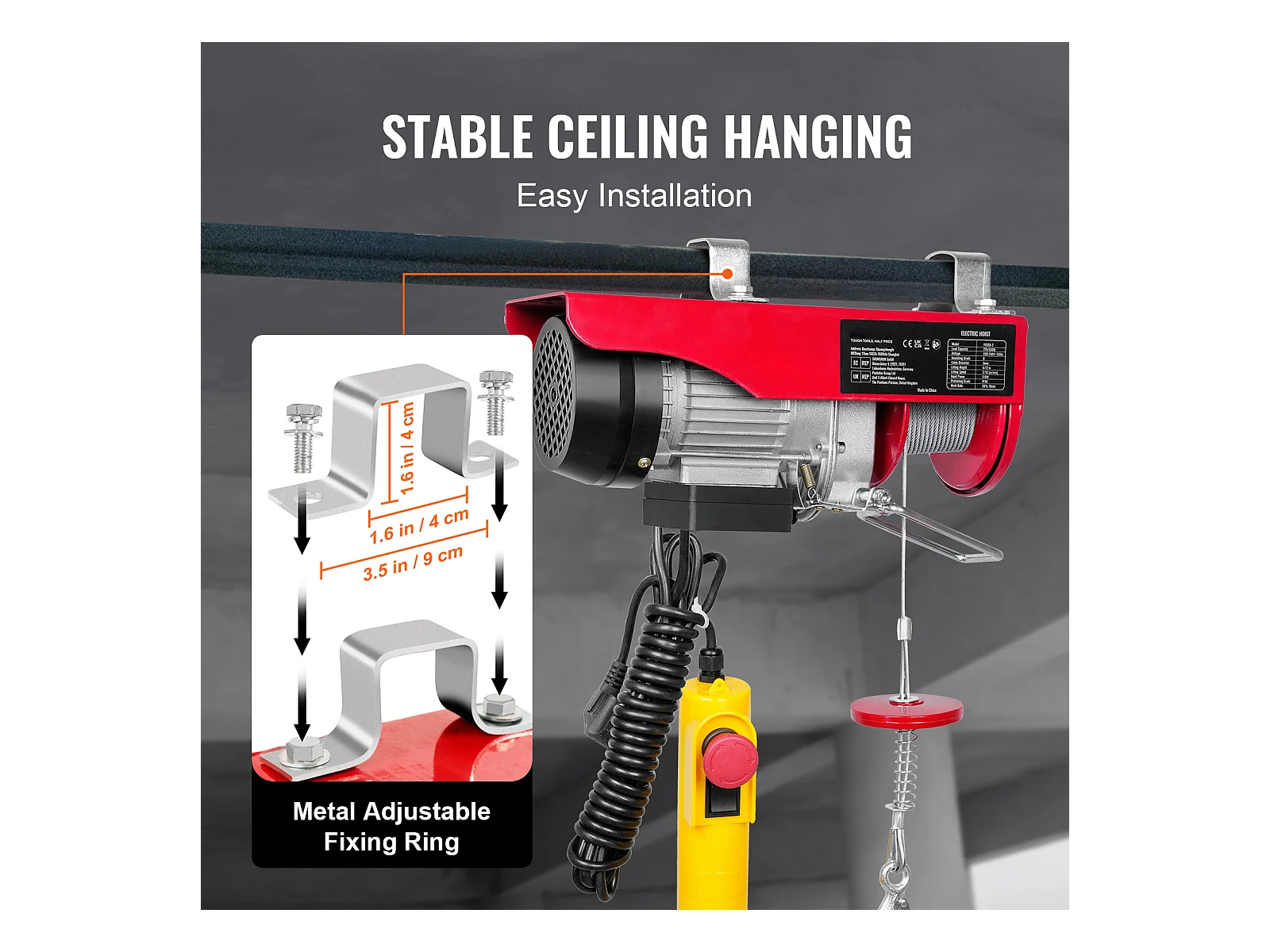 Troilo Elettrico 249 kg SucceBuy, Troilo a Cavo Elettrico, con Telecomando Senza Fili, 510 W 220 V, Rosso, per Garage, Magazzini e Fabbriche