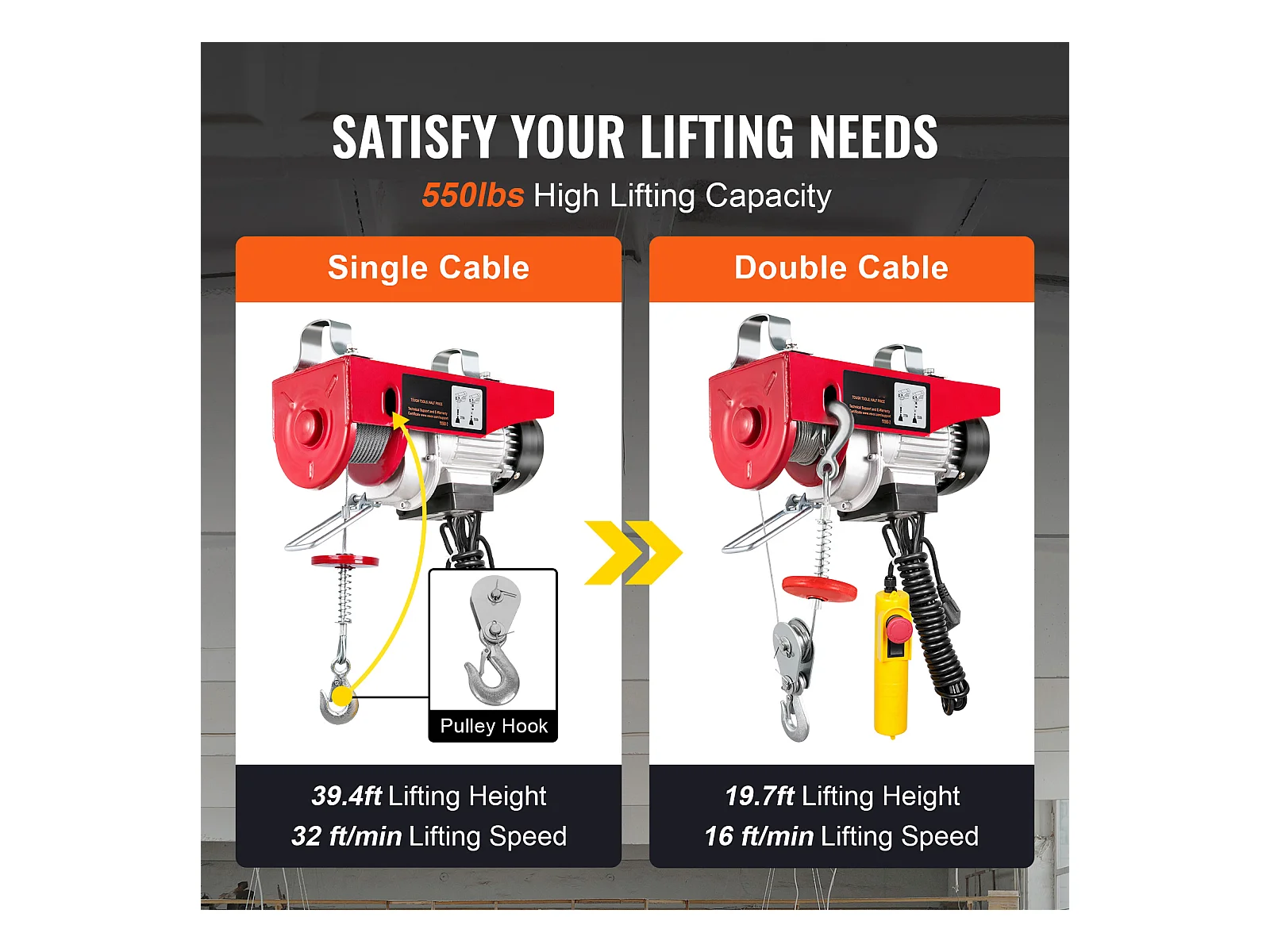 Troilo Elettrico 249 kg SucceBuy, Troilo a Cavo Elettrico, con Telecomando Cablato, 510 W 220 V, per Garage, Magazzini e Fabbriche