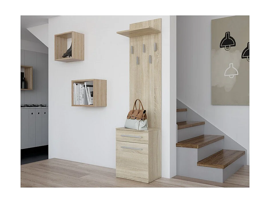VIONI - Mobile guardaroba da ingresso - Appendiabiti a parete con ripiano - 5 ganci - Cassetto + mobile contenitore