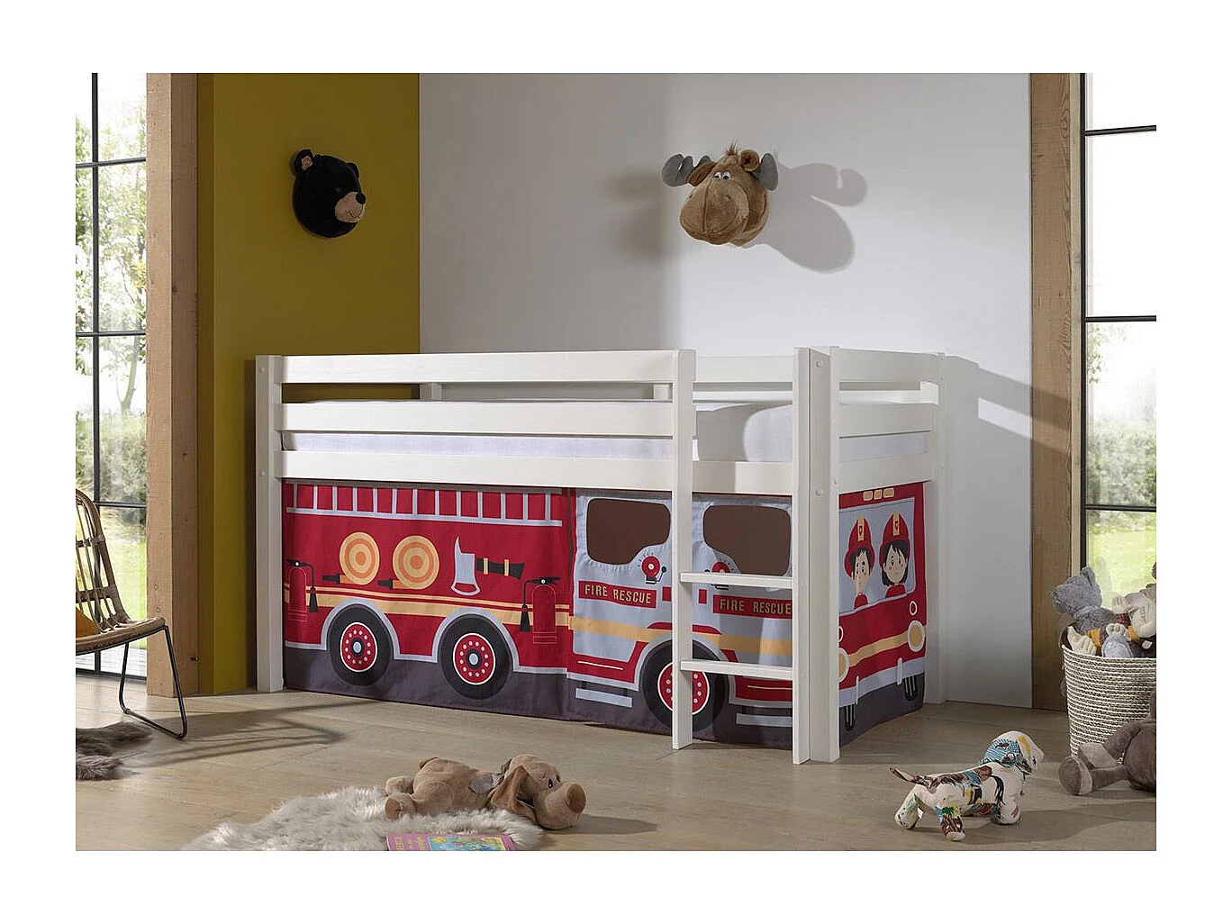 Vipack Pino Mi-Haute Letto 90x200 compreso di molle Pompier rivestimento Bianco