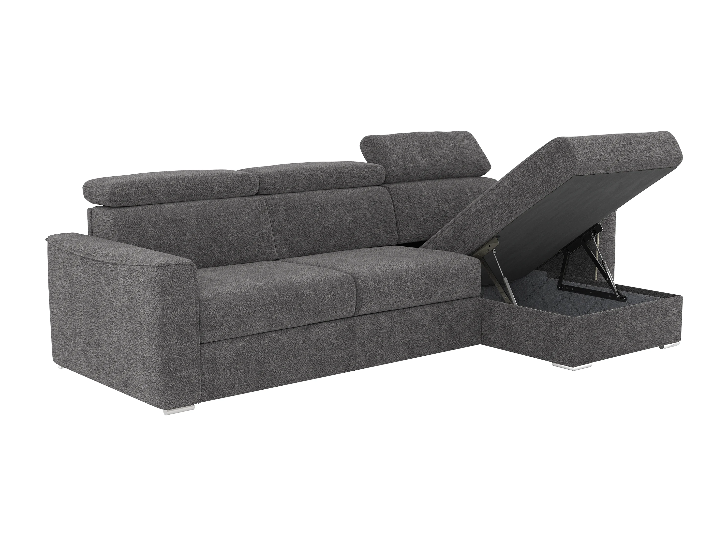 Divano angolare reversibile convertibile rapido in tessuto ciniglia grigio antracite - Letto a doghe larghe 140 cm - Materasso 22 cm memory foam VIZIR