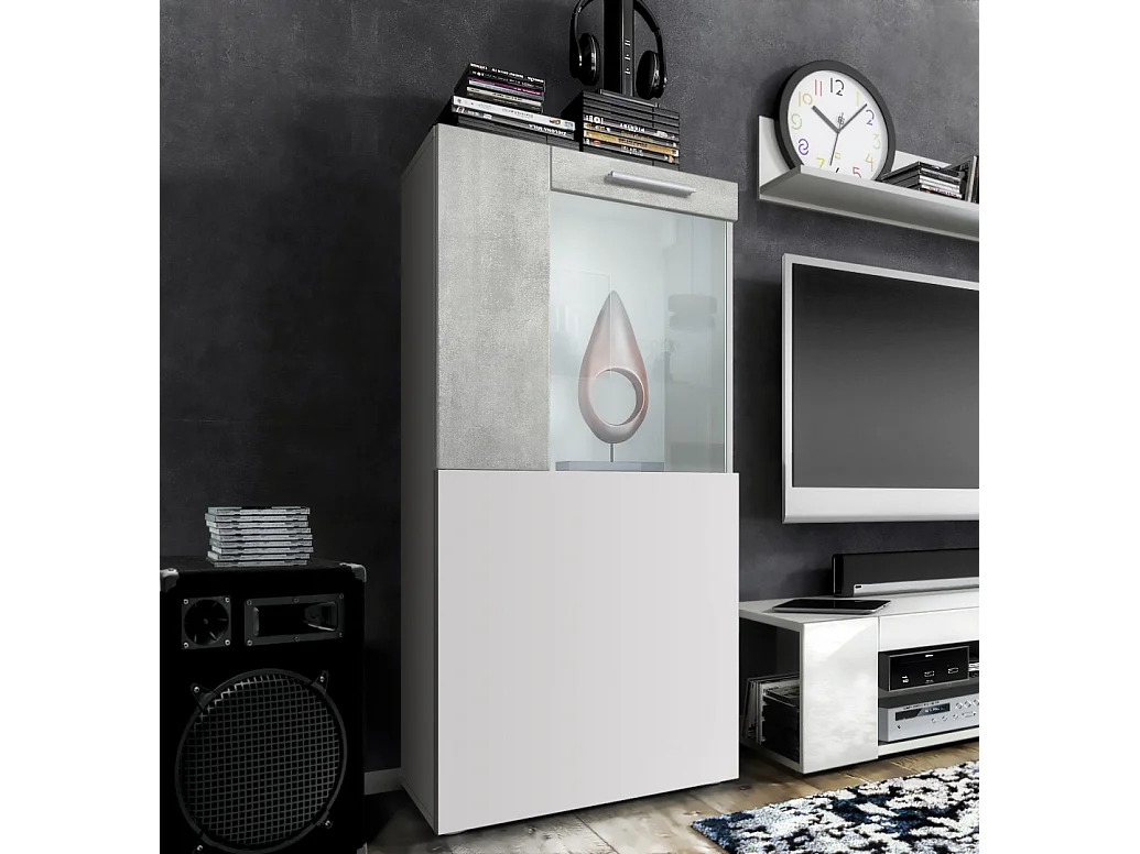 Vladon Vetrina Movie, bianco opaco/ottica cermento ossido - Vetrina moderna in vetro - (LxHxP): 50,5 x 111 x 32,5 cm