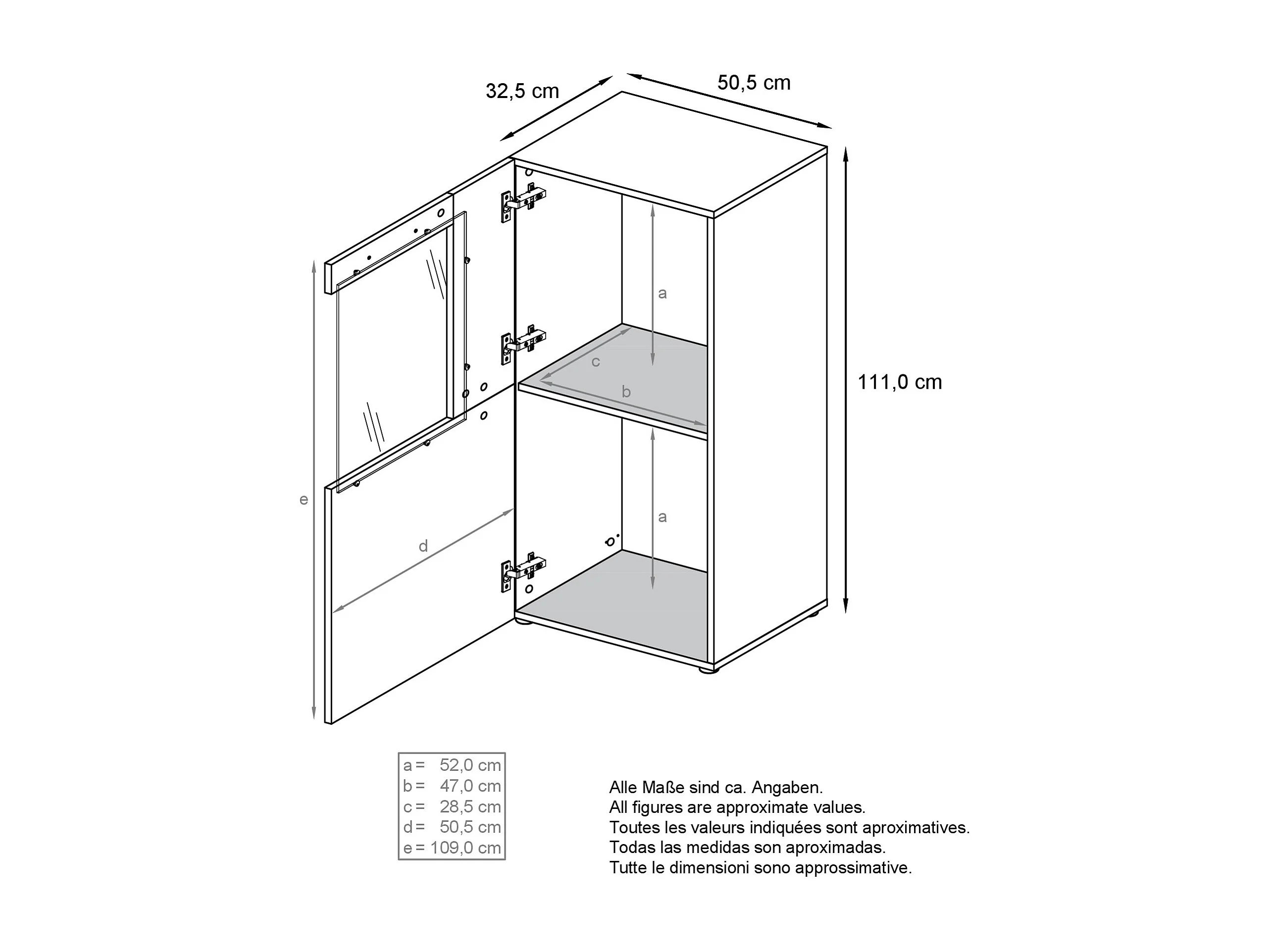 Armadio espositivo alto Morena, struttura in bianco opaco / anta destra e inserto in grigio ossido.