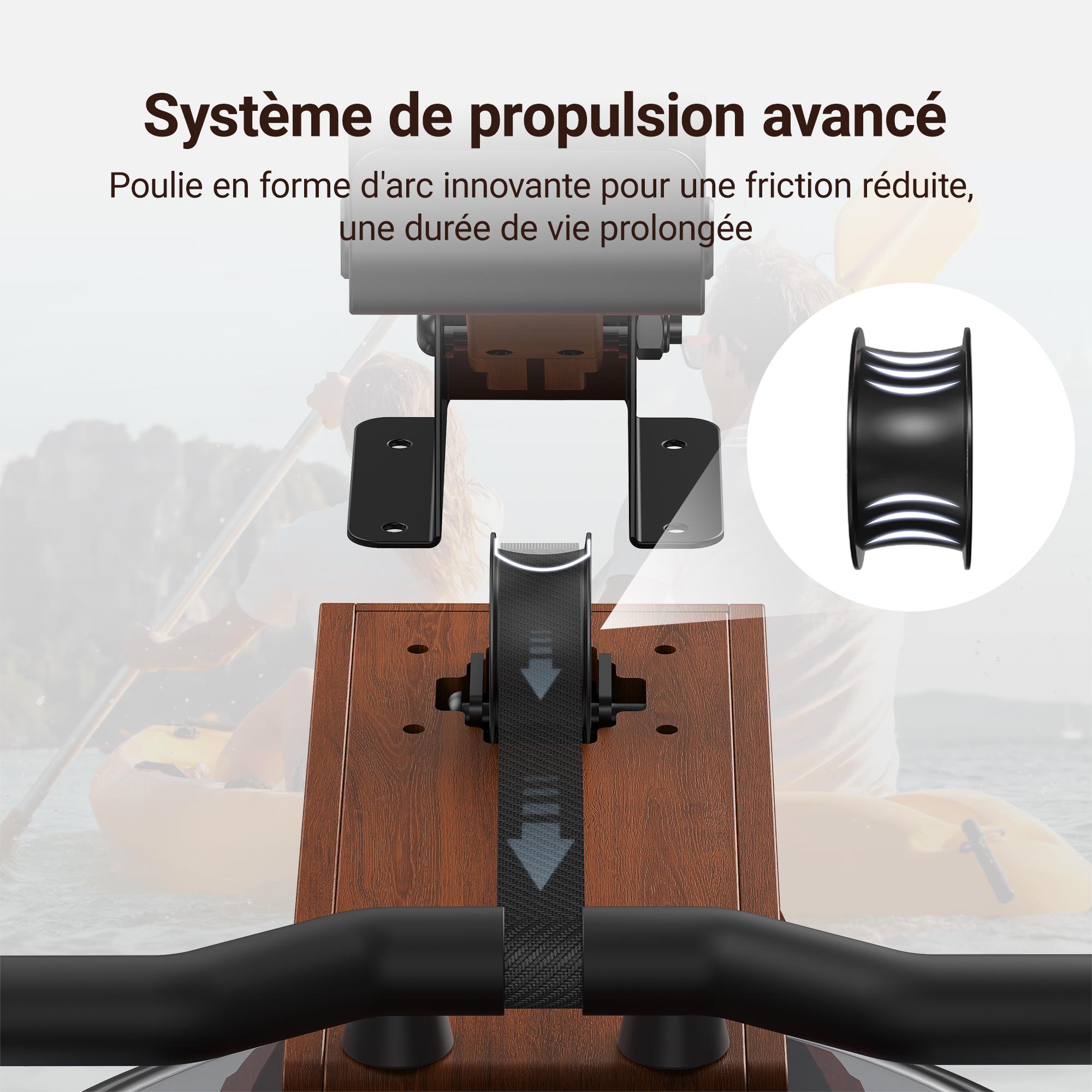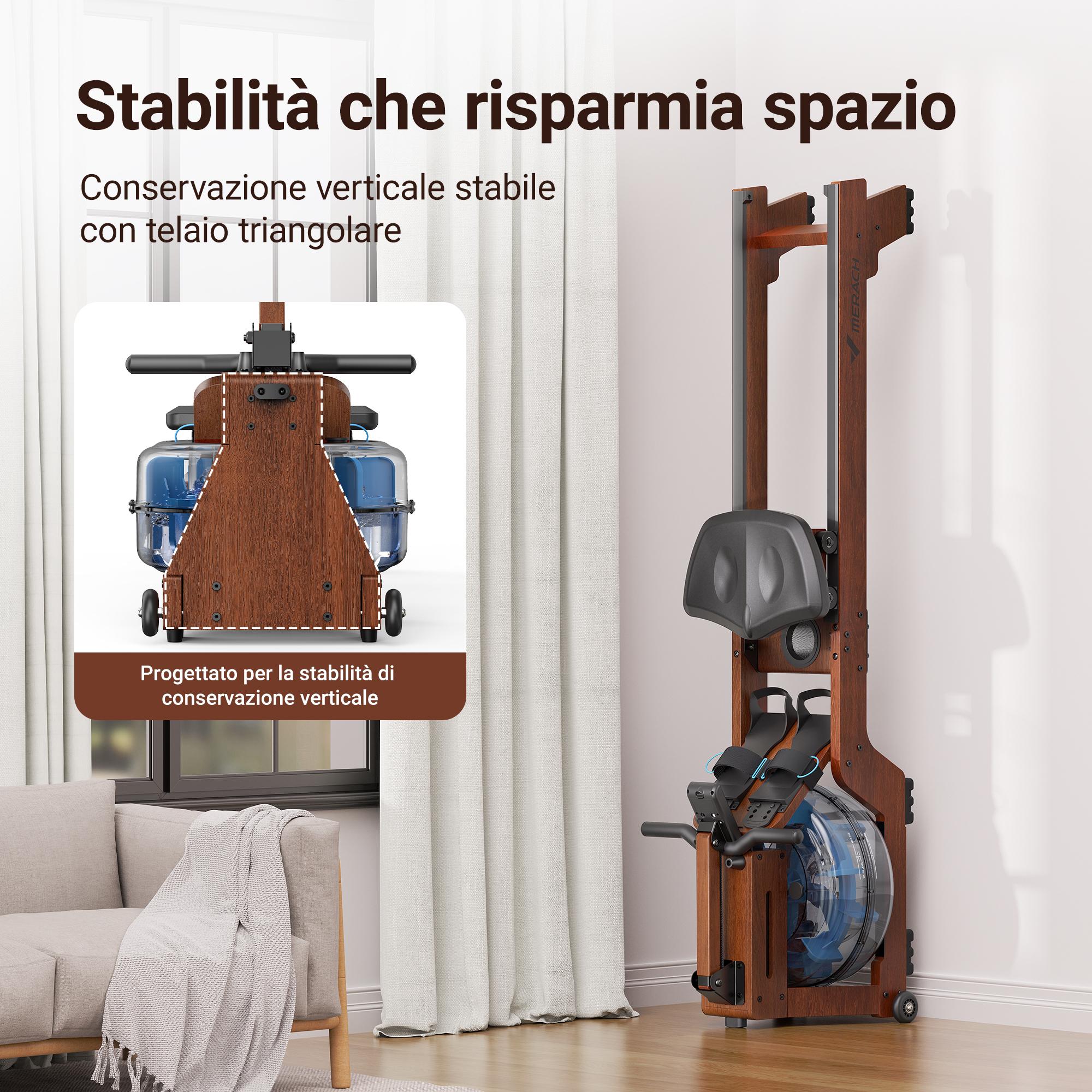 Vogatore ad acqua in legno Merach, 6 livelli di resistenza, schermo LCD, app connessa, serbatoio acqua 15L, regolazione manuale