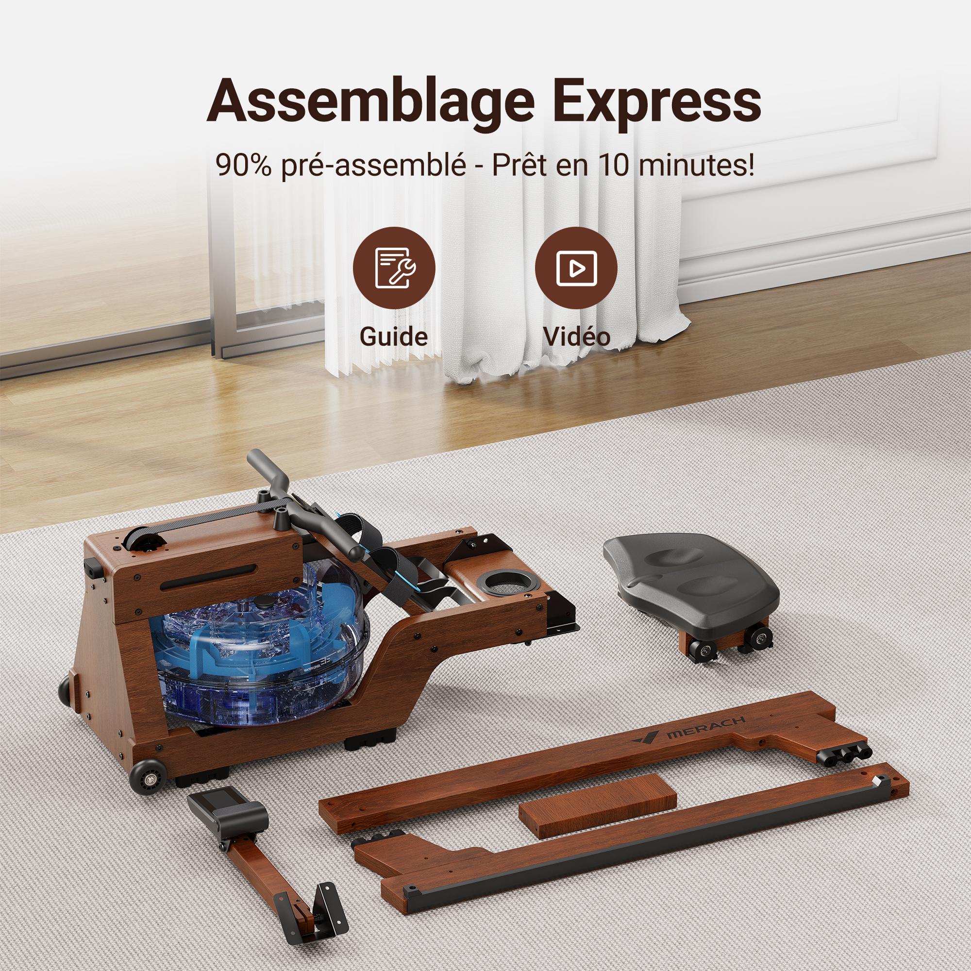 Vogatore ad acqua da appartamento Merach, sedile ergonomico, legno massiccio, compatibile Zwift e Kinomap, max carico 150 kg