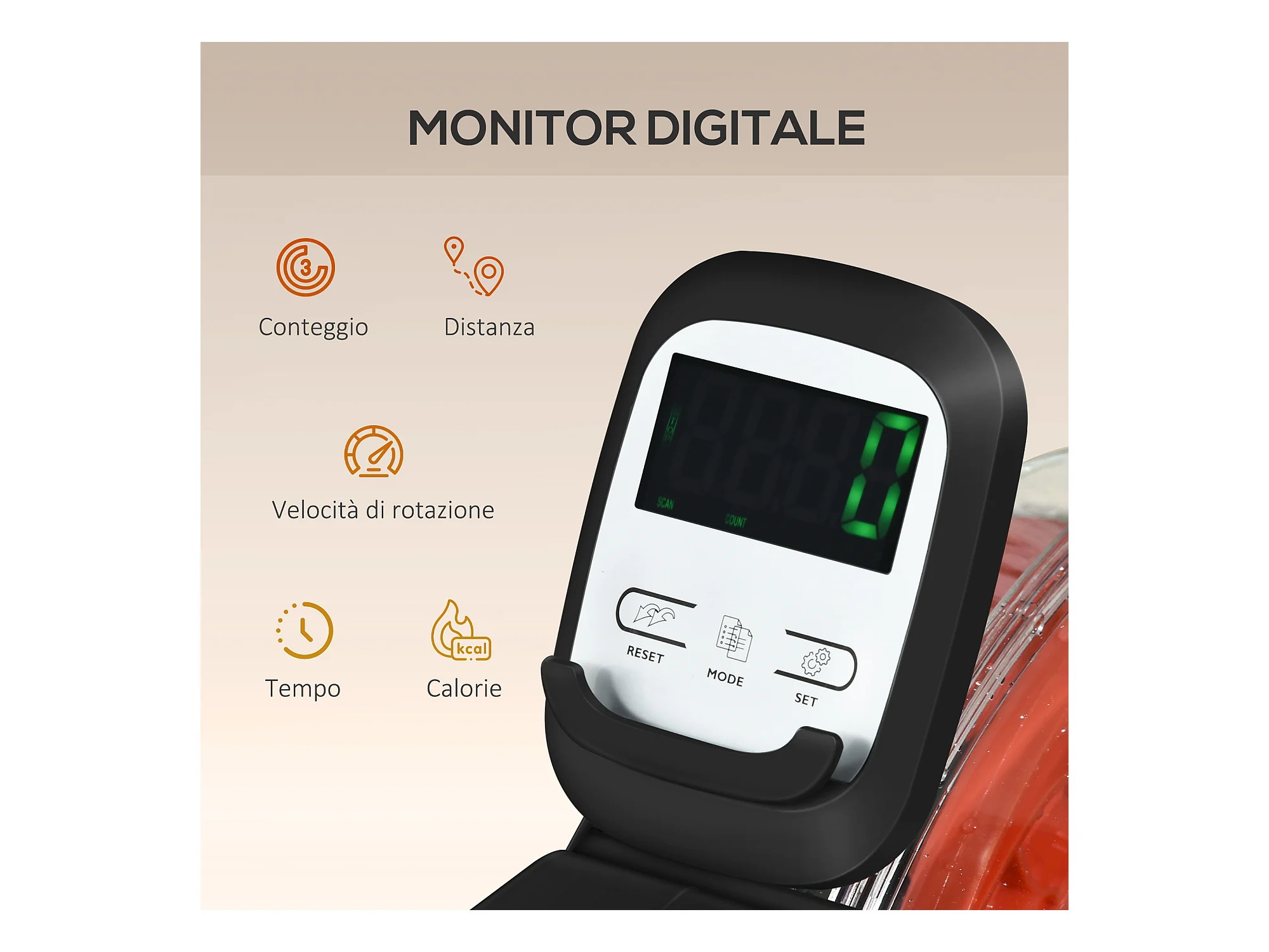 Vogatore ad acqua pieghevole a 6 livelli di resistenza in acciaio e pc