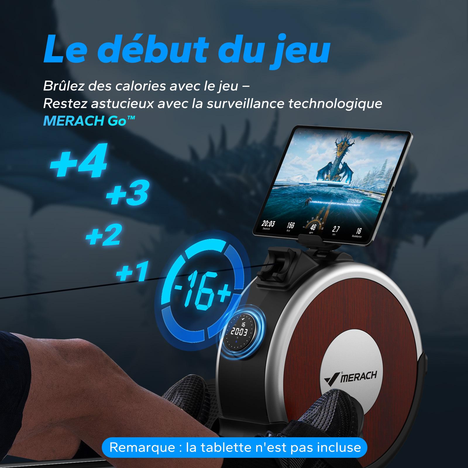 Vogatore magnetico Merach, Bluetooth, app connessa, schermo LCD, supporto tablet, pieghevole, 16 livelli di resistenza, max carico 155 kg