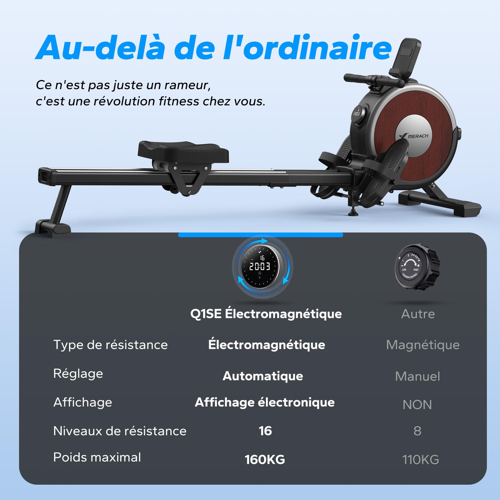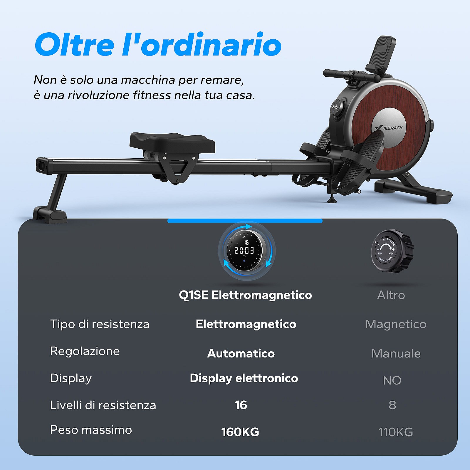 Vogatore magnetico ecologico Merach, 16 livelli di resistenza, regolazione intelligente, autoalimentato, compatibile APP