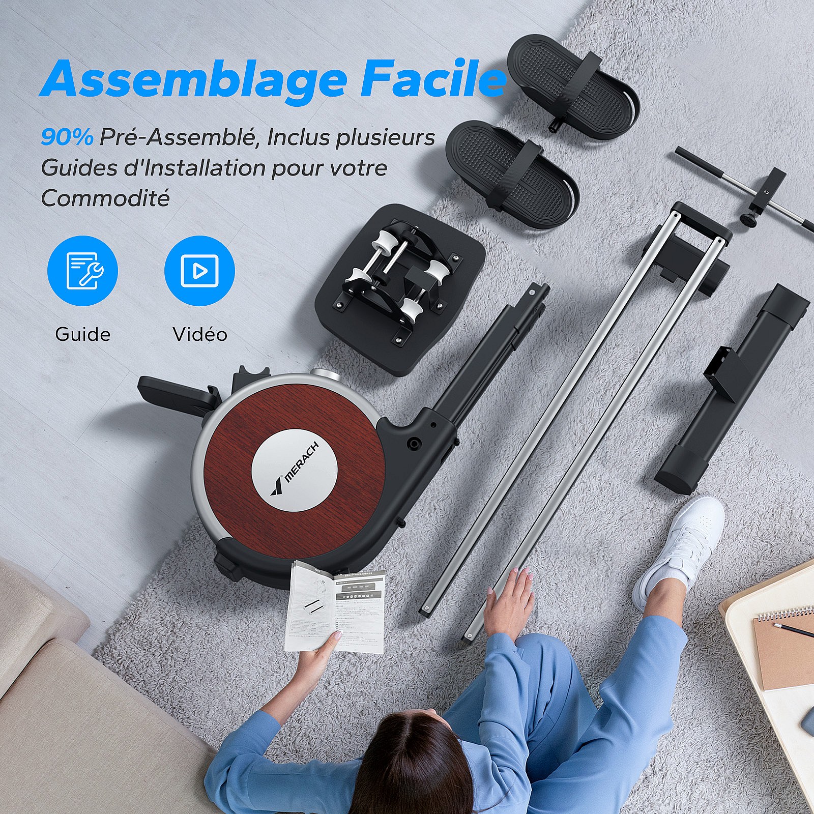 Vogatore ad acqua da appartamento Merach, monitor Bluetooth, supporto tablet regolabile, pieghevole, nero, app connessa