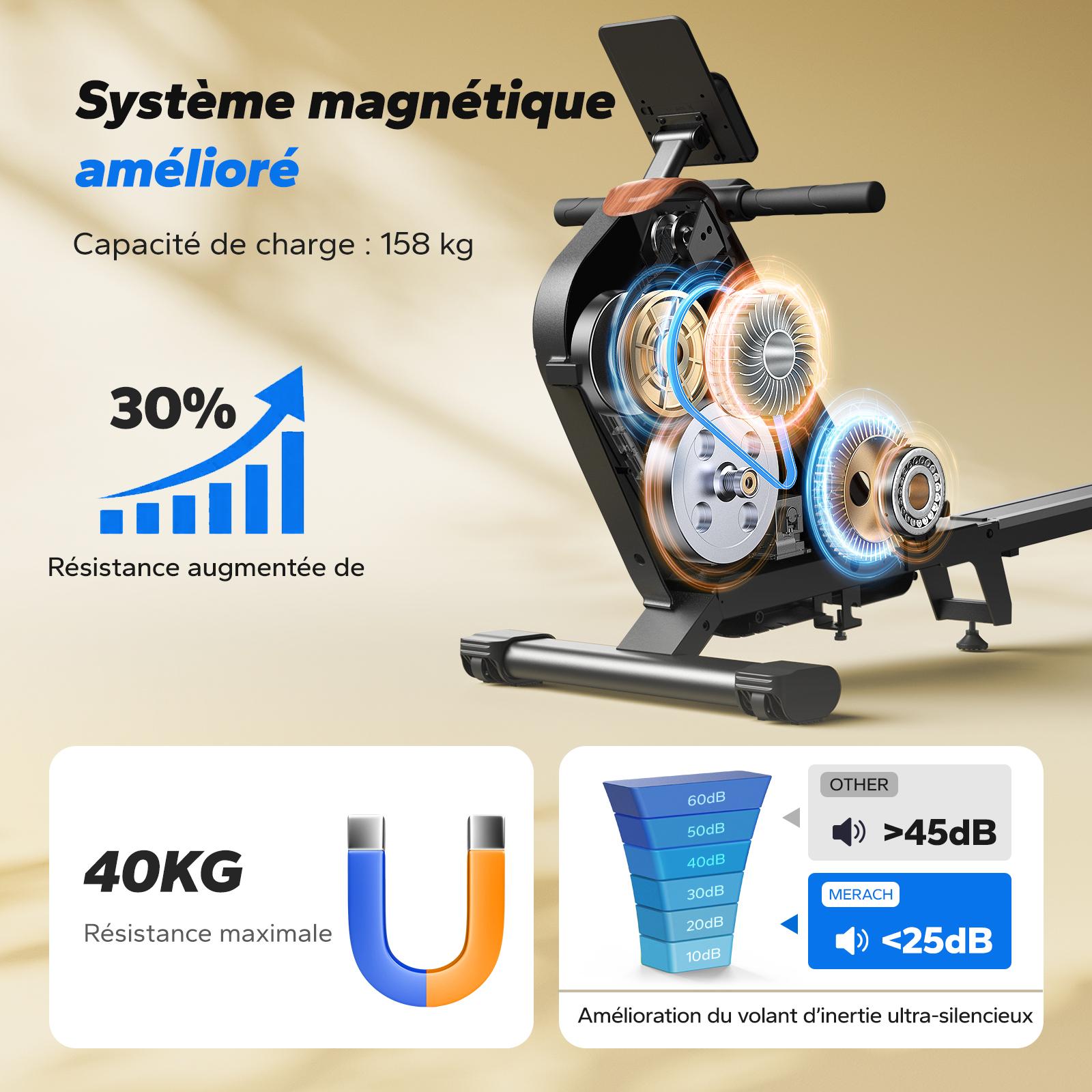 Vogatore magnetico ecologico Merach, 16 livelli di resistenza, regolazione intelligente, autoalimentato, compatibile APP