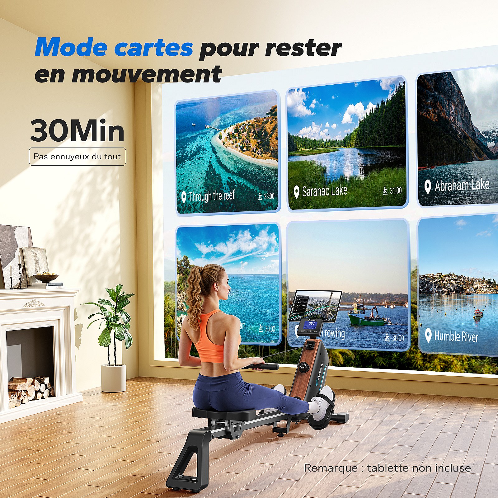 Vogatore ad acqua da appartamento Merach, monitor Bluetooth, supporto tablet regolabile, pieghevole, nero, app connessa