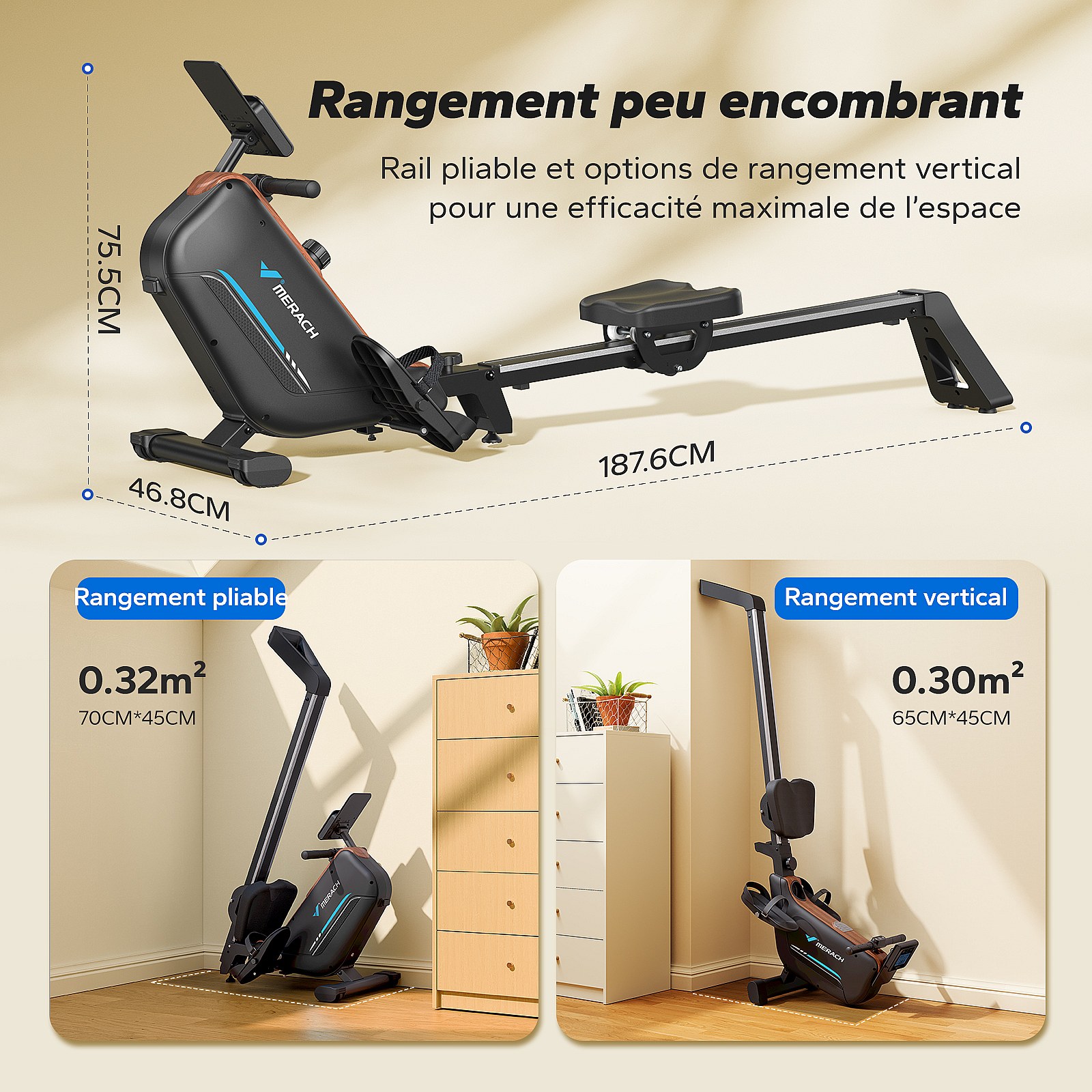 Vogatore magnetico Merach, Bluetooth, app connessa, schermo LCD, supporto tablet, pieghevole, 16 livelli di resistenza, max carico 155 kg