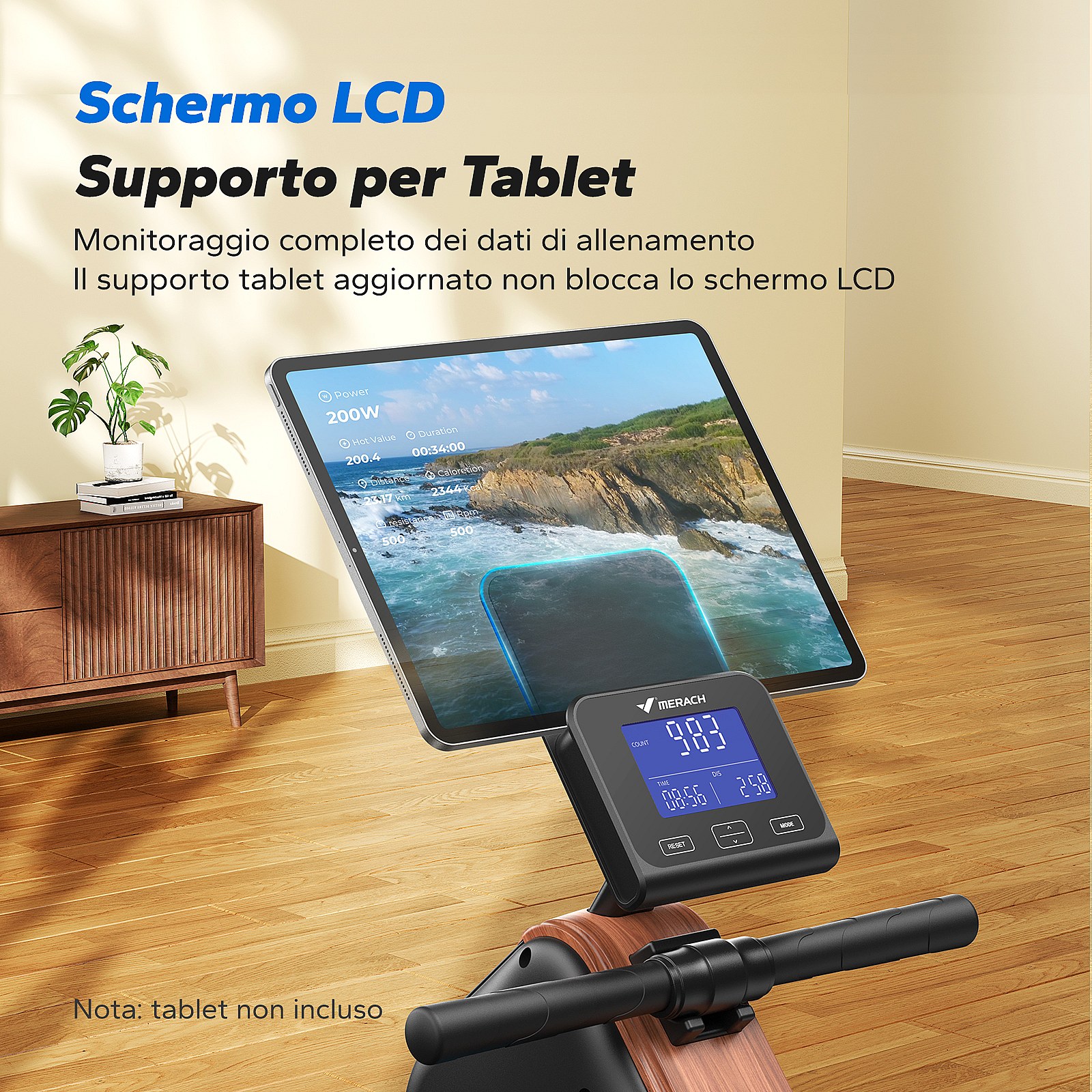 Vogatore magnetico MERACH, resistenza magnetica regolabile manualmente, schermo LCD, supporto iPad, carico max 150 kg, compatibile Kinomap