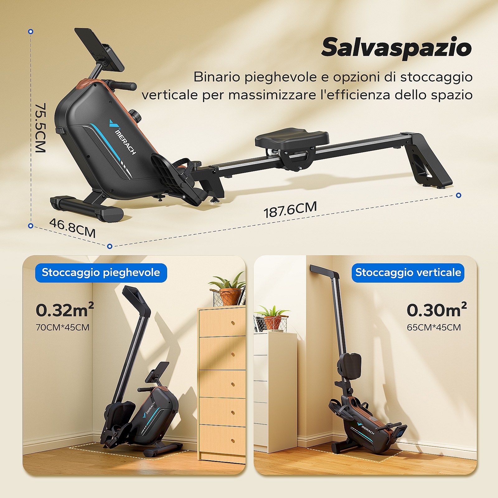 Vogatore magnetico MERACH, 16 livelli di resistenza, uso domestico, pieghevole, schermo LCD, compatibile Kinomap, max carico 150 kg
